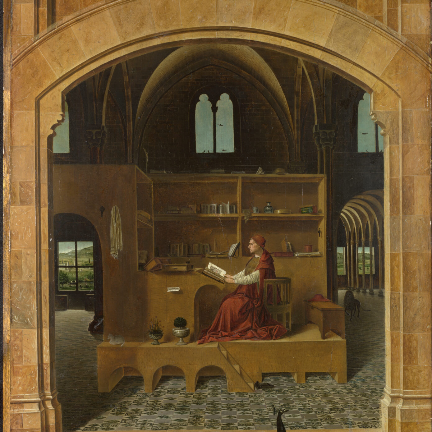 When, five centuries after its conception, young contemporary artists transpose the three-dimensional studiolo of St. Jerome it is his rational organization – that of a gentleman”of the Renaissance – that arises at the time of the dematerialization of the work. The space itself – that of intellectual speculation – has become an open space where the office of the computer screen is the unsurpassable mark.