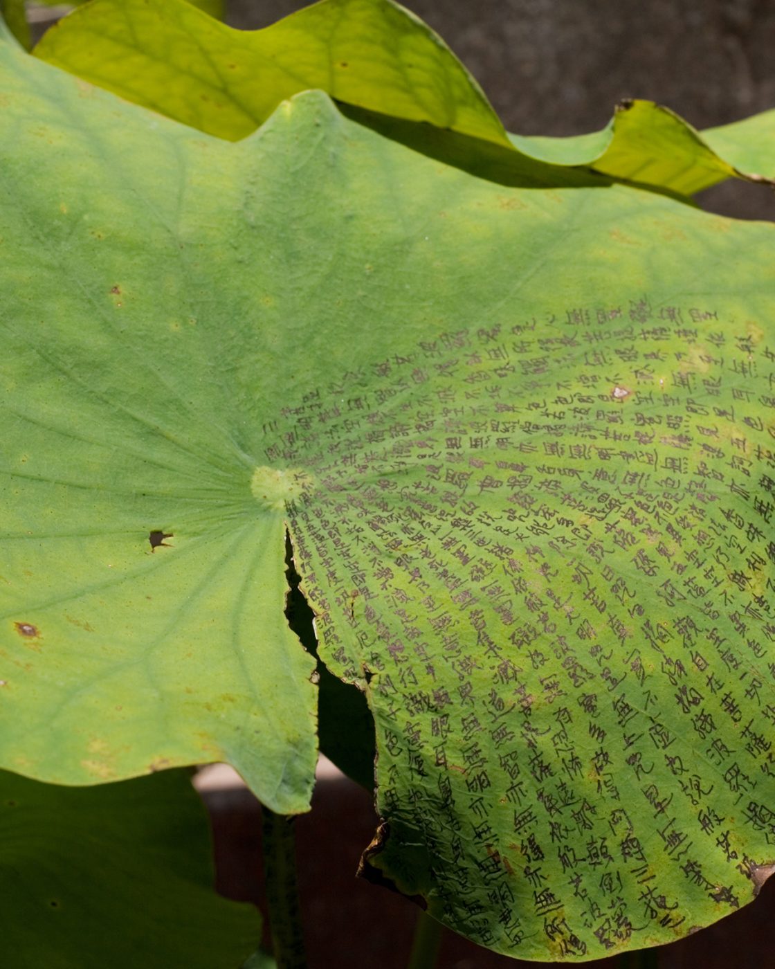 L’artiste taïwanaise Charwei Tsai inscrit des textes bouddhistes qui présentent la quintessence de la sagesse de l’impermanence sur des supports organiques tels qu’une pieuvre, des plantes et du tofu. Au coeur de sa pratique, l’on trouve la relation entre les humains et la nature, la mort et la renaissance, et la relation de symbiose entre durabilité, tradition et rituel, souvent explorées en collaboration avec des communautés indigènes de son pays natal.