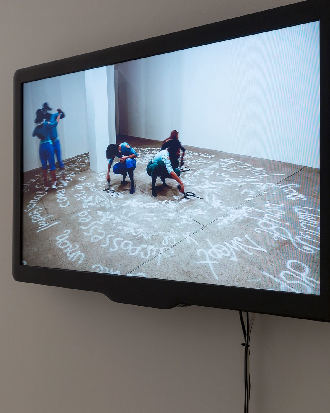 Mathilde Rosier crée des environnements suspendus qui permettent aux spectateurs de perdre la notion du temps et de l’espace, leur offrant une porte d’entrée dans d’autres dimensions possibles de l’être et de l’existence. Au cours d’une performance enregistrée avant l’ouverture de l’exposition « Impersonal Empire » [Empire interpersonnel] à la Galleria Raffaella Cortese, deux danseurs ramassent inlassablement au sol des lettres et des signes, et valsent le long des pièces, entourés de peintures où des créatures sous-marines (mi-femmes, mi-coquillages, poissons ou autres êtres marins) émergent de l’inconscient comme autant d’images pleinement formées. « Les spectateurs assistent à la naissance, au bourgeonnement d’une nouvelle langue et donc d’une nouvelle réalité, quoique trop jeune encore pour être codifiéeMathilde Rosier, « Impersonal Empire », 2018, Galleria Raffaella Cortese, Milan. ».