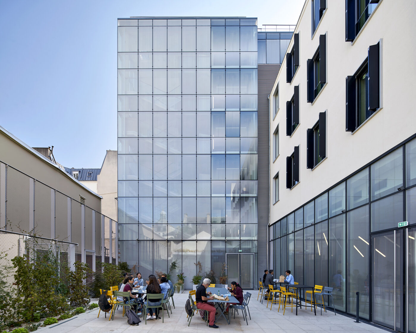 L’architecte Patrick Mauger a réalisé le bâtiment actuel du Learning Planet Institute avec une méthode de co-construction avec les utilisateurs, qu’il décline sur tous ses projets. Cette démarche de collaboration donne des résultats plus intéressants, plus innovants, et les gens sont plus heureux dans les bâtiments. Ce lieu se situe en plein cœur de Paris, dans le quartier du Marais, où il accueille un écosystème de logements, laboratoires et espaces d’enseignement. Le point central de la demande d’origine était de concevoir un lieu à l’image des besoins du XXIe siècle, et non pas du XXe siècle, raison pour laquelle j’ai beaucoup milité pour que l’architecte oublie tout ce qu’il avait déjà fait dans le passé.