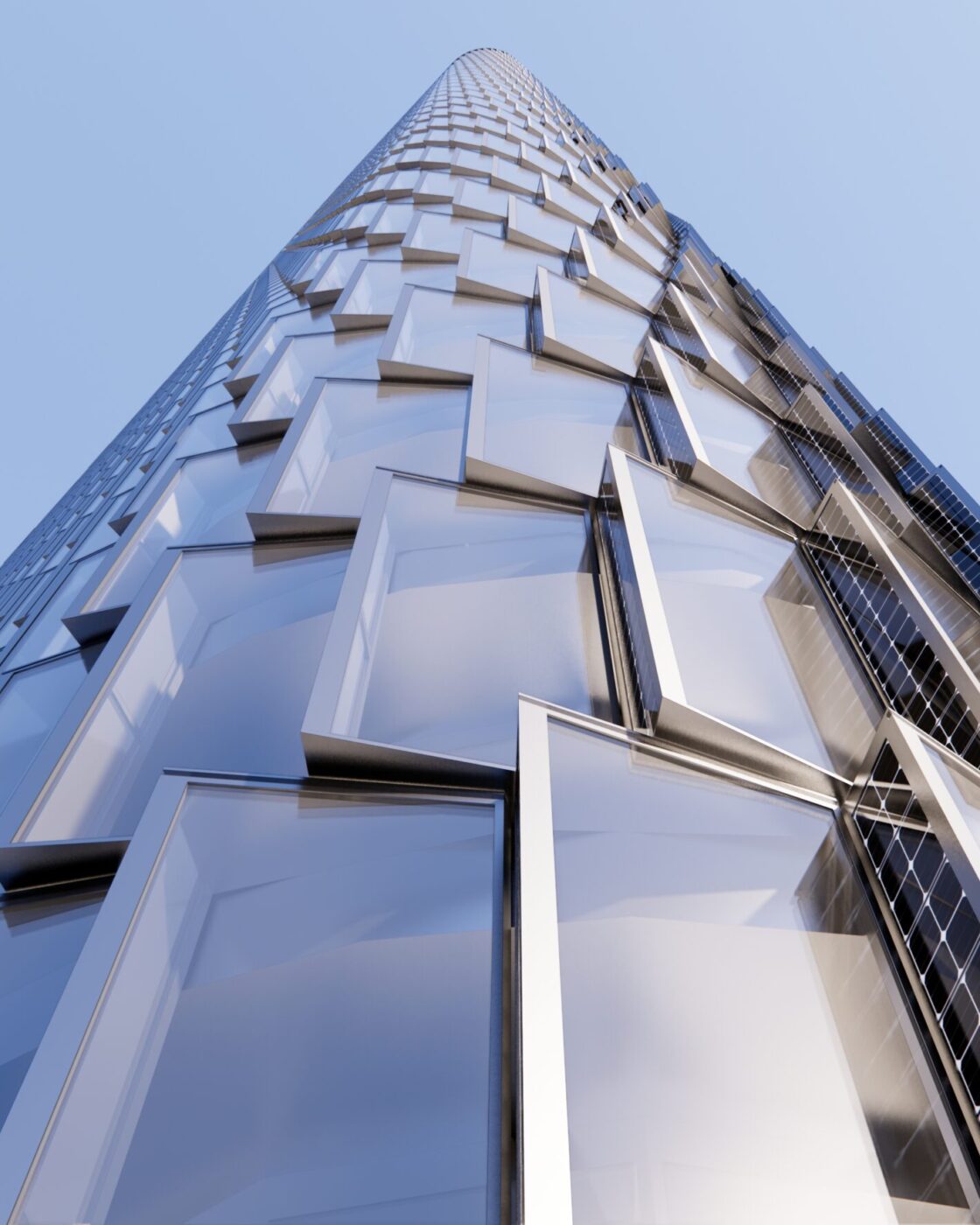 Comment maintenir l’équilibre énergétique d’un bâtiment, comme le ferait un organisme vivant ? La recherche de solutions est au cœur des préoccupations contemporaines car elle permettrait à l’architecture d’auto réguler ses consommations d’énergie en fonction des usages et des fluctuations de l’environnement. L’une des premières surfaces concernées, tout comme l’enveloppe corporelle ou la membrane d’une cellule, est donc la façade du bâtiment, cette interface entre un intérieur à maintenir à l’équilibre et un extérieur dont elle protège des variations. Pour un immeuble de grande hauteur, l’enjeu est de taille. La double tour The Link, qui apparaîtra à La Défense en 2025, est ainsi soumise à différentes contraintes et enjeux. Pour optimiser le confort des usagers, une balance idéale est à trouver entre deux facteurs paradoxaux : l’importance de l’entrée de la lumière naturelle et la protection de la chaleur extérieure.
