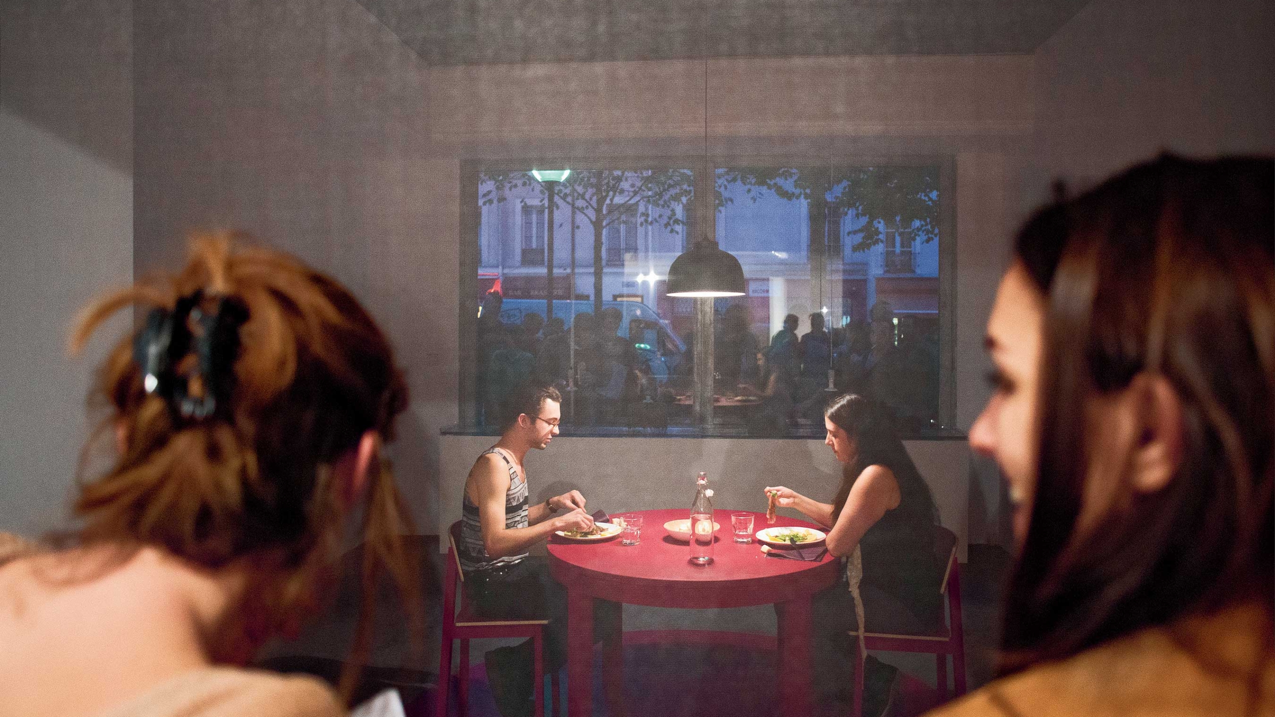 Dans la pièce Circuit fermé, Présentée dans le cadre de l’événement «le Grand Restaurant», l’exposition personnelle de Blazy au Plateau, un des deux espaces d’exposition du Fonds régional d’art contemporain d’Île-de-France. il est aussi question de prédation. Des individus, enfermés dans une pièce vitrée, mangent de la viande et se font piquer par des moustiques. Cela recouvre l’idée de rendre ce que l’on a pris. Tout mon travail est lié à cette relativité de l’être, à l’exploration des notions d’effacement et de non-maîtrise, car le pouvoir que nous nous arrogeons sur le vivant m’interroge. D’autant plus que nous l’exerçons de manière de plus en plus effrayante, alors même que nous ne sommes qu’un maillon de la chaîne des vivants. Notre volonté de protéger la planète est assez symptomatique de cet extrême orgueil : la planète se moque bien des humains, elle a commencé son existence sans nous et la continuera de la même manière. Le vivant n’a absolument pas besoin d’être protégé. L’homme est avant tout dangereux pour lui-même.