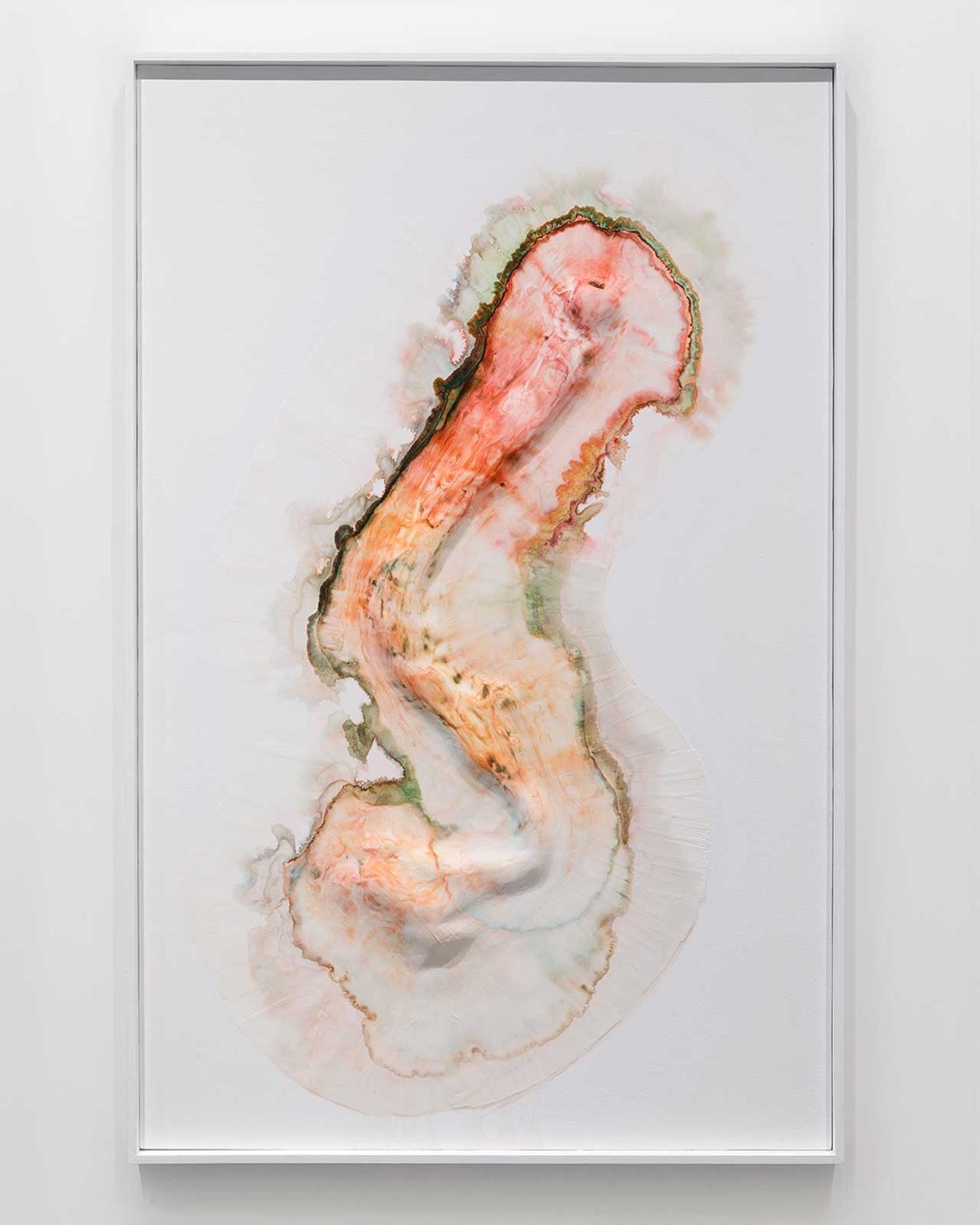 En réalité je ne laisse pas totalement faire, car il risquerait de ne rien se passer, ce qui serait ennuyeux pour le spectateur. Ma philosophie est davantage d’encourager la matière, à la manière du jardinier qui fait le nécessaire pour que les choses arrivent, même si elles sont le résultat de forces qui le dépassent. Il arrose ou paille la terre, mais ce n’est pas lui qui fait pousser le végétal. Son rôle est d’optimiser les conditions d’installation du vivant. Je ne parle pas de culture intensive ni de désherbage évidemment, mais plutôt de l’idée de non-obligation de résultat face à des phénomènes que l’on ne peut maîtriser à 100 %. Je ne cherche pas à avoir le pouvoir sur les choses, ni à les plier à mes intentions, mais au contraire à les observer, à comprendre leur fonctionnement et leurs besoins pour faire en sorte qu’elles se développent. Je ne sais pas à l’avance ce qu’il va se passer lorsque je mène des expériences dans mon atelier, et c’est justement cette surprise permanente qui m’intéresse. Je mets en œuvre les conditions nécessaires à ce que la forme s’auto-génère, ce qui m’amène à reproduire des choses qui pourraient se passer sans moi. La figure de l’homme s’efface, se fait discrète, mais pas celle de l’artiste. Il n’y a pas de doute sur le fait que je suis l’artiste et non les souris ou la moisissure, mais il est vrai que le résultat est le fruit d’une collaboration.