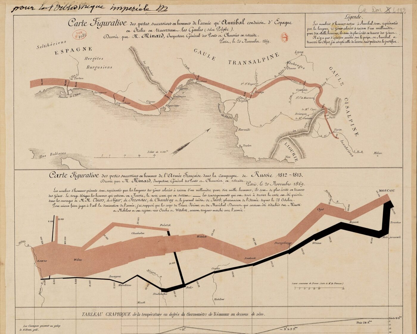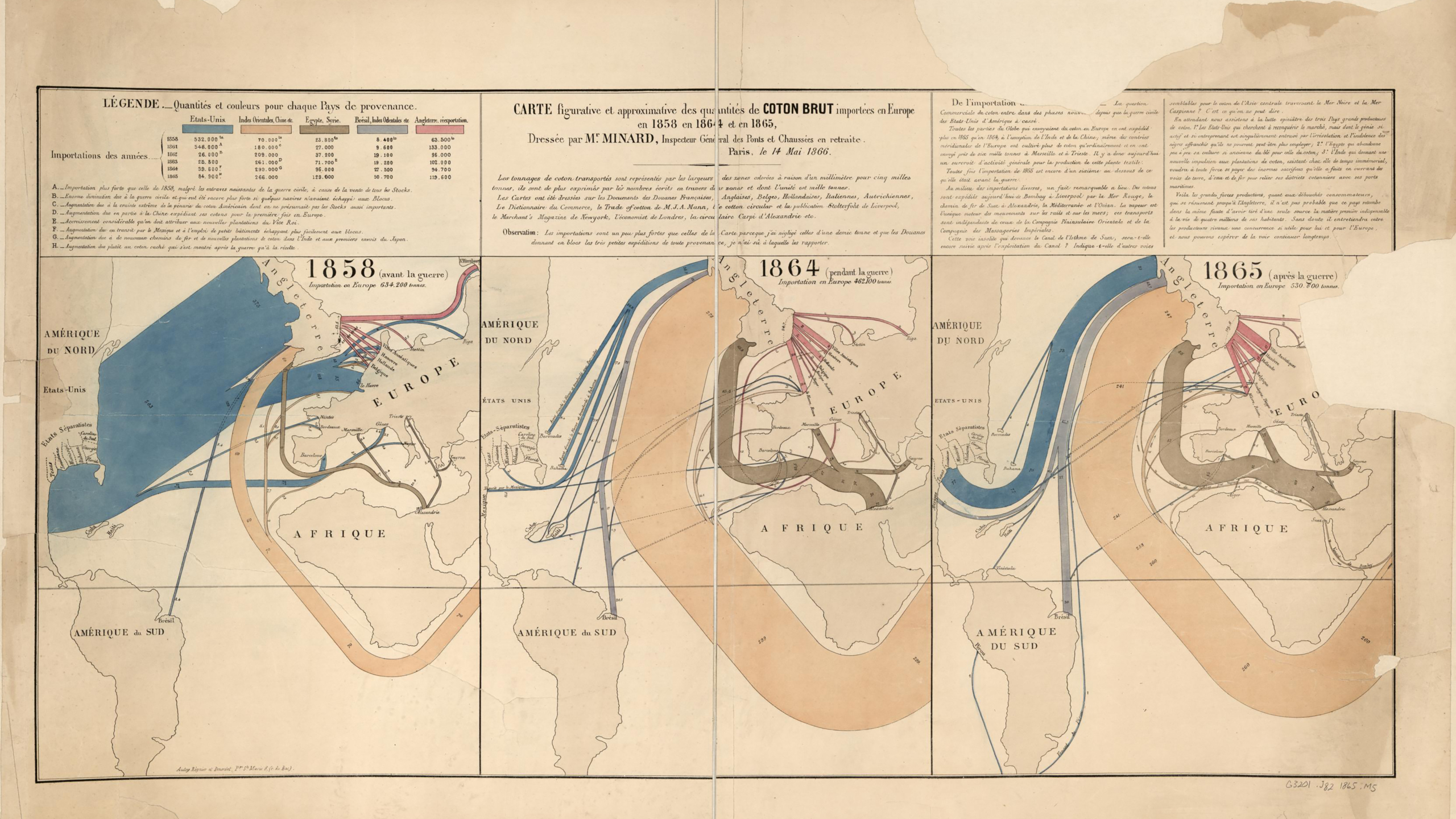 “Mes cartes ne se contentent pas de montrer, elles comptent, elles calculent pour l’œil ; c’est là le point crucial, l’amendement que j’ai introduit par la largeur des zones dans mes cartes figuratives et par les rectangles dans mes tableaux graphiques.” (Charles-Joseph Minard, 1861)