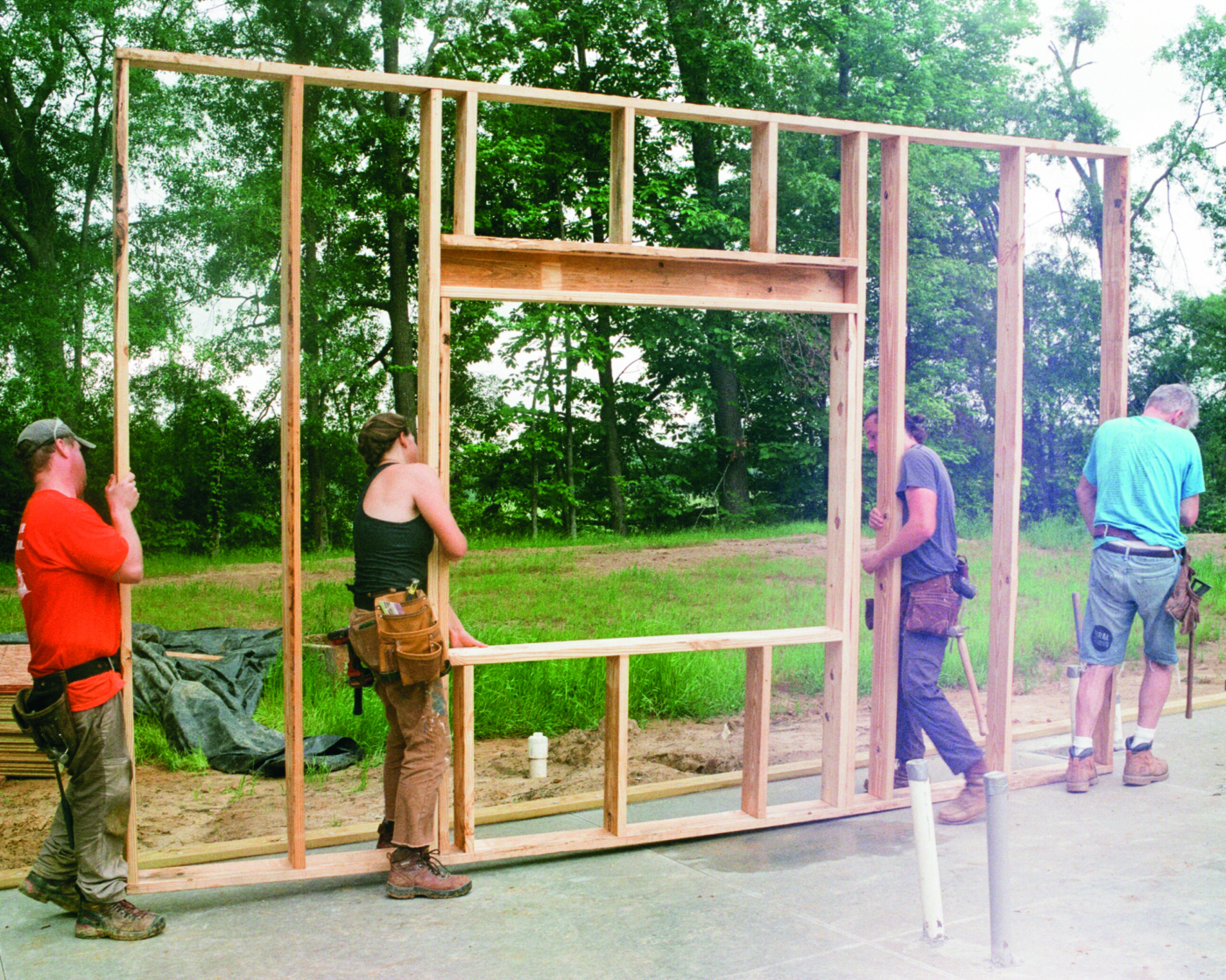 Nous sommes un très petit programme à destination d’étudiants de troisième et cinquième années d’école d’architecture. Pour les troisième année, nous avons une grande équipe de dix à quinze étudiants venant à Newbern pour un semestre, durant lequel nous les accompagnons dans la construction d’une petite maison. Ils prennent l’une des précédentes 20K Home et essaient de l’améliorer, de faire avancer la recherche. Pour ce qui est des cinquième année, nous avons en général une douzaine d’étudiants répartis en équipes de quatre, ce qui d’expérience est la meilleure configuration. Nous sommes deux professeurs – même si nous détestons tous les deux le terme, car il implique que nous aurions quelque chose à professer, alors que nous sommes ici pour apprendre avec les étudiants –, et puis nous avons quelques assistants de construction qui travaillent avec nous sur les projets.