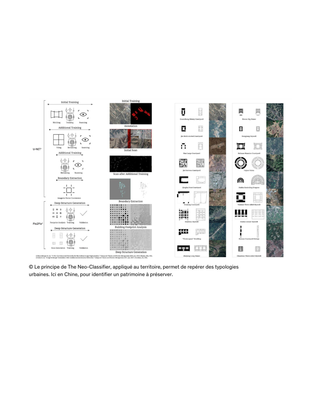 Andrew Witt, enseignant à la Graduate School of Design de Harvard, illustre le potentiel de l’IA dans ce domaine. Avec ses élèves, il a conçu The Neo-classifier, un outil capable de reconnaître et de classer les éléments néo-classiques du tissu urbain : colonnes, frontons, chapiteaux, pour dresser une véritable taxonomie et interroger la place du néoclassicisme dans la ville. Poussant cette idée plus loin, Witt et son équipe ont développé un système capable de « scanner » des territoires entiers, comme en Chine, où cet outil a permis de repérer, avec une rapidité inégalée, des éléments d’architecture traditionnelle et d’établir une cartographie exhaustive d’un patrimoine culturel à préserver.