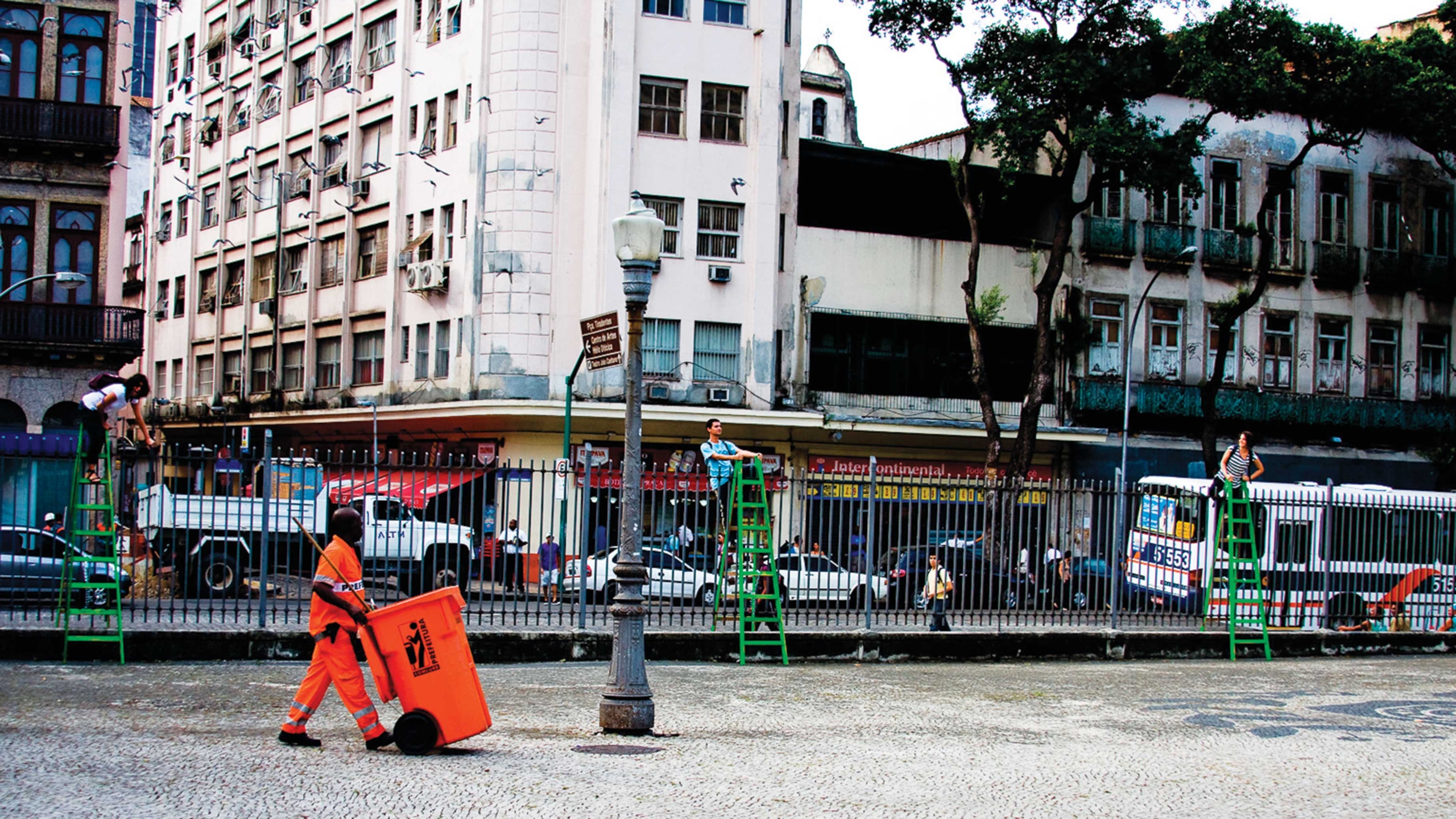 Opavivará : Probablement. Il y a une de nos œuvres qui est tout à fait dans cet esprit, Eu amo o camelô Le camelô est le vendeur ambulant des rues du Brésil. : c’était une réaction à chaud face aux nouvelles réglementations de la plage, interdisant tout et n’importe quoi, notamment la vente ambulante. Le camelô est devenu du jour au lendemain un délinquant, mal vu, et on a voulu mettre ça en tension. Pourquoi l’image et l’esprit de la ville ne s’incarneraient-elles pas dans cette figure éphémère, dans ce camelô, ce type qui va et vient mais qui est présent dans la ville depuis toujours ? Le Morro do Castelo, est tombé mais les camelôs sont toujours là… Notre culture est fondamentalement transitoire et ambulante. L’importance de cette campagne a été de mettre en valeur ce personnage de la ville éphémère, de transformer sa perception afin que les gens, y compris à la mairie, réalisent que le vendeur de maté ambulant fait partie du patrimoine immatériel de Rio.