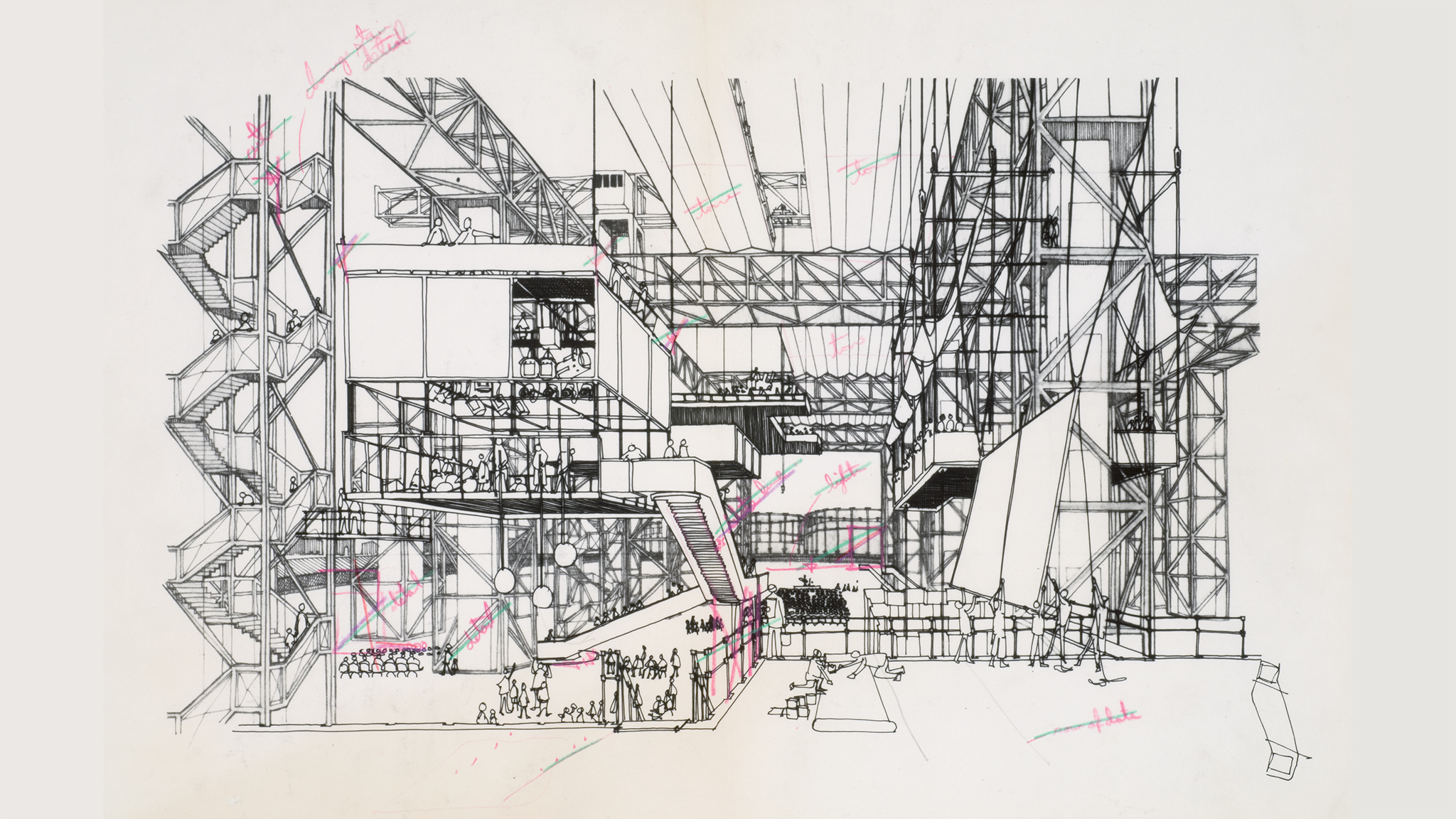 Reyner Banham développe alors le concept d’une architecture dans laquelle les habitants définissent eux-mêmes leur environnement : « A Home is not A HouseReyner Banham, « A Home is not a House », Art in America, New York, II, avril 1965.». Dans Fun Palace (1961-1964) de Joan Littlewood, directrice de théâtre, et Cedric Price (1934-2003), ce sont les utilisateurs qui créent l’architecture. Inspiré du théâtre, des théories cybernétiques et des technologies de l’information, Fun Palace met en œuvre un principe d’indéterminationSamantha Hardingham, Cedric Price: Opera, John Wiley & Sons, London, 2003.. Fun Palace s’organise à partir des activités de loisirs au sein d’une infrastructure qui se reconfigure en permanence. Il n’y a plus de planchers fixes ; le bâtiment n’a jamais de forme définitive, ne cessant de se modifier au gré des services et des activités qu’il autorise. On y pénètre par n’importe quelle entrée et on y choisit l’activité que l’on souhaite. « Quand on n’a plus besoin de Fun Palace, celui-ci disparaîtJim Burns, Arthropods: New Design Futures, Praeger Publishers, New York-Washington, 1972, p. 58. ». Cette dimension d’adaptabilité permanente, d’appropriation directe du réel, transforme l’architecture en dispositif environnemental, flexible et ouvert, consommant sa propre disparition. « Les structures provisoires, les environnements, les expositions, les gonflables, les objets qui peuvent, si nous le souhaitons, être périmés après usage, seront peut-être remplacés par un autre “modèle”Ibid., p. 43.». Tout se renouvelle en permanence selon les envies et les besoins. L’espace de travail en tant que tel a disparu. L’espace fonctionnaliste et tayloriste, structuré verticalement, a fait place à un « agencement machinique » d’espaces individués, prismatiques et non monolithiques.