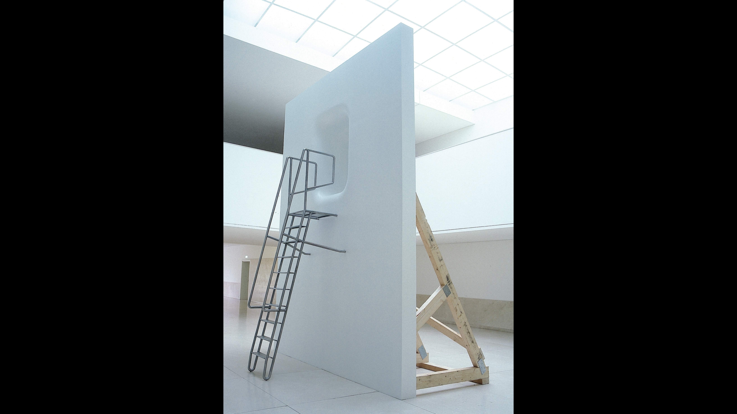 C’est ainsi que des acteurs du monde de l’art ont commencé à m’inviter à réfléchir sur la question de l’espace muséal. Cela m’a amené à développer une ébauche de stratégie autour de l’acte de monstration, et en particulier de celui de l’architecture. Plutôt que d’essayer de jouer sur un faux-semblant qui serait la remise en forme des travaux d’architecture que l’on a pu faire, et étant donné que j’étais dans un processus de construction et d’exploration, j’ai proposé de construire des fragments d’architecture. L’architecte que je suis a utilisé le monde de l’art non pas pour produire des œuvres d’art mais pour réaliser des expériences architecturales. J’ai travaillé élément par élément : le mur, le sol, le plafond, le plafond qui devient mur, les chaises etc. Parallèlement à ces sujets, je me suis frotté au système des concours, notamment au Portugal. Bénéficiant de la double nationalité, je suis également inscrit à l’ordre des architectes là-bas. Un des premiers, a été le concours ouvert pour l’ambassade du Portugal à Berlin. J’ai essayé dans ce projet de condenser les trois années d’expérimentations accumulées, en menant une réflexion sur le programme et ses significations. Qu’est-ce que construire une ambassade en Europe aujourd’hui alors que l’on prône l’abolition des frontières ? Que signifie la construction d’un territoire dans un autre territoire ? J’ai donc réalisé un bâtiment hybride, une cible pour « pseudo-terroristes », ce projet a été remarqué et j’ai été invité à exposer à la Biennale d’architecture de Venise en 2000.