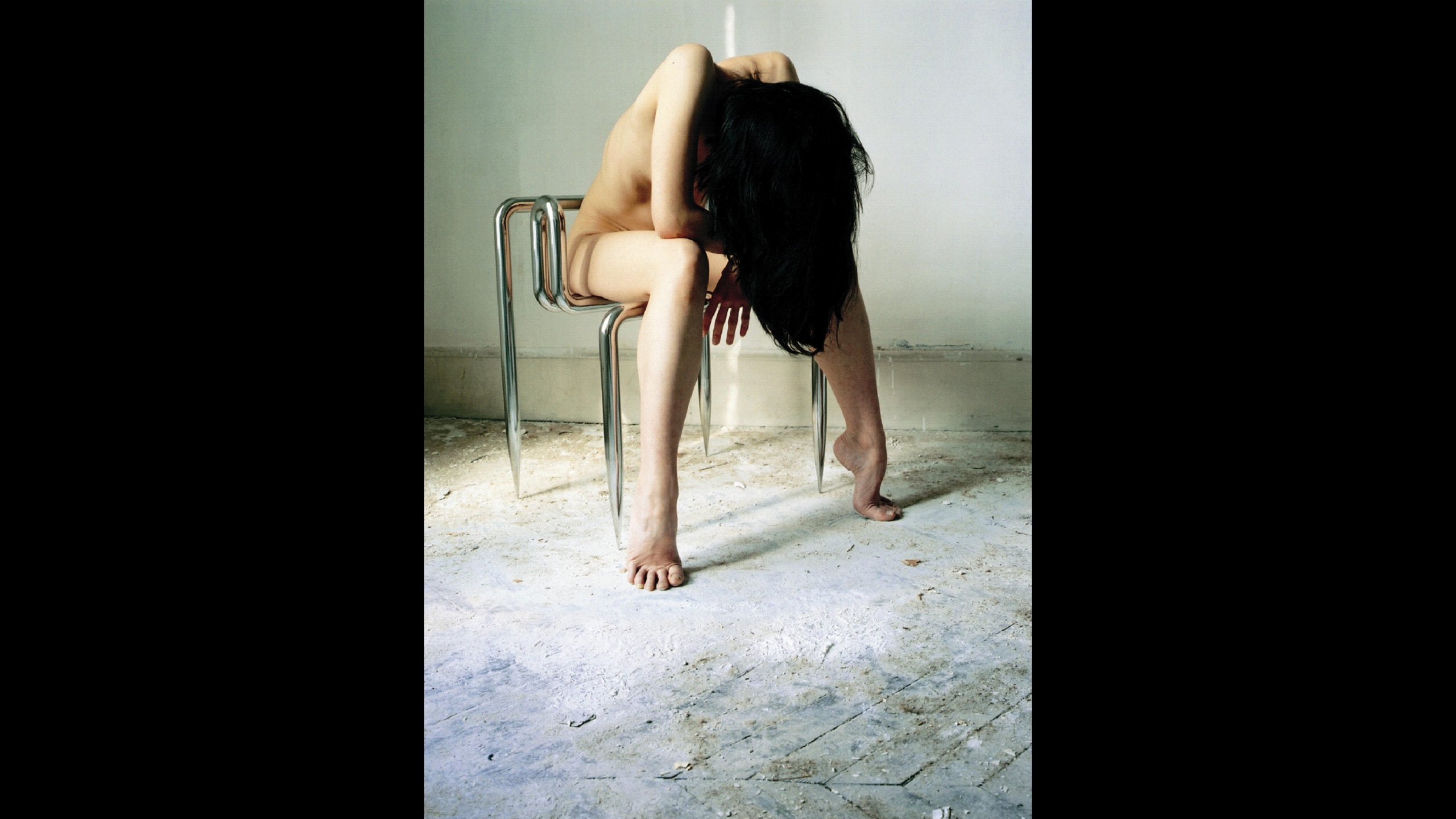 La question qui s’est posée alors était de savoir ce que j’allais présenter, car la situation s’était inversée, je n’avais jamais exposé dans une exposition d’architecture. J’ai continué dans la même logique en concentrant ma réflexion sur le thème de la biennale qui était « moins d’esthétique, plus d’éthique ». Cette thématique nous a permis d’identifier un vrai problème, celui des clandestins et de leur passage à travers les frontières. Beaucoup de nos recherches étaient basées sur la fragilité, et en particulier celle de l’utilisateur face à une architecture presque dangereuse. Cette question de la fragilité des corps dans le transport des clandestins m’apparaissait comme une idée intéressante à explorer. Je suis tombé sur un article qui racontait l’histoire de ces jeunes Africains qui se logeaient dans les trains d’atterrissage des avions, dans l’espoir d’atteindre un monde meilleur. J’ai donc inversé le principe et proposé une architecture protectrice du corps, une enveloppe pour clandestin. L’éthique même du projet s’est très vite posée, fallait-il aller jusqu’au bout de cet acte radical d’architecture ? L’architecte, censé être le bras armé du pouvoir, est celui qui structure l’espace de contrôle, alors que je proposais avec « Body in transit » un moyen de contourner les frontières de cet espace. En présentant ce projet, je dénonçais une situation inacceptable, celle des clandestins. Dans une démarche similaire, j’ai refusé de montrer un projet existant pour l’exposition d’ArchiLab 2001, dont le thème était le logement. J’ai préféré produire un morceau d’architecture, soit une chaise appelée « Love me tender ».