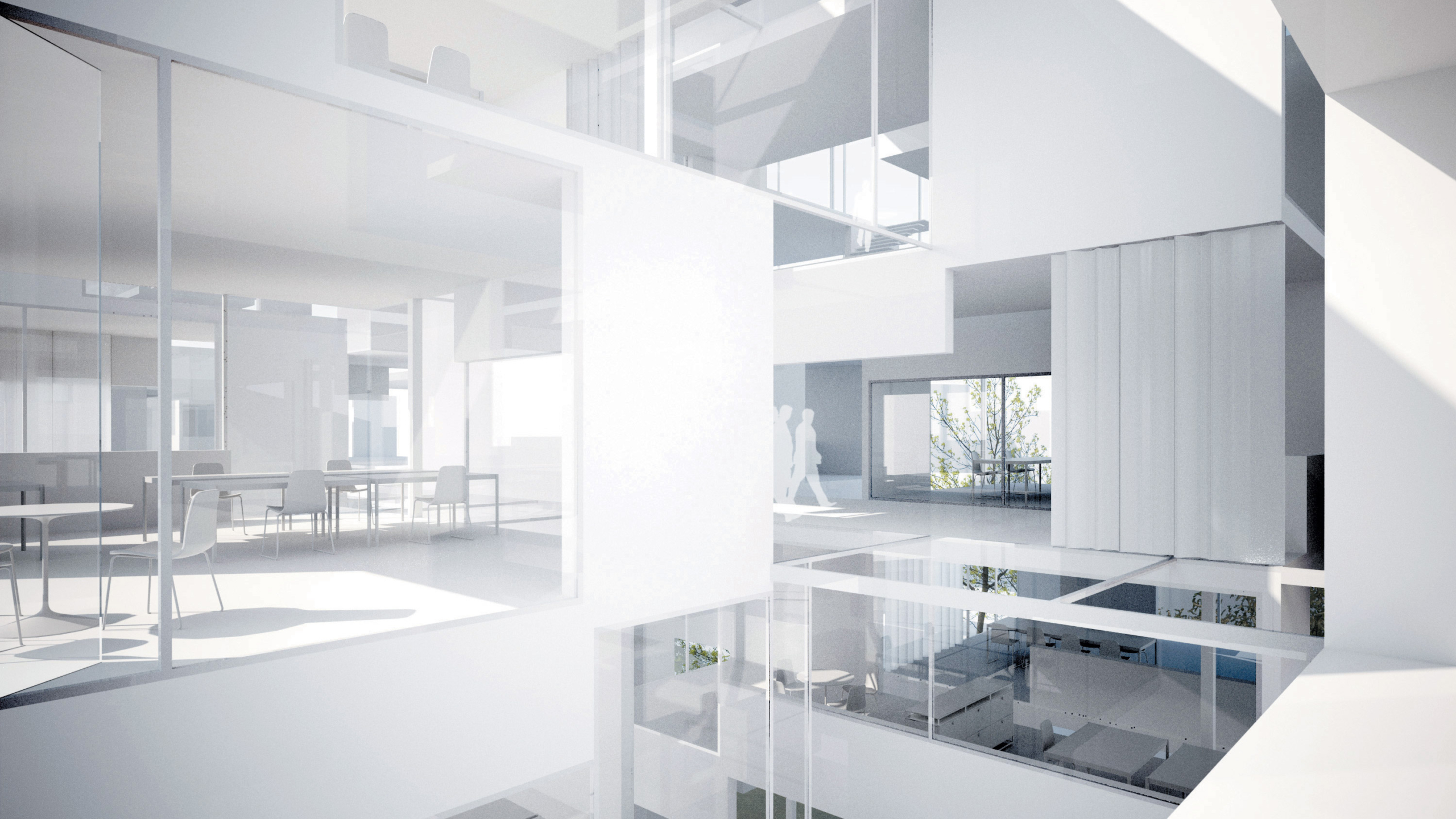 Philippe Rahm : Le projet de l’Epadesa, à la Défense, qui est un projet plus complexe que d’autres, pour lequel on essaie d’intégrer la relation à l’environnement immédiat. C’est un grand bâtiment de neuf étages, avec une façade sud et une façade nord donnant sur des HLM. On a donc conçu la répartition des intérieurs par rapport à la ventilation, pensé l’utilisation de tous les interstices comme réservoirs d’air neuf, de circulation de lumière… Il s’agissait en quelque sorte d’évaporer l’architecture en diminuant ou en entrouvrant les épaisseurs pour laisser passer l’air et la lumière. De même, le volume du bâtiment a été ouvert pour ne pas bloquer les vents du nord et accumuler le froid ; on a donc cherché à laisser passer le vent pour que le bâtiment ne soit pas un obstacle et ne produise pas une accumulation de froid dans le quartier situé à l’arrière.