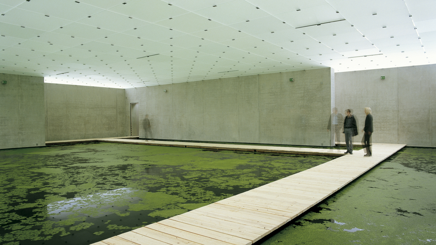Conçue en collaboration avec le paysagiste Günther Vogt, Mediated Motion dialogue avec l’architecture de Pether Zumthor par des séquences de paysages intérieurs reconstitués sur les quatre étages du musée, bousculant la rigueur géométrique et formelle du bâtiment.