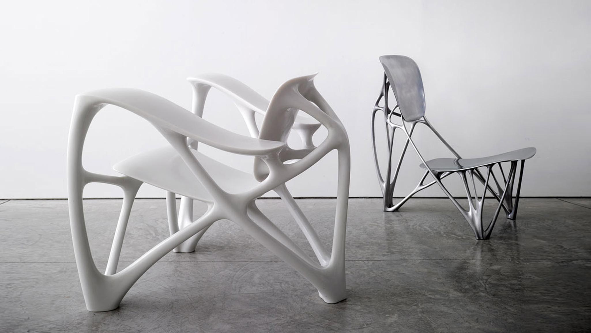 Marie-Ange Brayer : L’exposition au concept avant-coureur Architectures non standard au Centre Pompidou, réalisée par Frédéric Migayrou en 2003, nous semble aujourd’hui d’une actualité incontournable. Les imprimantes 3D feront bientôt partie de notre quotidien et l’architecture non standard, unique et industrielle à la fois, s’inscrit dans un horizon proche. Notre vie de tous les jours est déjà envahie d’outils technologiques individuels et mobiles. Bart Lootsma, commissaire d’ArchiLab 2004, avec l’exposition The Naked City, en référence à Guy Debord, avait lui d’ailleurs abordé cet enjeu de la mobilité technologique dans le champ de l’architecture. Il partait alors du situationnisme, de la dérive, jusqu’aux flash mob et outils individuels de spatialisation et de communication. Bart Lootsma abordait par là la question de l’interconnexion des outils locaux et globaux, qui ne peut qu’affecter la pratique de l’architecte. Aujourd’hui, des architectes tels que Theo Spyropoulos (Minimaforms) repensent les modes de communication. Leurs projets mettent en œuvre des comportements, des « environnements proto-architecturaux », des modèles participatifs qui passent par la cybernétique. Ce qui est frappant, c’est que l’on dépasse aujourd’hui, dans la pratique architecturale, la notion de cadre spatial, de géométrie, pour explorer de nouvelles dimensionnalités liées à des formes de temporalité, complexes et évolutives. Les artefacts numériques exposés dans cet ArchiLab, Naturaliser l’architecture, sont tous morphogénétiques, ils sont une stase formelle qui aurait pu se matérialiser autrement. Ils se donnent dans une approche génétique de la forme et une compréhension cognitive de l’espace-temps. Par exemple Bone Chair, du designer Joris Laarman, qui visualise le mouvement de croissance des os dans le corps humain. Cet espace matériel augmenté de virtuel est encore celui de Ruy Klein à New York et de leur bio-imprimante, capable d’« imprimer » des éléments du monde vivant.