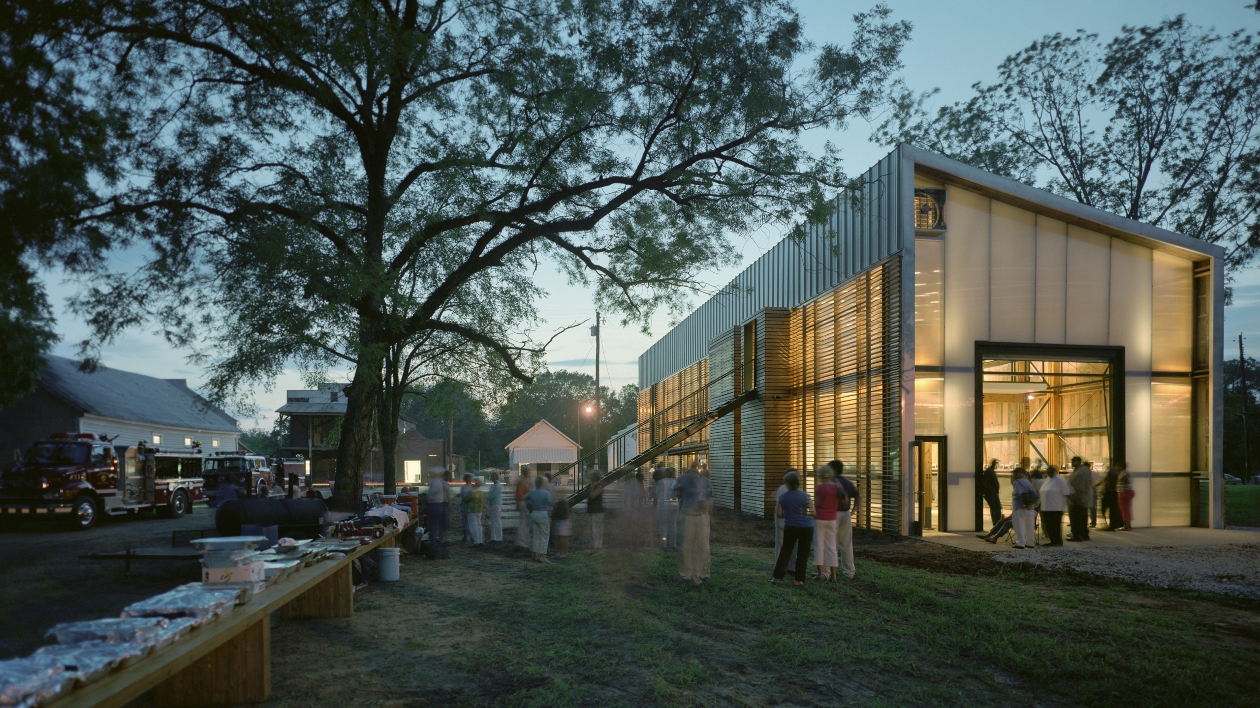 Mairie de Newbern à gauche, caserne de pompiers à droite © Rural Studio