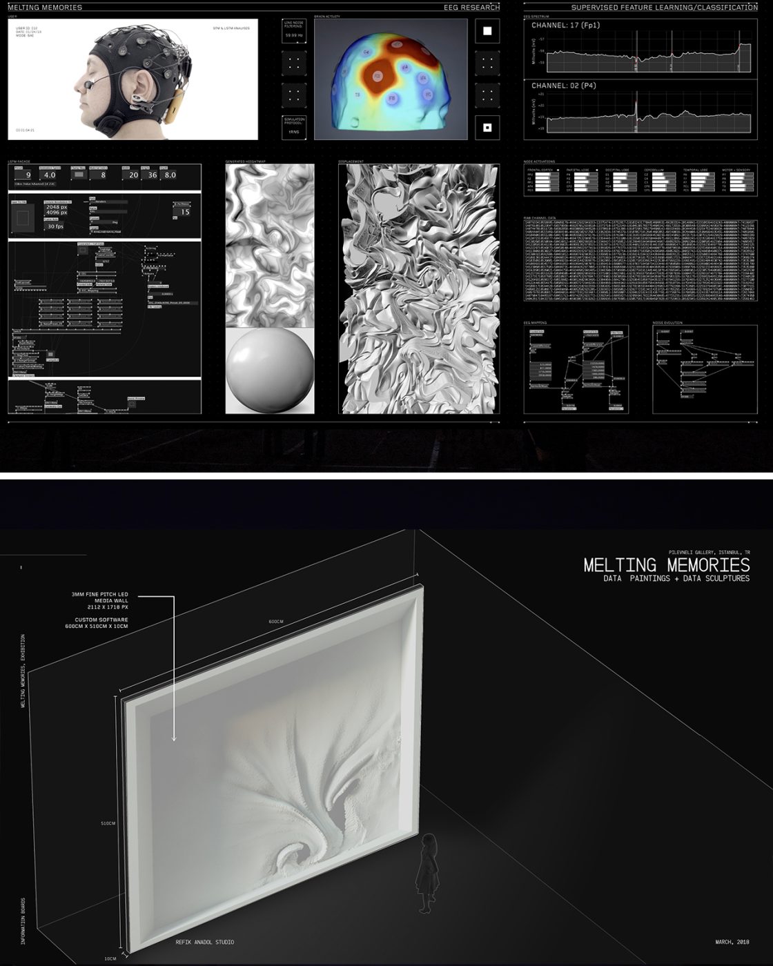 Melting Memories est né d’un constat frustrant : l’incapacité de la médecine à endiguer la perte de souvenirs provoquée par la maladie d’Alzheimer. J’ai donc entamé une collaboration avec le Neuroscape Laboratory de l’université de Californie, à San Francisco, pour capter les moments où les souvenirs se formaient et les transformer en peinture abstraite de données. Comme le dit Philip K. Dick, « La réalité est ce qui ne disparaît pas lorsque vous cessez d’y croire ».