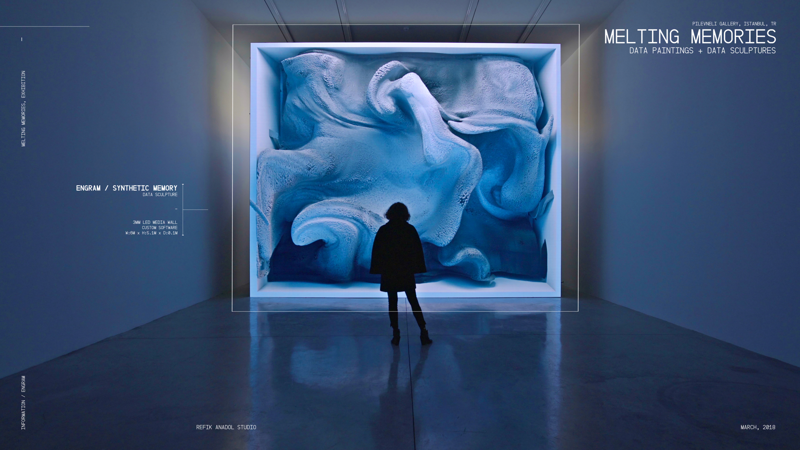 Si l’Anthropocène nous met face à notre indissociabilité d’avec la Terre, nous vivons pour Refik Anadol dans une réalité hybride, née de l’omniprésence systèmes technologiques. Il cherche ainsi un langage universel pour exprimer cette nouvelle ère, dans laquelle le virtuel et le réel sont mêlés, en expérimentant des systèmes de représentations prospectifs matérialisant des jeux de data.
