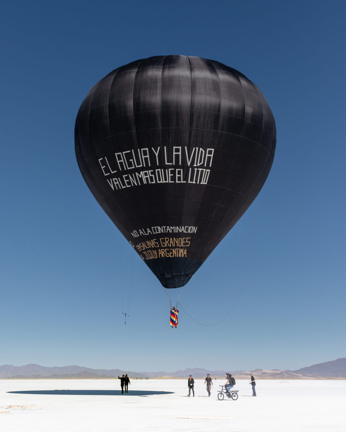 Pour vous donner un exemple, l’un des projets dont je suis le plus content, Aerocene Pacha, est né d’une invitation de BTS, un grand groupe de K-pop. C’est un phénomène mondial, je crois qu’ils ont vendu plus de disques que les Beatles, mais je n’en avais jamais entendu parler avant qu’ils ne me contactent. En tout cas, c’était mon premier projet qui n’était pas directement issu du monde de l’art. Dans le cadre d’une exposition mondiale, Connect-BTS, l’un de leurs membres, DaeHyung Lee, a joué le rôle de commissaire d’expositions, invitant différents artistes venant d’un peu partout. Quand ils m’ont proposé de produire une installation dans mon pays d’origine, nous avons choisi d’aller dans le nord de l’Argentine, dans la province de Jujuy, où j’avais produit une série d’œuvres en 2018 avec l’appui de CCK. Je savais qu’il y avait là-bas des tensions importantes et des luttes sociales autour de l’extraction du lithium. Les lacs salins de la région, située dans ce que l’on appelle le ‘‘triangle du lithium’’, entre le Chili, l’Argentine et la Bolivie, contiennent 70 % des réserves de lithium de la planète. On utilise ce métal, entre autres, dans les batteries de véhicules électriques et presque tous les appareils de la ‘‘révolution verte’’. Il faut savoir qu’il existe de très fortes tensions entre les sociétés multinationales et les populations indigènes, étant donné que l’extraction du lithium détruit littéralement leur mode de vie. Une tonne de lithium requiert en effet deux millions de litres d’eau, causant une pollution et un gaspillage énorme, à l’image du fracking. Dans le Jujuy, l’atmosphère est extrêmement aride et il pleut très peu. Toute l’agriculture et le mode de vie des indigènes dépendent des maigres ressources en eau, mais les multinationales extraient tous le minerai avec le même esprit colonial qu’il y a cinq cents ans – rien n’a changé –, et cela ne laisse quasiment aucune marge d’autodétermination de leur mode de vie aux indigènes.
