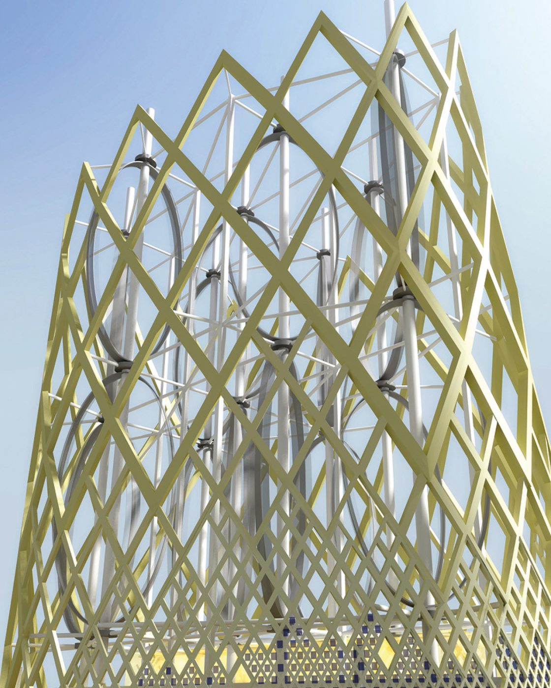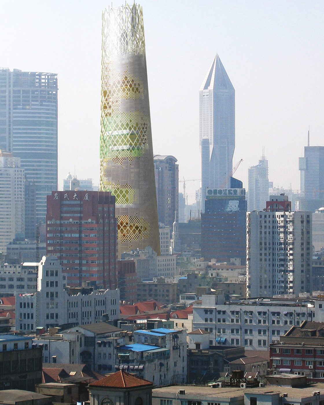 Nous avons également offert la possibilité de mutualiser une partie du bâtiment pour accueillir des activités hors bureau : exposition, réunion, restauration, hébergement… une façon d’allonger le temps d’utilisation du bâtiment habituellement limité à environ un tiers de la semaine. Concept Office a été présenté avec succès au Mipim 2004, et a fait l’objet de nombreuses conférences organisées par EDF : du point de vue de notre sponsor industriel, c’est une réussite, marquée par la publication d’un livre préfacé par Nicolas Hulot. Pour l’agence, l’aventure Concept Office a été l’opportunité d’accumuler des connaissances sur les thèmes énergétiques et de confirmer notre conviction de la nécessité d’inventer de nouveaux espaces de travail. Cette expérience de recherche s’est prolongée à l’échelle du gratte-ciel avec le projet Hypergreen en collaboration avec Lafarge. Ce gratte-ciel ultra-environnemental est une réponse à l’étalement urbain des grandes métropoles afin de créer des points de densité : il propose une vision de la tour comme composante essentielle de la ville durable. Ce projet a été montré pour la première fois en novembre 2005 lors d’une conférence à l’université de Tongji à Shanghai.
