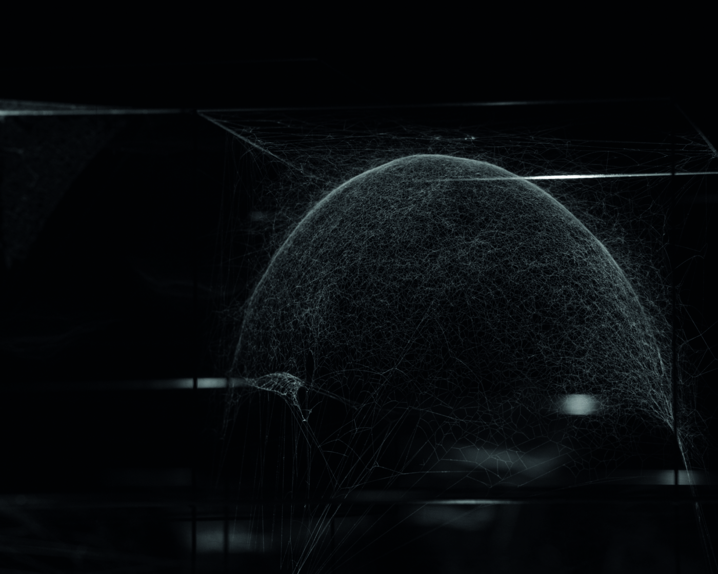 Quand Rebecca Lamarche-Vadel m’a invité à participer à l’exposition Le Bord des Mondes, il est ressorti de nos discussions que nous partagions la conviction que c’est en pensant ensemble contre les catégorisations héritées de l’Anthropocène que nous pourrions approfondir cette transition. L’intitulé de l’exposition est fondamental : il ne s’agit pas d’un seul monde, mais d’une pluralité de mondes, émergeant de toutes sortes de contextes et d’environnements différents. Plutôt que de transcender l’Anthropocène ou de le nier, nous en exposions les limites en interrogeant des modèles non humains d’architecture sociale, comme les araignées et leurs toiles. Si elles ne sont pas seulement leur domicile, leur monde, mais une extension de leurs corps et de leur esprit, que peuvent nous apprendre ces toiles d’araignés des limites de notre pensée et des limites de nos mondes ?