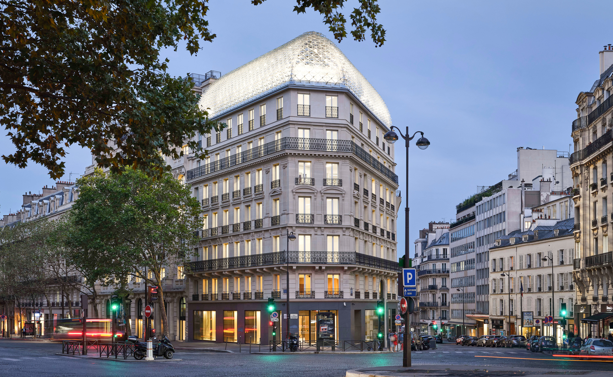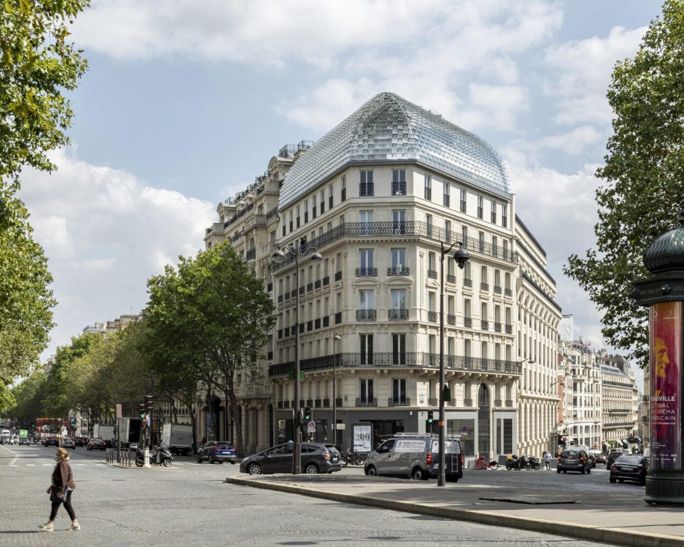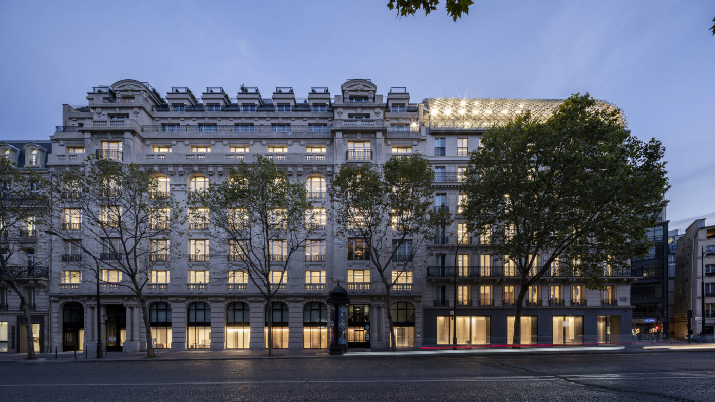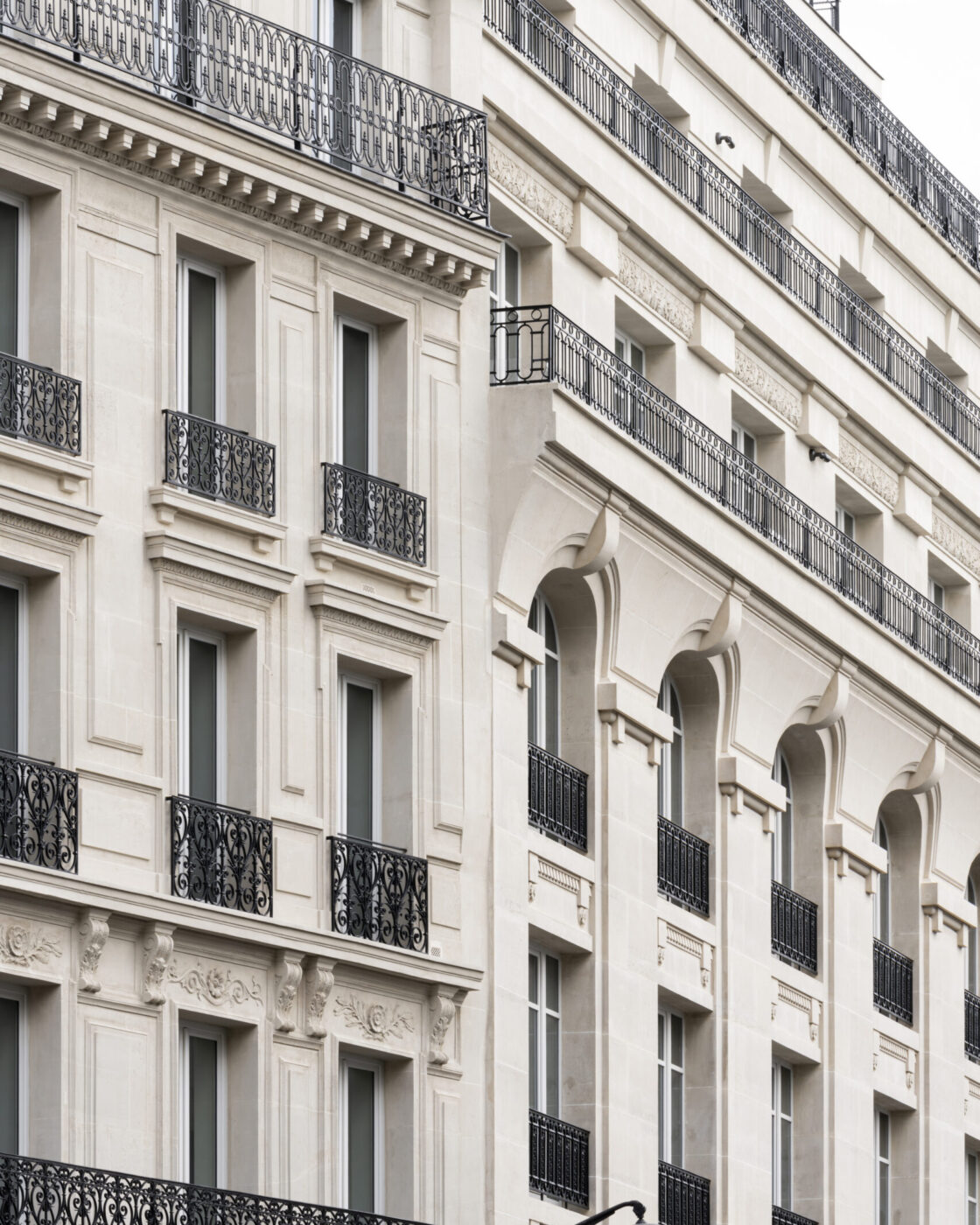 Au cœur du Quartier Central des Affaires, à deux pas de l’Étoile, le 173-175 Haussmann prend place en proue du boulevard Haussmann et de la rue du faubourg Saint-Honoré. Il est composé de deux immeubles, le 175, un haussmannien classique de 1863, et le 173, datant du début des années 1920, aux notes Art déco. Une restructuration du début des années 1990 a réuni les deux immeubles pour un programme tertiaire, mais au profit des surfaces et sans grande cohérence. Dépassé dans sa conception des espaces de travail, la décoration et la technique, l’ensemble souffrait de défauts architecturaux et d’usages, notamment un problème de niveaux entre les bâtiments et une séquence d’accès peu qualitative, de côté, via un sous-sol donnant sur un patio peu lumineux. Le projet de restructuration est l’occasion de lui redonner cohérence et cachet.