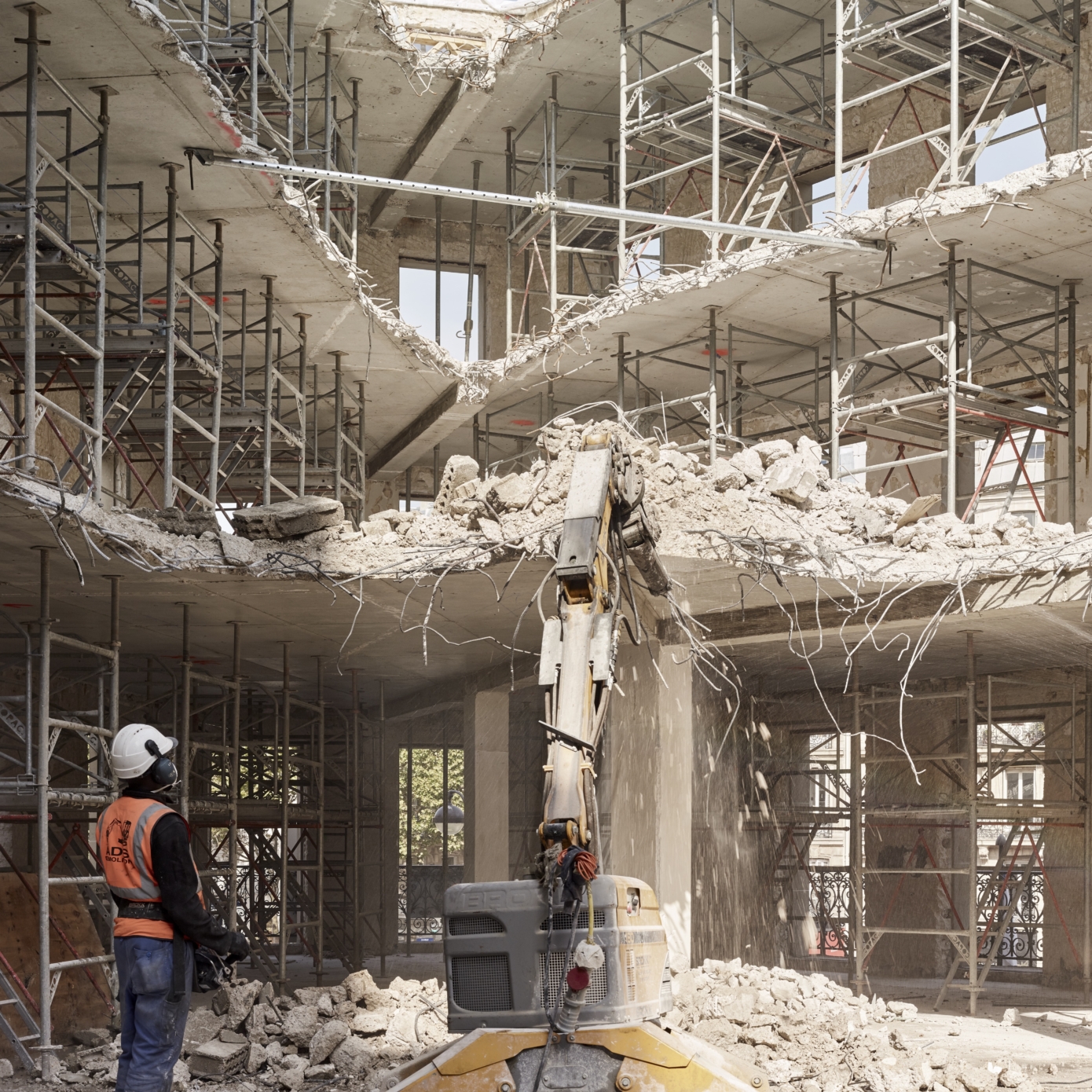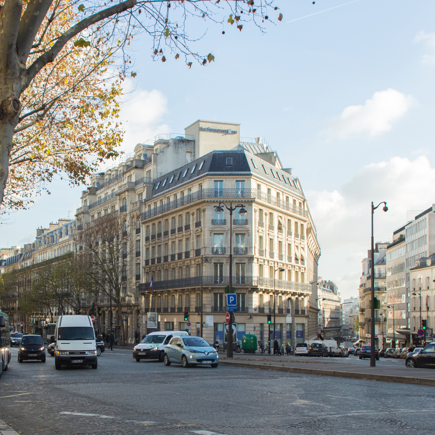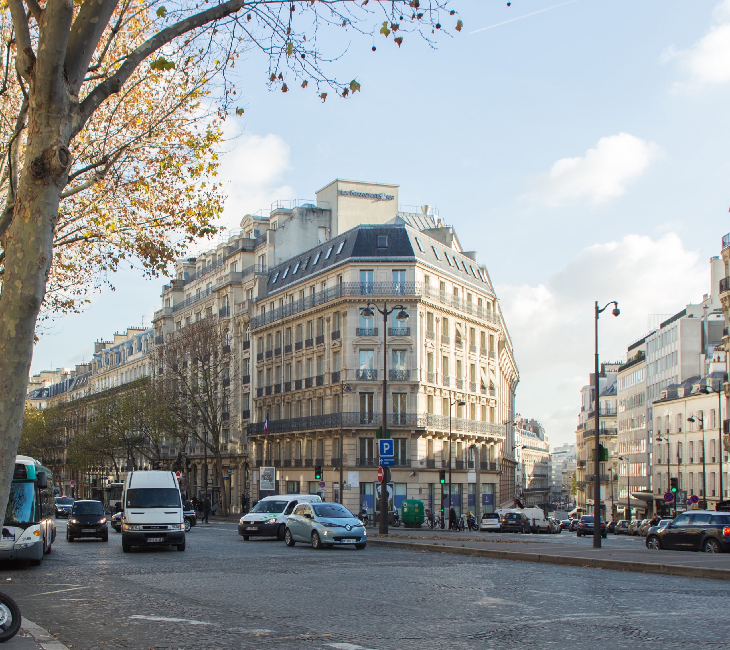 Au cœur du Quartier Central des Affaires, à deux pas de l’Étoile, le 173-175 Haussmann prend place en proue du boulevard Haussmann et de la rue du faubourg Saint-Honoré. Il est composé de deux immeubles, le 175, un haussmannien classique de 1863, et le 173, datant du début des années 1920, aux notes Art déco. Une restructuration du début des années 1990 a réuni les deux immeubles pour un programme tertiaire, mais au profit des surfaces et sans grande cohérence. Dépassé dans sa conception des espaces de travail, la décoration et la technique, l’ensemble souffrait de défauts architecturaux et d’usages, notamment un problème de niveaux entre les bâtiments et une séquence d’accès peu qualitative, de côté, via un sous-sol donnant sur un patio peu lumineux. Le projet de restructuration est l’occasion de lui redonner cohérence et cachet.
