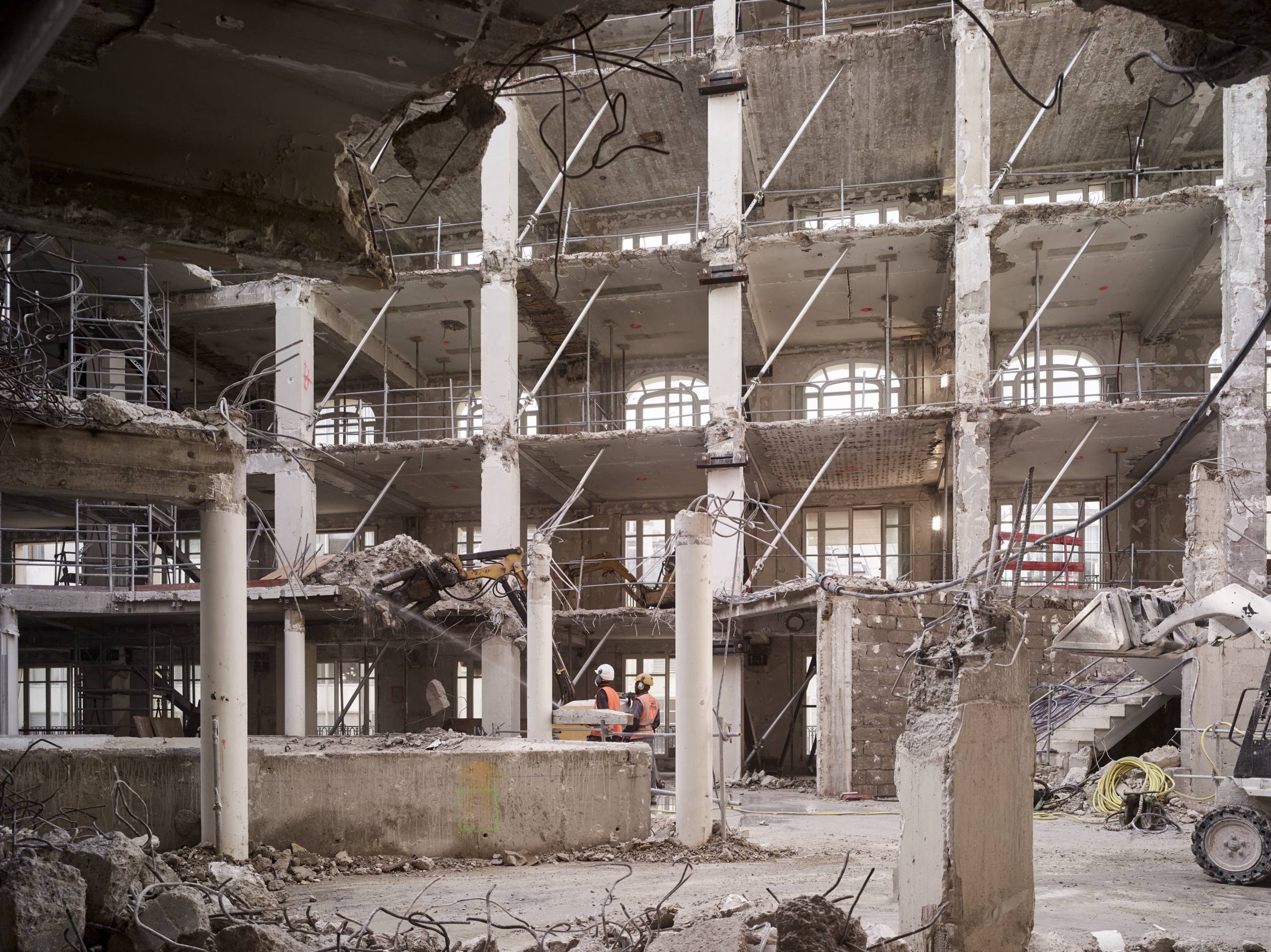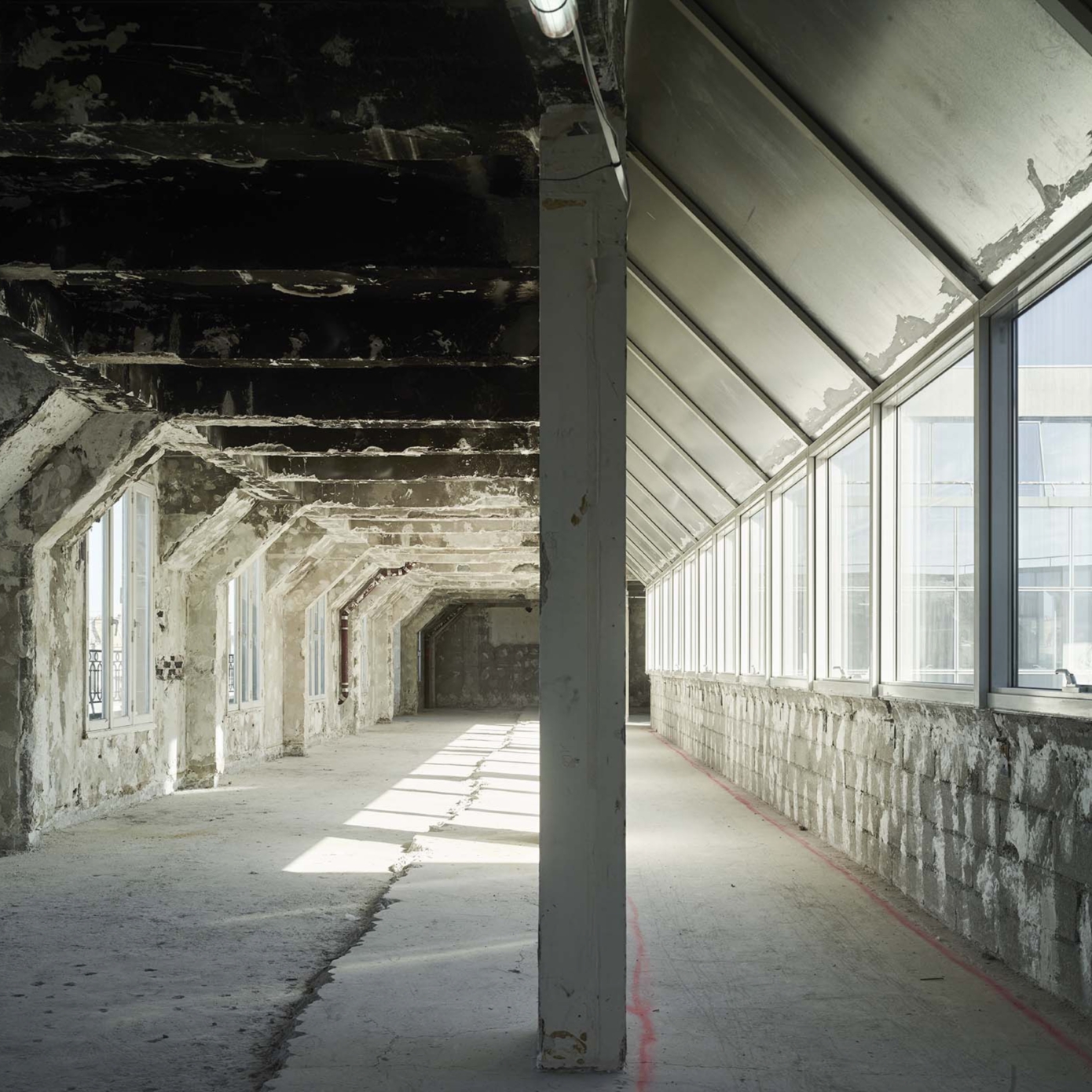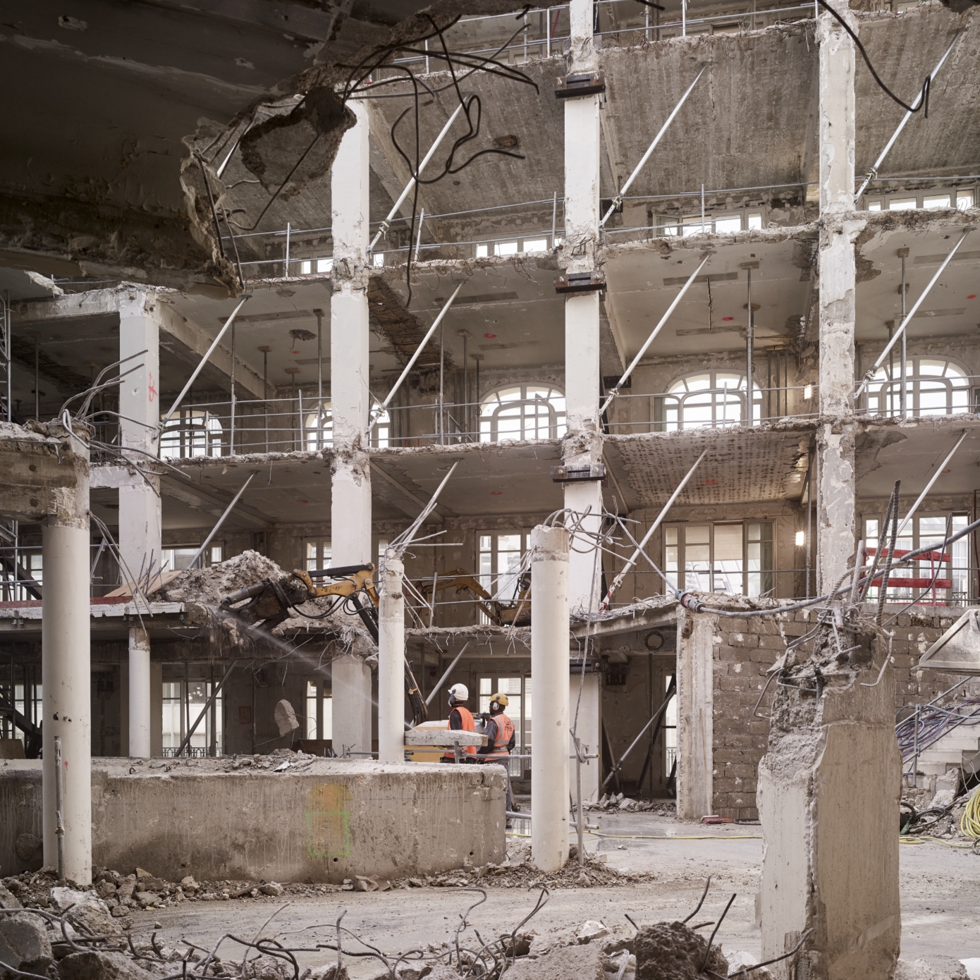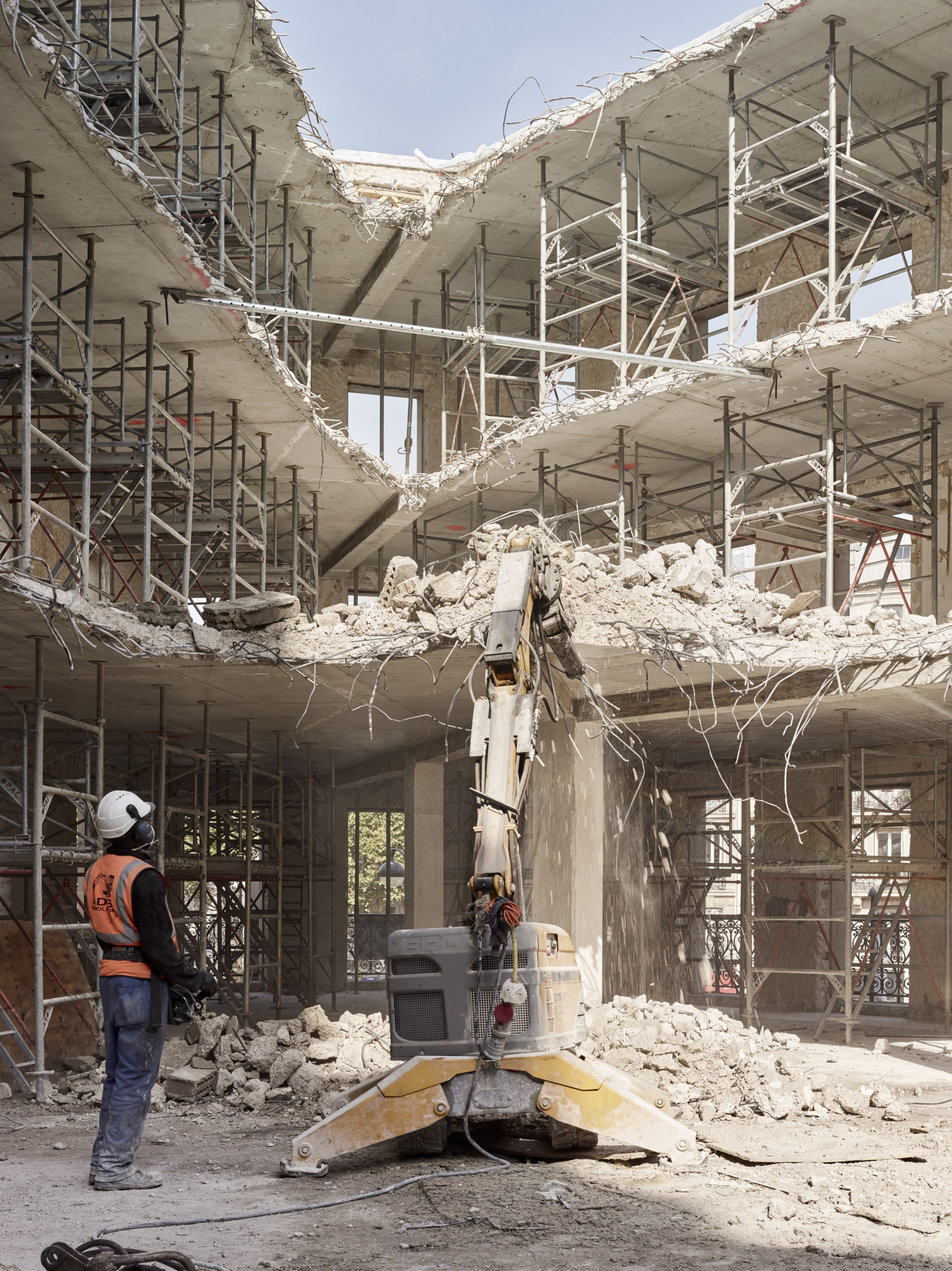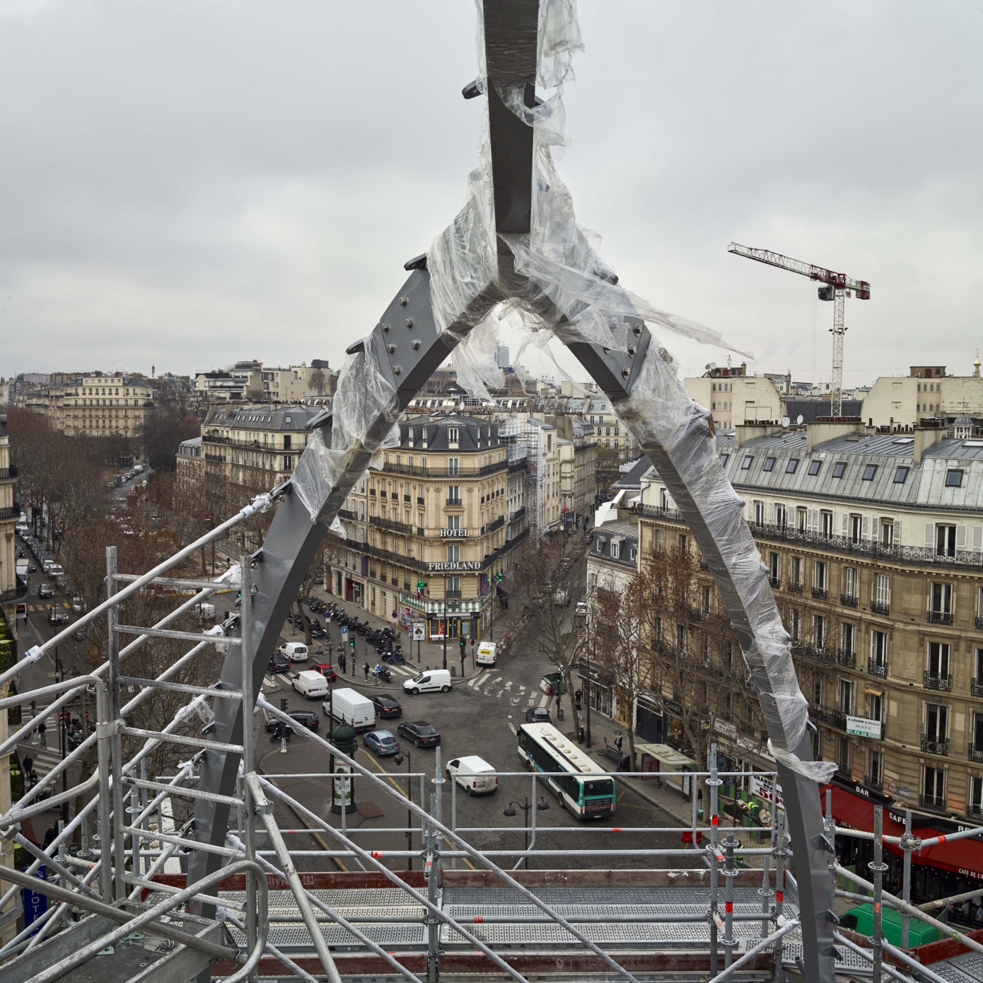 La libération du rez-de-chaussée du 175 a permis de ramener les accès vers la pointe du bâtiment et de créer une entrée majestueuse dans l’axe, soulignée par un lustre spectaculaire dans la double hauteur. La clarification des circulations par un noyau et des plateaux repensés permet de gommer la frontière entre les immeubles. En surélévation, un étage en pierre est complété de deux étages sous verrière, qui donnent à l’ensemble une esthétique unique. La verrière réinvente l’identité du 175 Haussmann en apportant un élément contemporain intégré au contexte historique et patrimonial du quartier. Ce signal urbain illustre le nouveau rôle symbolique du siège social, qui incarne l’identité de l’entreprise, génère de l’appartenance auprès des collaborateurs et permet d’attirer les nouveaux talents.