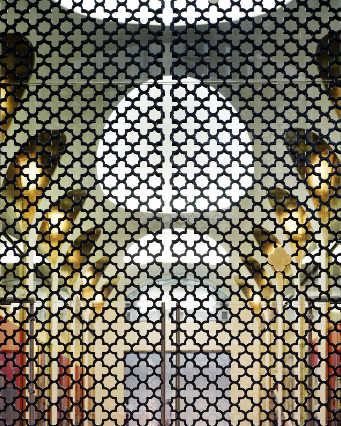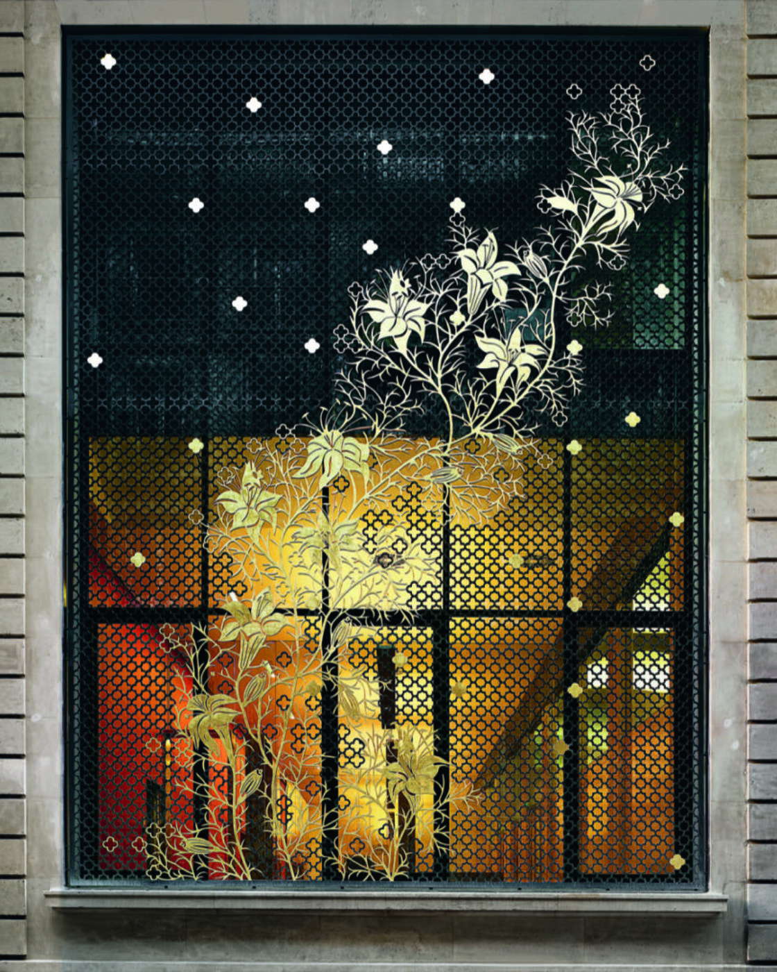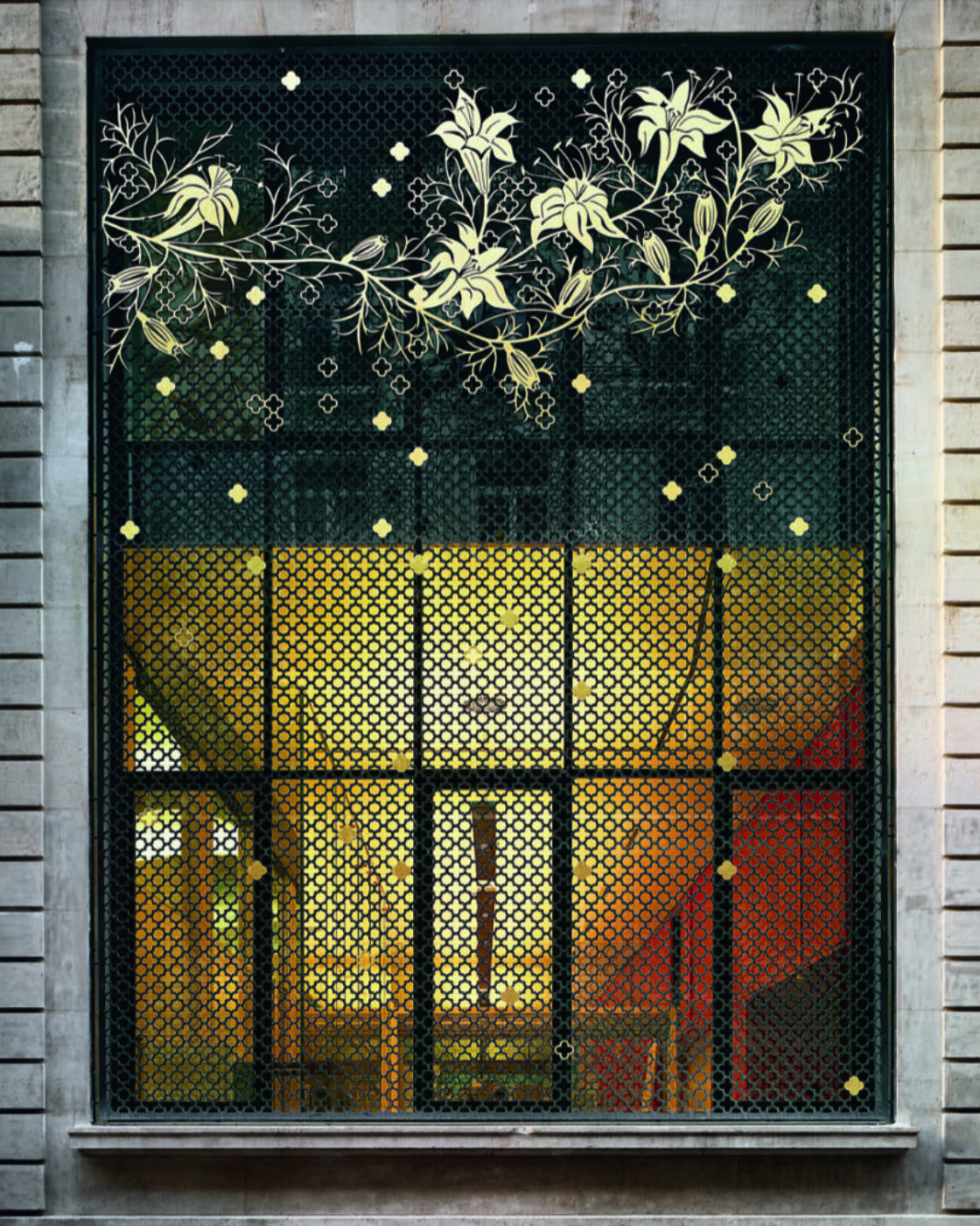 Au-delà de l’intervention architecturale, PCA-STREAM a cherché à mettre en valeur l’identité de l’institution par la conception de grilles contemporaines, apposées sur les baies du quai Anatole-France et de la rue de Lille. Ces grilles d’acier doré répondent au désir d’ouverture et de transparence de la Caisse des Dépôt, institution méconnue du grand public, en incarnant ses valeurs : pérennité, long terme, confiance. Leur motif naît de la conception d’un nouvel idéogramme pour l’institution, à partir d’une variation sur ses d’initiales (C-D-C) et d’une réinterprétation des motifs floraux de son blason historique. L’équilibre instauré par la Caisse des Dépôts entre la préservation de l’intérêt collectif et le développement de l’intérêt privé est suggéré par l’alliance entre l’épanouissement organique des fleurs de lys et la rigueur des feuilles de trèfle. Le motif est décliné à l’intérieur du bâtiment via des sérigraphies sur verre. Cette création a fait l’objet d’un long travail de réflexion et de conception avec les représentants de l’institution, une designer (Annonciade Perron), une spécialiste en stratégie discursive (Pauline Merlet), des artisans spécialisés et les architectes des Bâtiments de France, aboutissant à un projet aujourd’hui salué comme emblématique de l’institution.