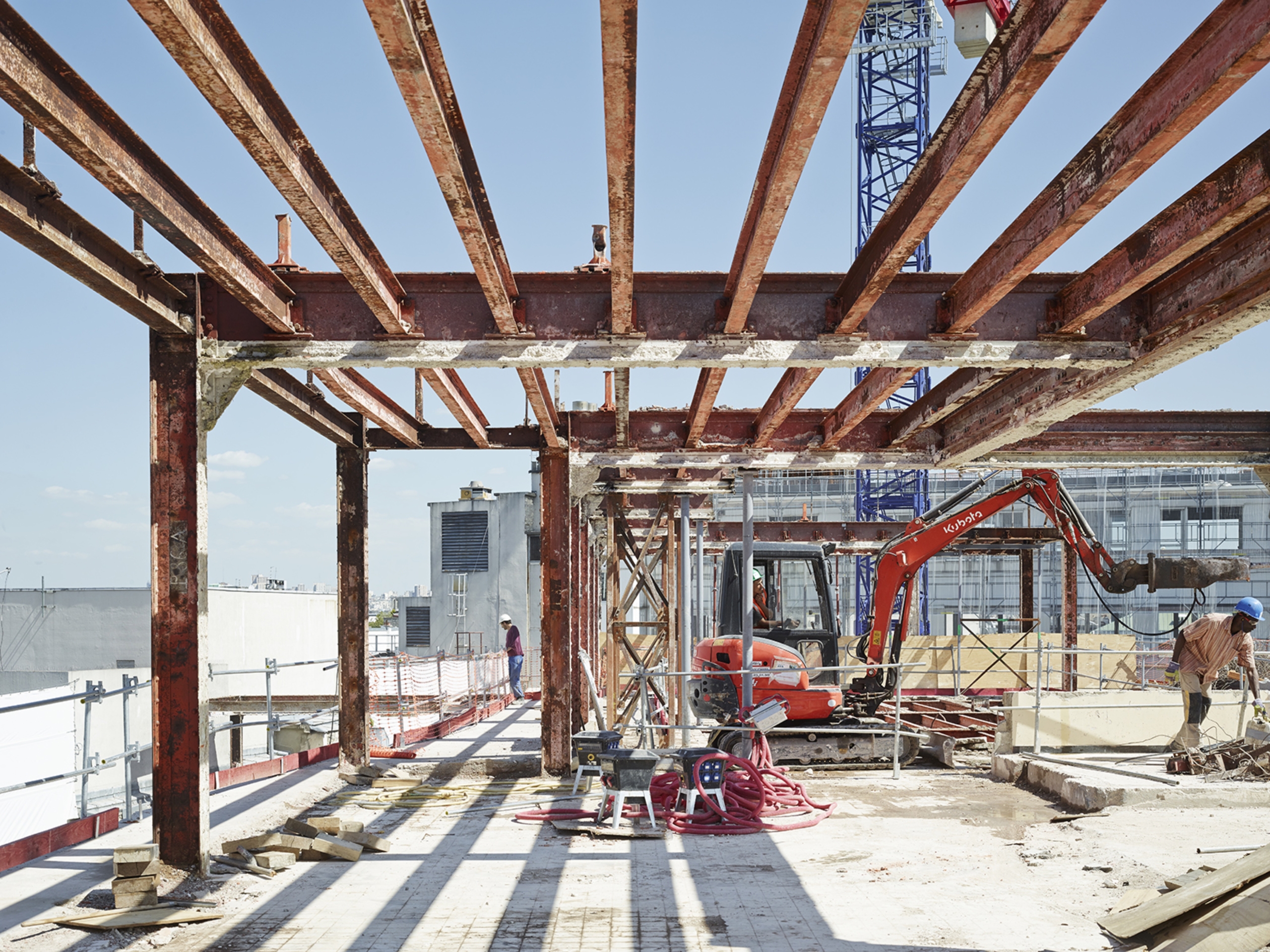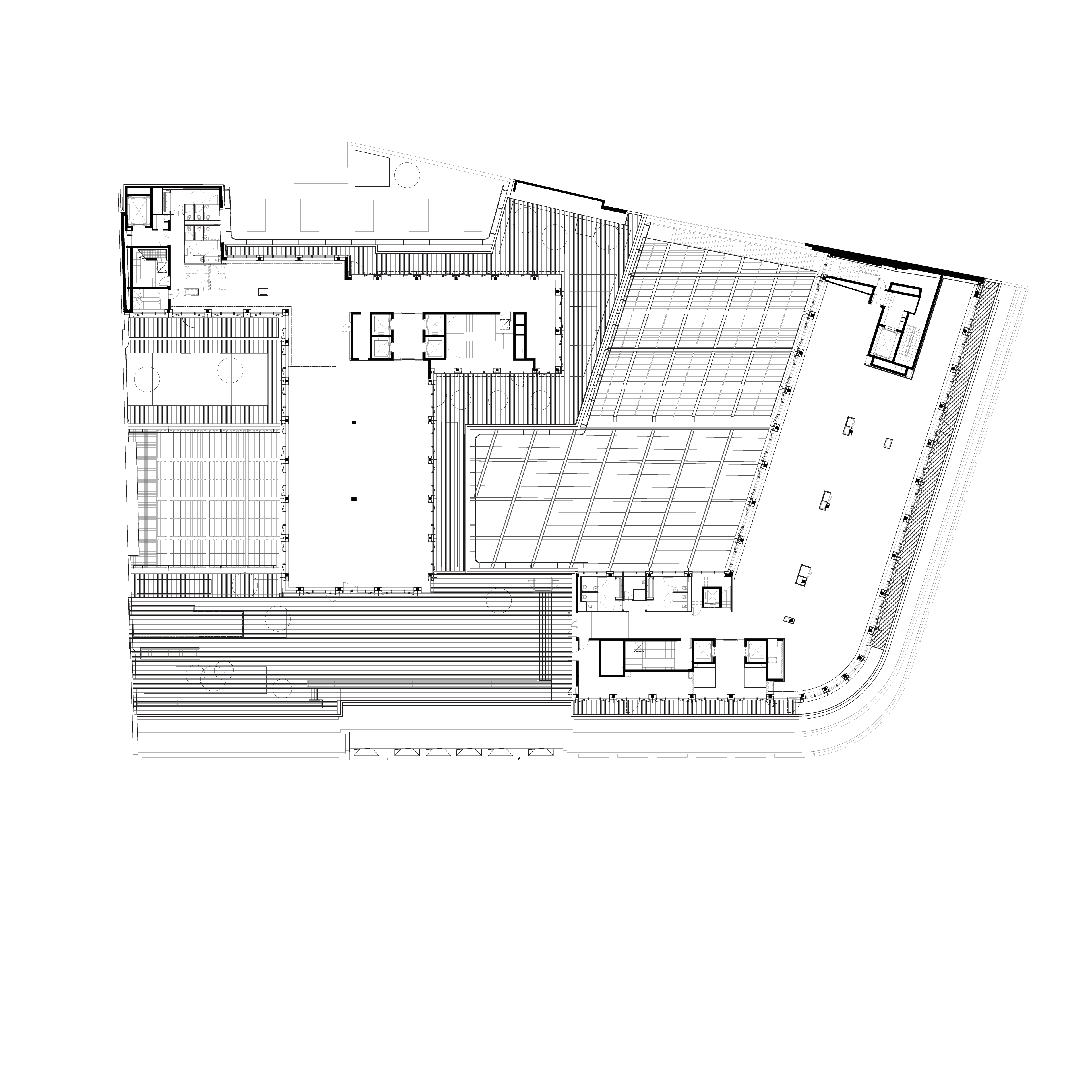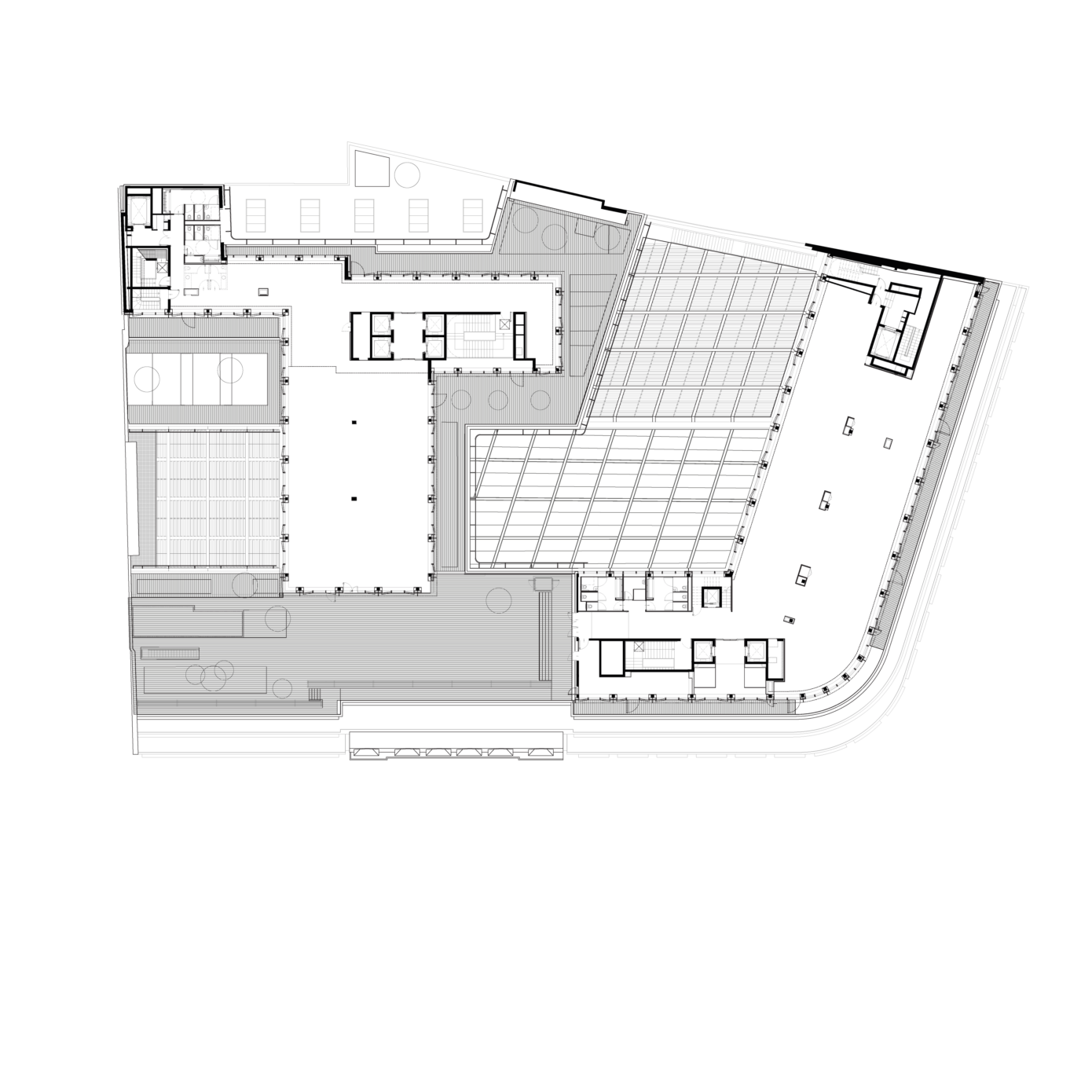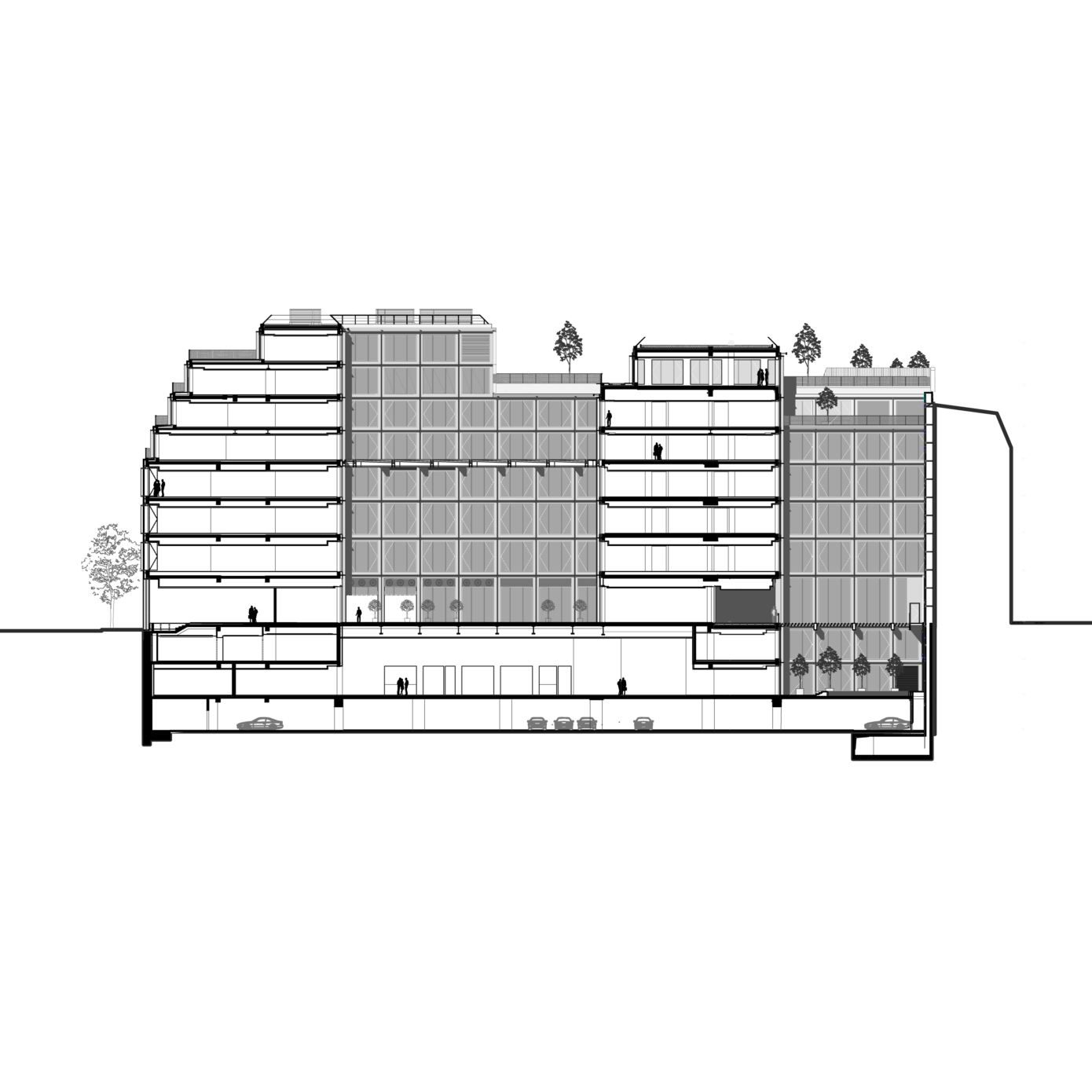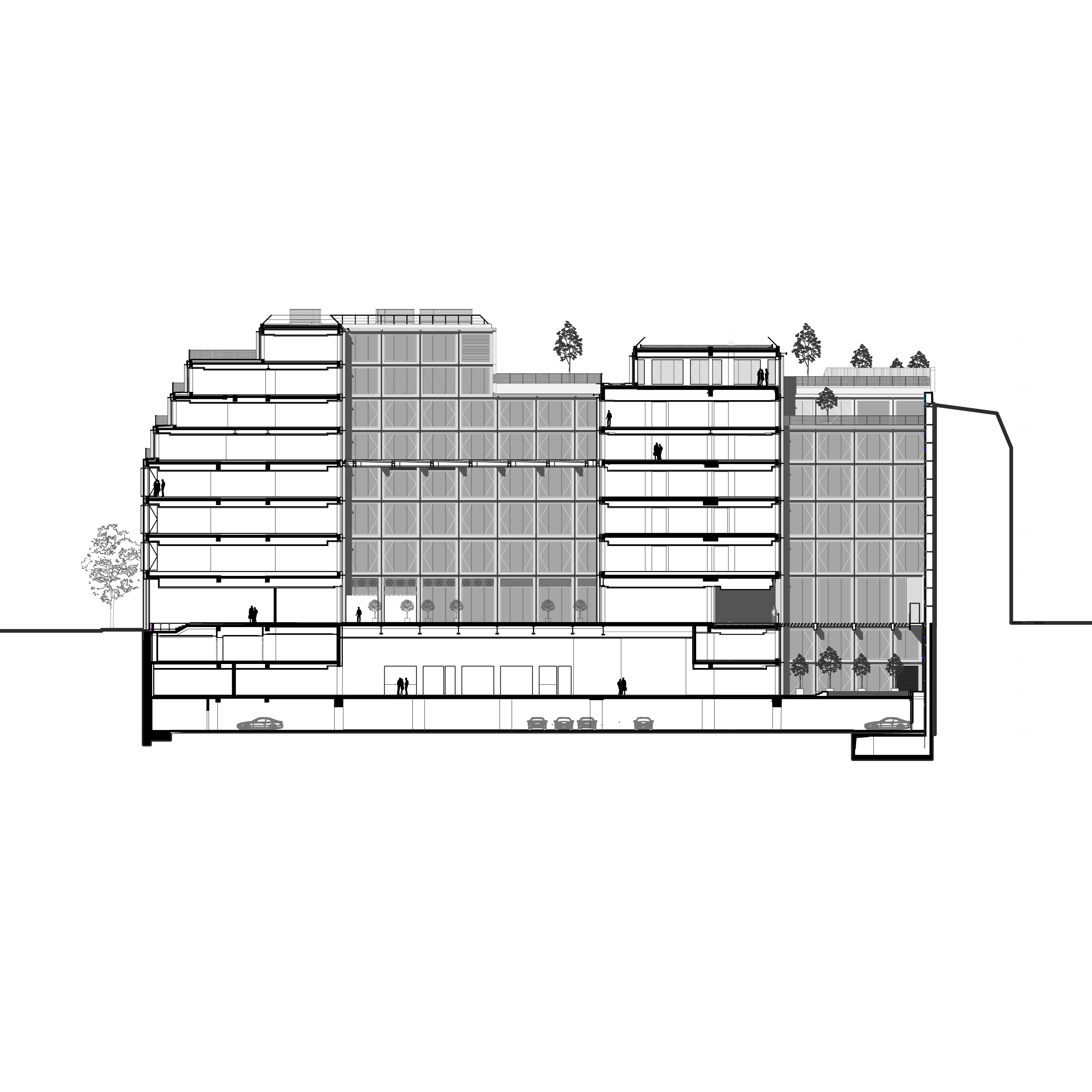 L’émergence de modèles organisationnels orientés vers la qualité de la relation et l’expérience collaborative implique de repenser l’architecture des espaces de travail. Avec #cloud.paris, l’immeuble de bureau devient espace de communauté et outil de management. Il permet d’attirer les talents et favorise la sérendipité par l’importance de ses espaces partagés et ses services exceptionnels, proches des codes de l’hôtellerie. Autour des cours intérieures se déploient trois restaurants à l’offre culinaire variée, adaptée aux différents moments et rythmes de la journée, ainsi qu’une salle de fitness, une conciergerie et un business center. Le e-lounge, avec ses coques de bois formant des espaces de convivialité, se mue en place du village. Les terrasses sont libérées de leur rôle technique et les usagers peuvent y travailler ou se détendre en profitant des vues panoramiques. Au cœur de la vie urbaine, de ses services, restaurants et lieux de loisirs, #cloud.paris est représentatif d’un retour aux centres-villes, à rebours des centres d’affaires monofonctionnels et des campus de périphérie.