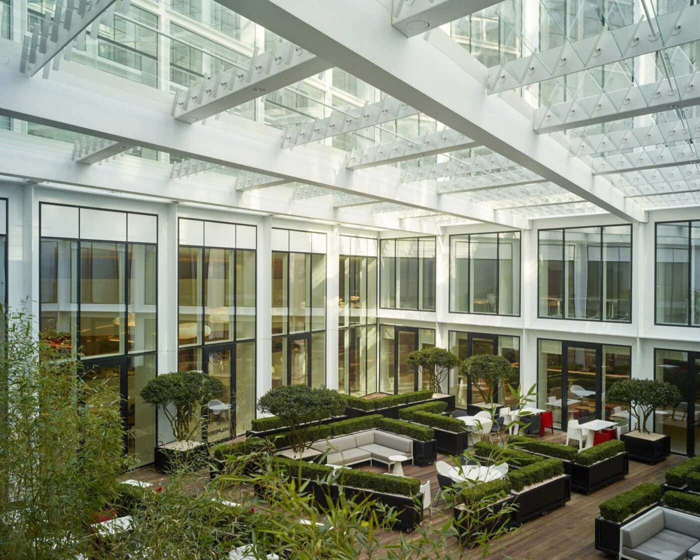 Restructuration d’un ensemble de quatre immeubles en centre d’affaires (dont auditorium, fitness center, conciergerie, restaurants)