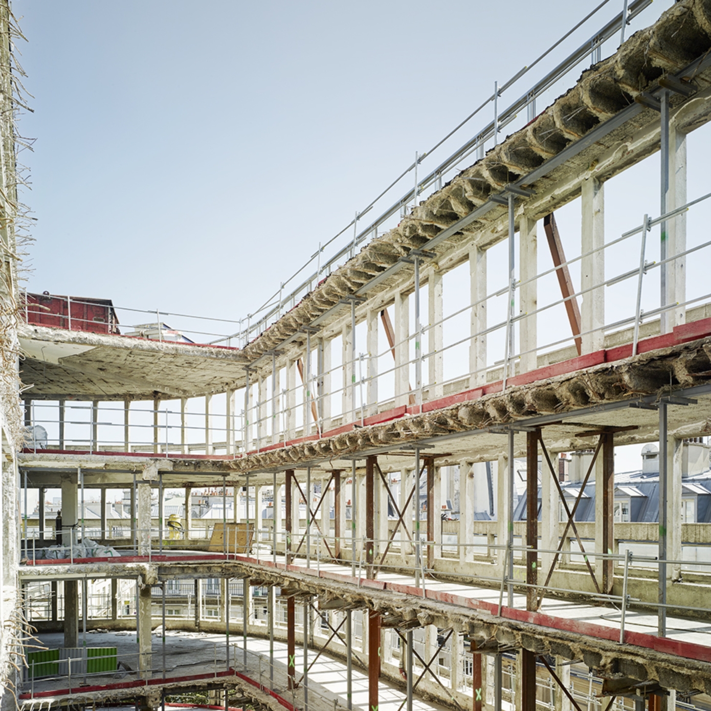 #cloud.paris concrétise les études de la SFL sur la création de valeur dans l’immobilier tertiaire et les recherches de PCA-STREAM autour des évolutions des espaces de travail. Conçu peu après la publication de la revue Stream 02, After Office, il répond à des modes de travail où la productivité et l’innovation reposent sur la créativité et l’expérience collective. Il propose un espace innovant au cœur de la rue Réaumur, marquée par l’architecture de la première révolution industrielle. Inspirées d’artistes minimalistes comme Sol Lewitt, les façades contemporaines réinterprète la trame géométrique des années 1950. Leur forte identité harmonise l’ensemble de l’îlot et prend une dimension symbolique, signe de l’intégration d’espaces à la pointe de l’innovation au sein de la ville historique.
