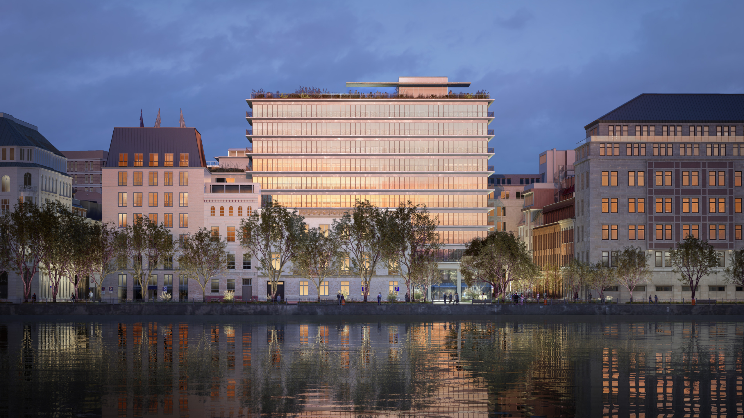 L’approche architecturale de PCA-STREAM repose sur la mise en valeur des qualités originelles du bâtiment à travers une réinterprétation contemporaine de son architecture. Réinventé et sublimé, l’ensemble du Binnebalster, l’ensemble du Binnebaslter fait signal, en particulier depuis les rives de l’Alster. Cette mise en valeur fera un bâtiment un achétype d’architecture centrée sur les usages et adaptées aux nouveaux modes de travail.