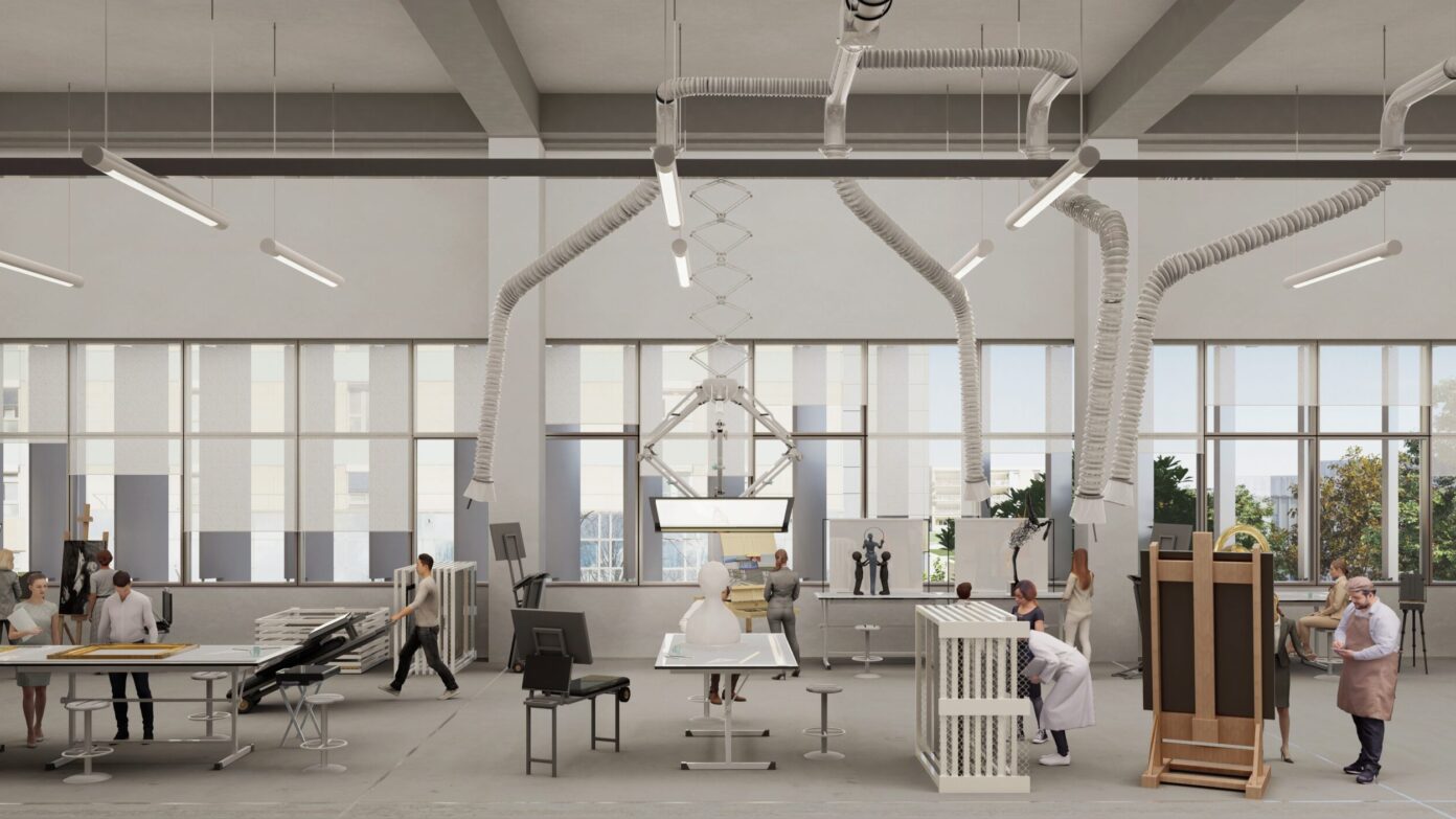 Le Centre Pompidou Francilien – Fabrique de l’Art, qui abritera les réserves des deux institutions, est un bâtiment au double visage, exprimant le paradoxe de son programme : côté pile, le coffre, un monolithe clos ne laissant pénétrer qu’une lumière naturelle contrôlée dans les ateliers, assurant les meilleures conditions de conservation et de restauration à deux des plus grandes collections d’art moderne au monde ; côté face, un profil accueillant et ouvert, pour rassembler le public autour de la création, poursuivant la philosophie avant-gardiste du projet de Piano et Rogers mais à l’échelle du territoire francilien, depuis Massy, ville culturelle à proximité du pôle de Paris-Saclay. Ce projet met en commun les forces et atouts de deux institutions partageant la conviction que l’établissement culturel de demain doit être ouvert et accessible, via une programmation culturelle et pédagogique autour des collections et de leurs métiers.