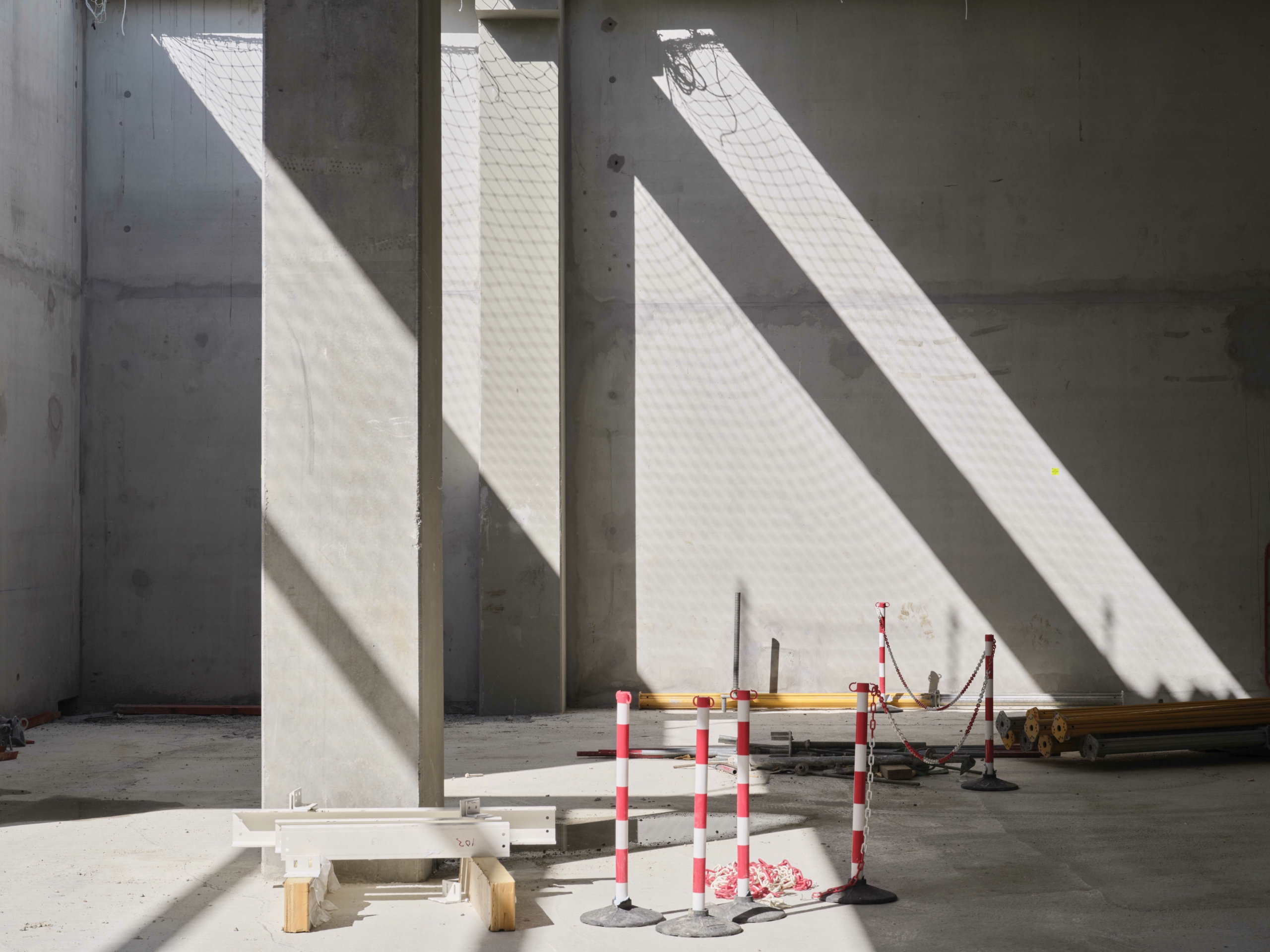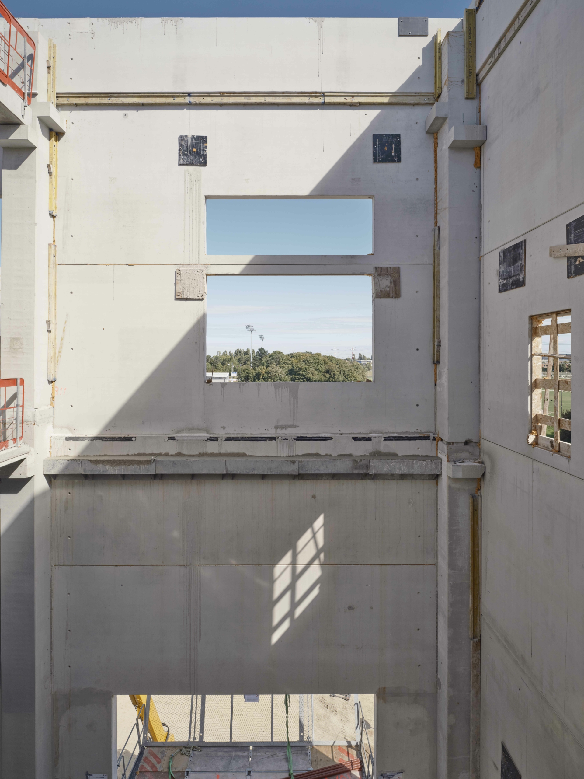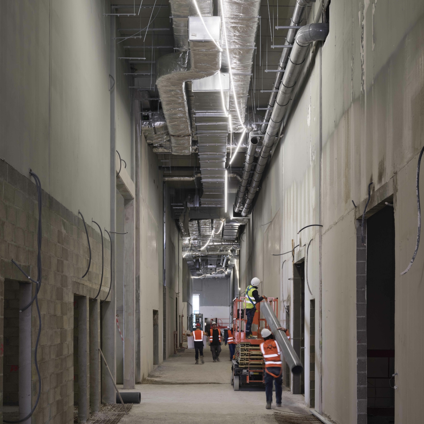 Deux ans de travail en dialogue avec les équipes des musées ont permis de concevoir un équipement optimisé pour offrir un outil de conservation de niveau international, compacté au maximum pour réduire toute surface inutile et économiser matières et budget. Le pôle de conservation sécurisé offre toutes les capacités et nature de stockage. Les réserves se développent sur trois niveaux au fonctionnement indépendant. Les œuvres lourdes et volumineuses occupent le rez-de-chaussée, les plus légères les étages ; les ateliers se déploient aux niveaux deux et trois au nord du bâtiment. Le plateau d’expositions, avec son grill technique pour toute muséographie, surplombe les réserves et offre des vues exceptionnelles ; il est également connecté au plateau de parole et performance. Entre la partie publique et les ateliers, une vitre permet de découvrir les nouvelles acquisitions dans un espace ponctuellement visitable.