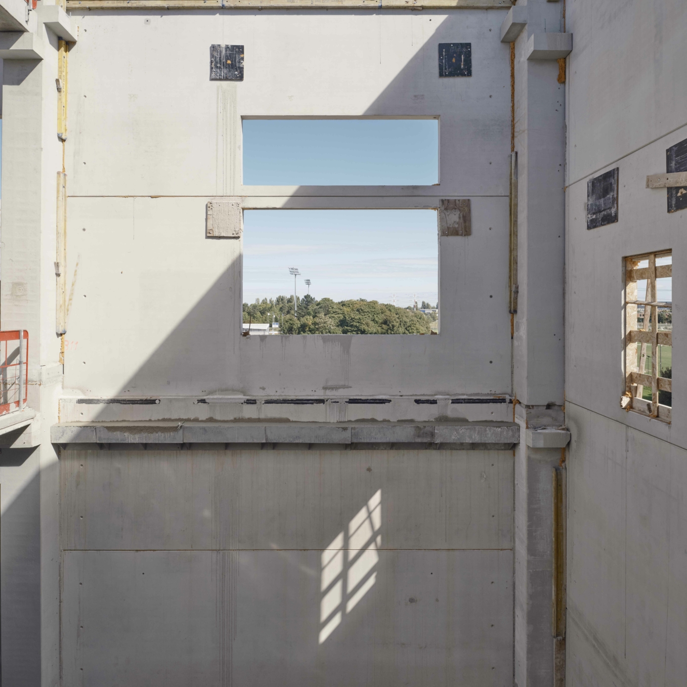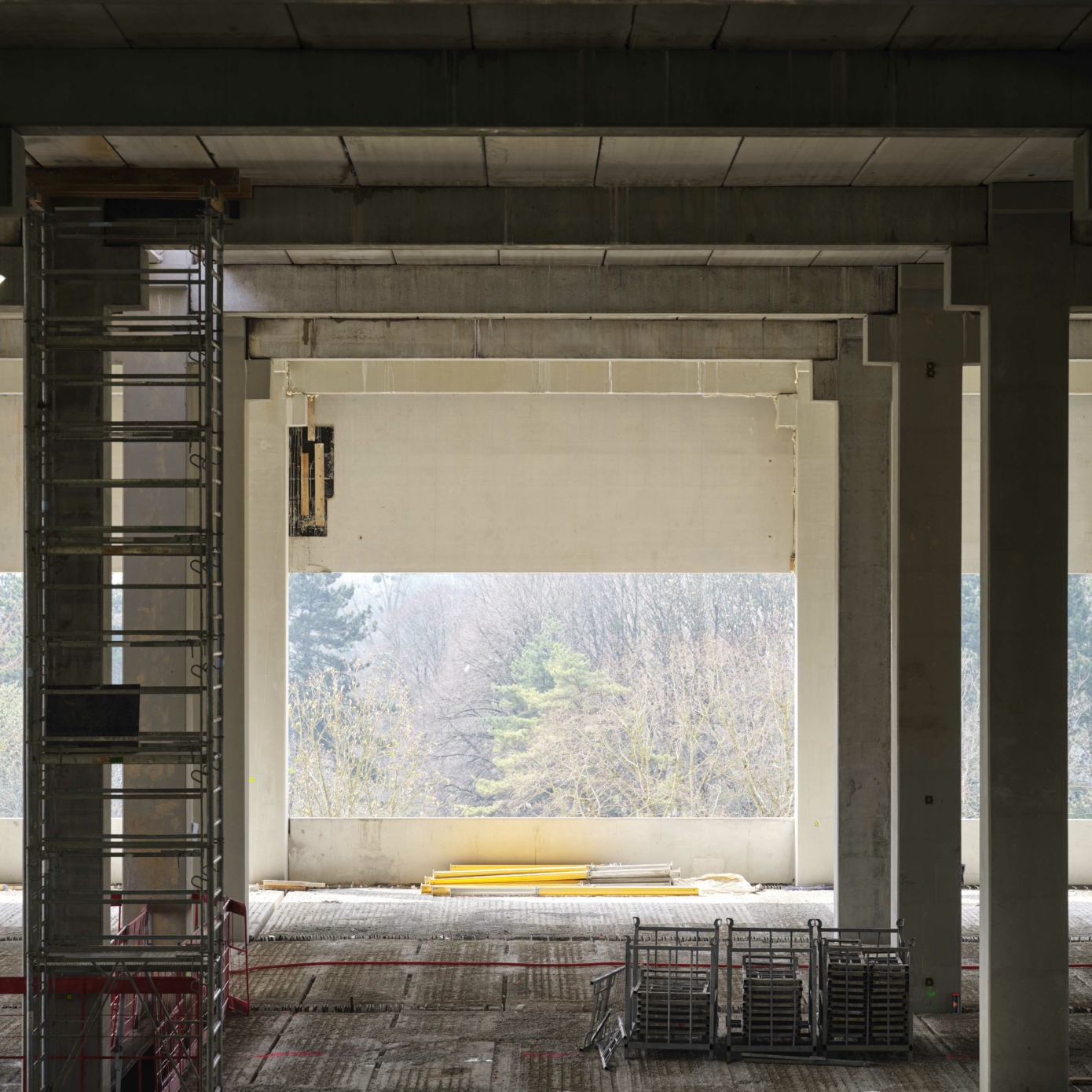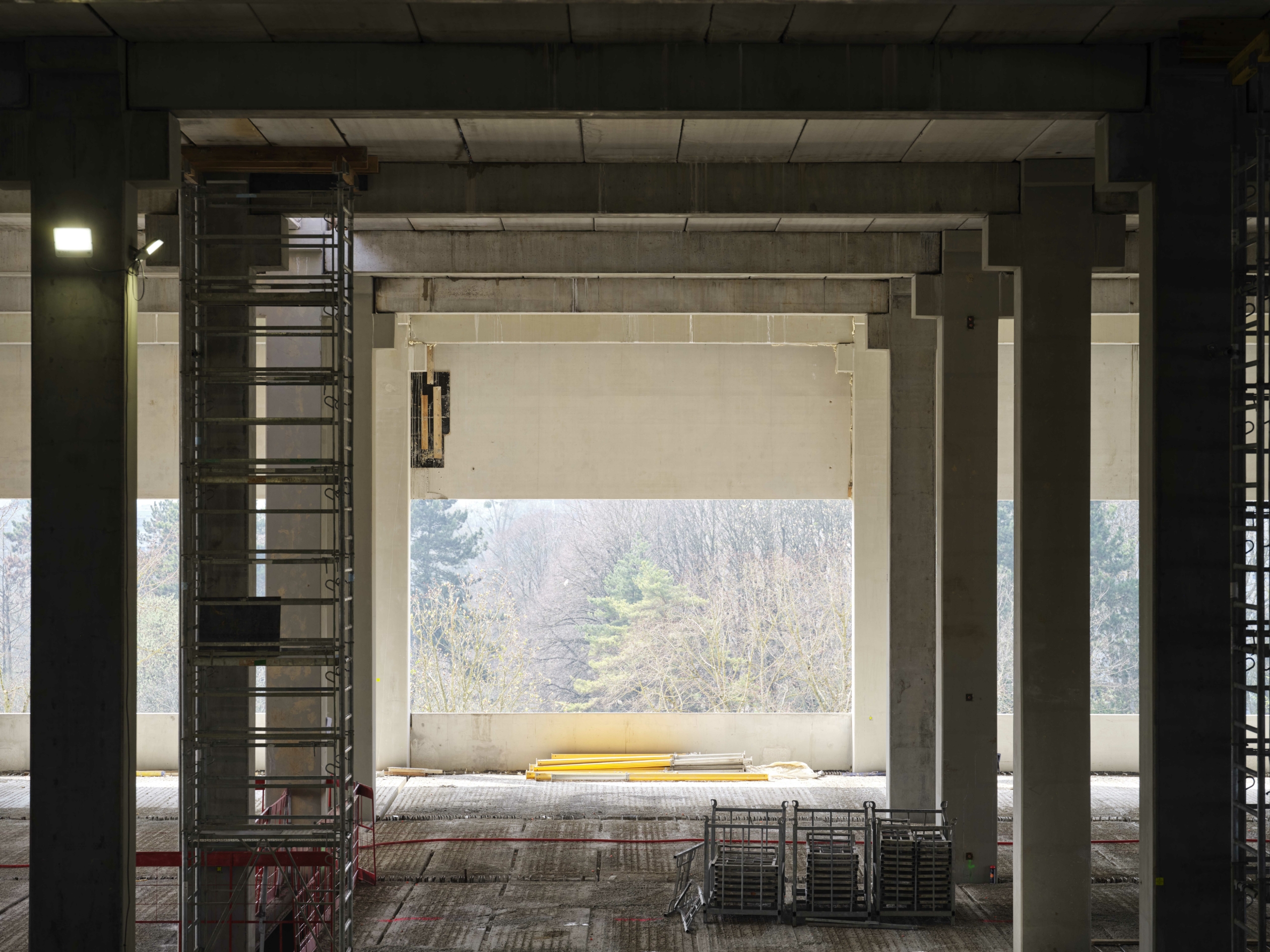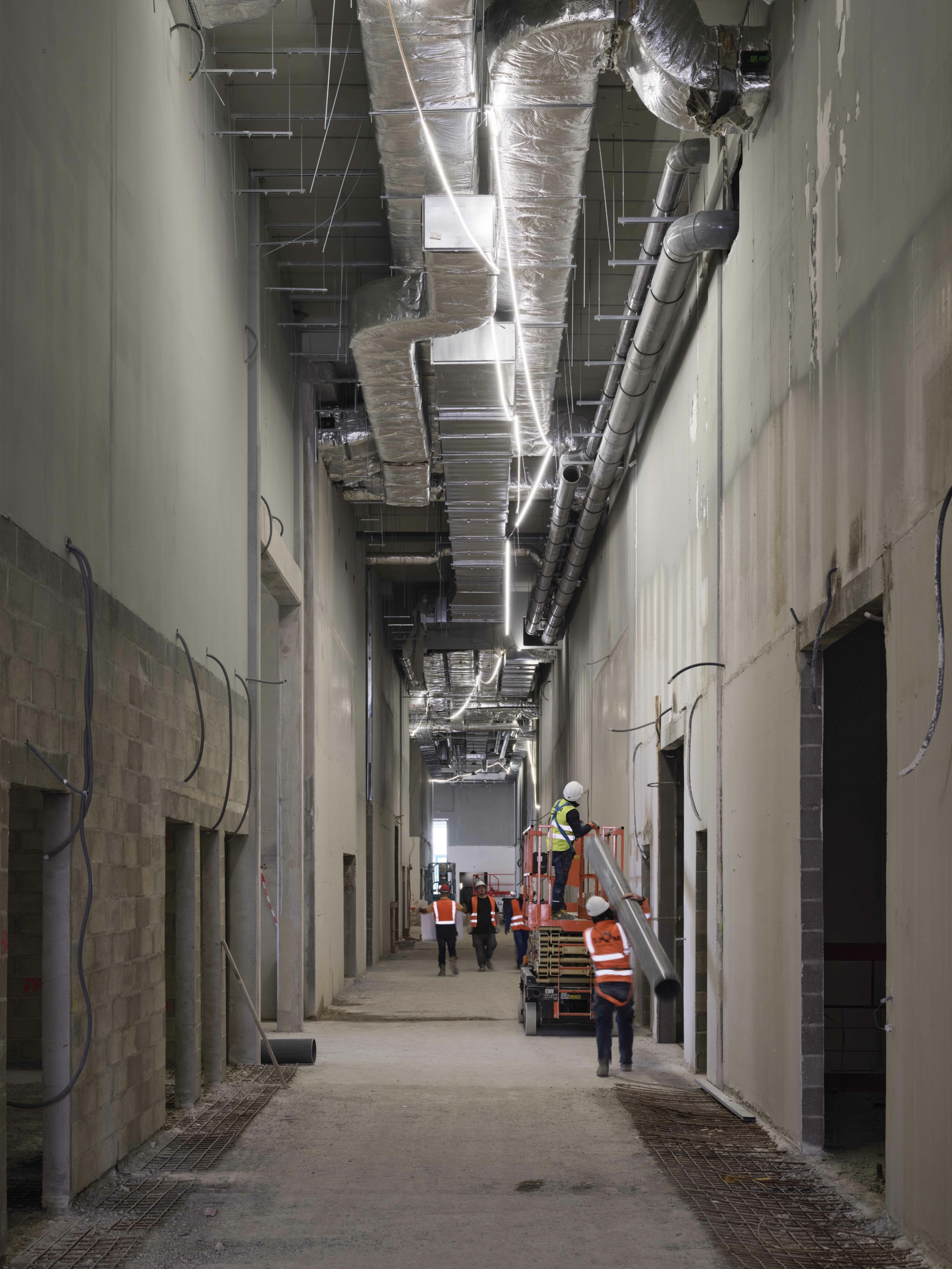 Deux ans de travail en dialogue avec les équipes des musées ont permis de concevoir un équipement optimisé pour offrir un outil de conservation de niveau international, compacté au maximum pour réduire toute surface inutile et économiser matières et budget. Le pôle de conservation sécurisé offre toutes les capacités et nature de stockage. Les réserves se développent sur trois niveaux au fonctionnement indépendant. Les œuvres lourdes et volumineuses occupent le rez-de-chaussée, les plus légères les étages ; les ateliers se déploient aux niveaux deux et trois au nord du bâtiment. Le plateau d’expositions, avec son grill technique pour toute muséographie, surplombe les réserves et offre des vues exceptionnelles ; il est également connecté au plateau de parole et performance. Entre la partie publique et les ateliers, une vitre permet de découvrir les nouvelles acquisitions dans un espace ponctuellement visitable.