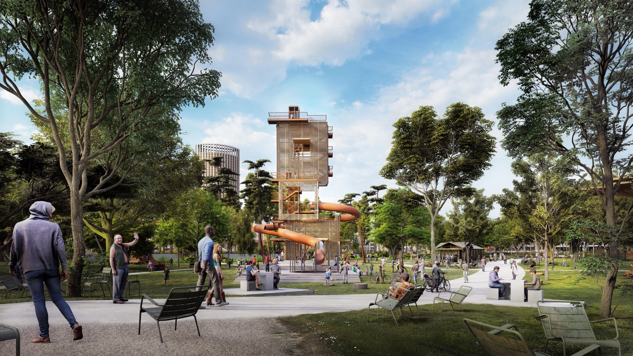 Pour participer pleinement à la dynamique urbaine que connaît l’axe historique et répondre aux enjeux de la ville du XXIe siècle, PCA-STREAM a élaboré une stratégie s’appuyant sur trois principes qui célèbrent son identité originelle : retrouver l’esprit de la promenade, renouer avec le bois et les loisirs, créer une vitrine des nouvelles mobilités.