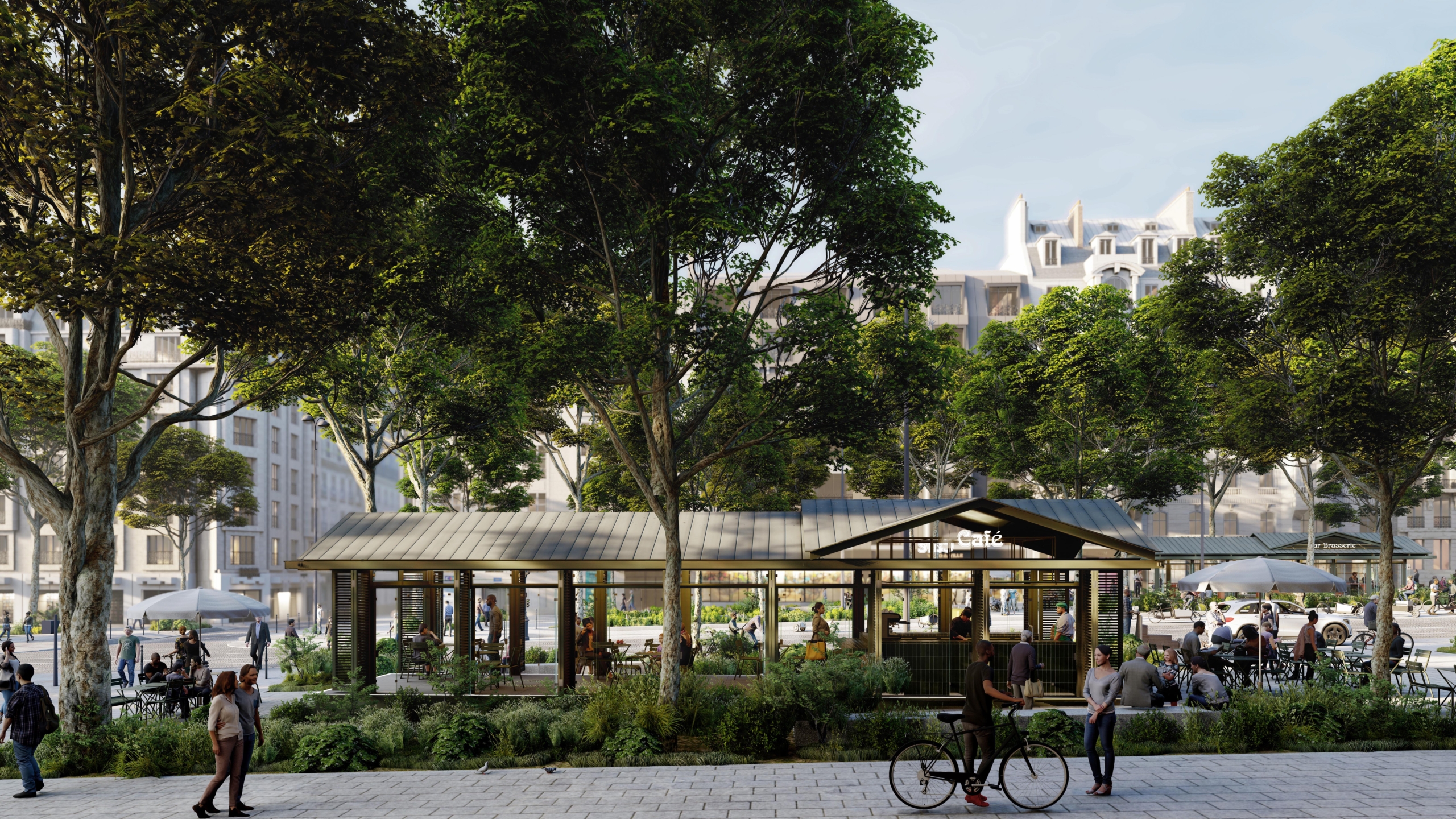 Le parcours pourrait être jalonné de nouveaux usages et aménités, terrasses, pavillons de restauration, ainsi que de salons végétaux. La déminéralisation des sols et la végétalisation de l’avenue améliorerait les continuités biologiques et participerait activement au rafraîchissement urbain rendu nécessaire par le changement climatique. Le bois de Boulogne et l’avenue pourraient enfin être reconnectés par la création d’une porte symbolique et l’aménagement d’un cheminement ponctué de kiosques, de jeux pour enfants et d’un grand belvédère.