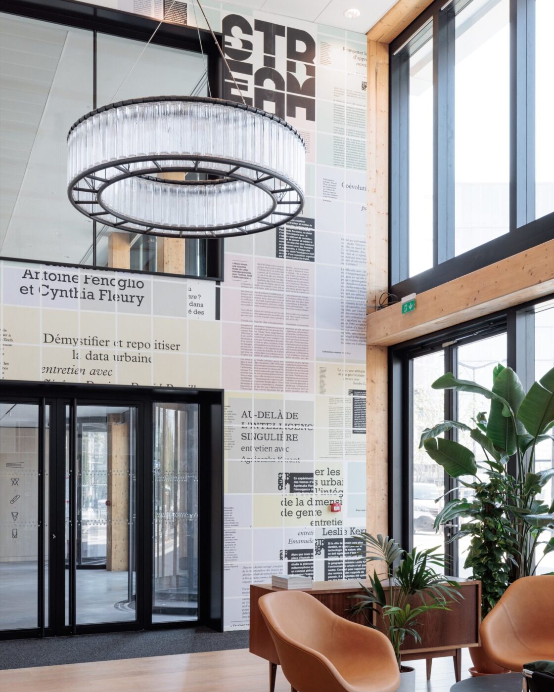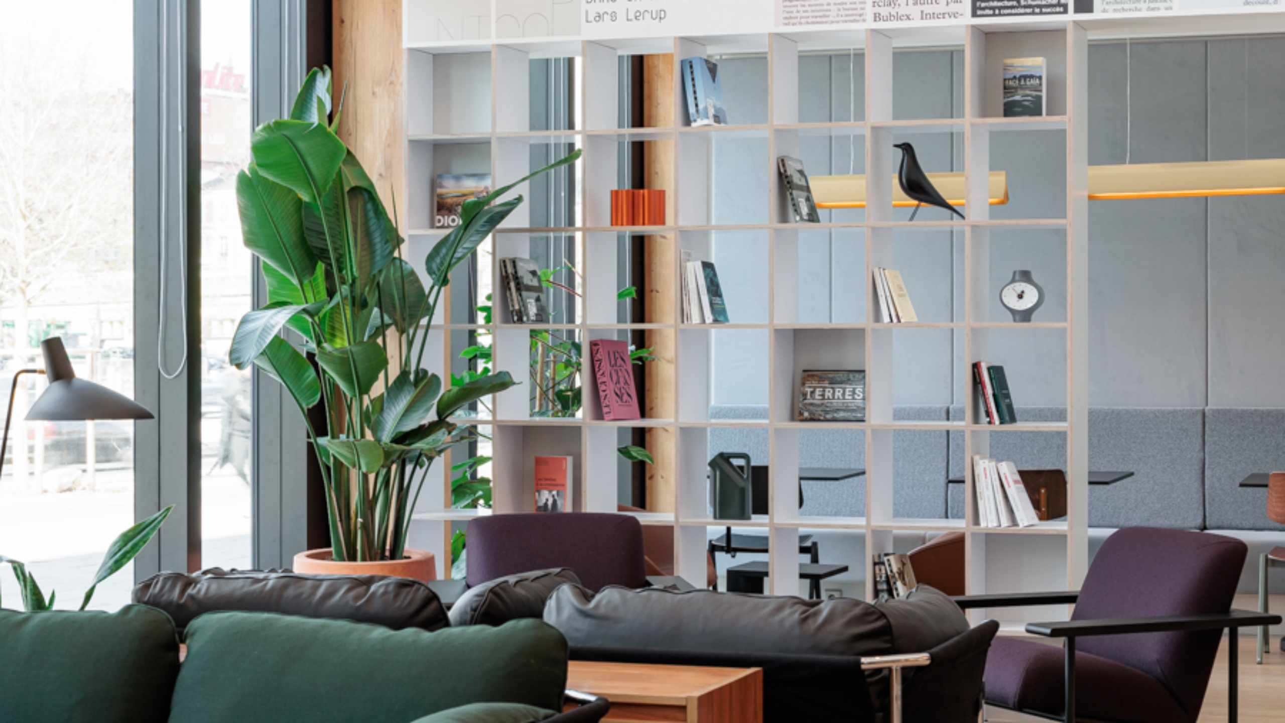 Au-delà du nom du bâtiment, l’équipe a souhaité incarner spatialement cette démarche avec le Stream Café, qui prend une dimension à la fois symbolique et pratique, comme accueil du programme de bureau, occupé par OVH, un leader français du cloud computing. Au centre du bâtiment, au pied de la faille végétale, l’entrée principale mène directement à un tiers lieu, le Stream Café, en lieu et place de la banque d’accueil d’un programme de bureau traditionnel. Conçu par le Pôle architecture d’intérieur de l’agence, son aménagement repose sur des choix de mobiliers confortables, aux teintes et textures chaudes, en bois, cuir ou feutre, qui lui donne une dimension agréable et domestique éloignée des codes formel du bureau.