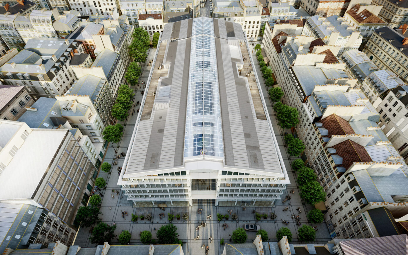 L’objectif de cette réhabilitation du Marché Saint-Honoré est de préserver l’intégrité de la création originelle, tout le remettant aux normes sur les performances environnementales et d’usage. Au-delà d’une simple mise aux normes en vigueur, le projet vise des objectifs ambitieux en termes de certifications environnementales, en réponse aux ambitions du Plan Climat de Paris de réduction des consommations à 2030 et de neutralité carbone à 2050.