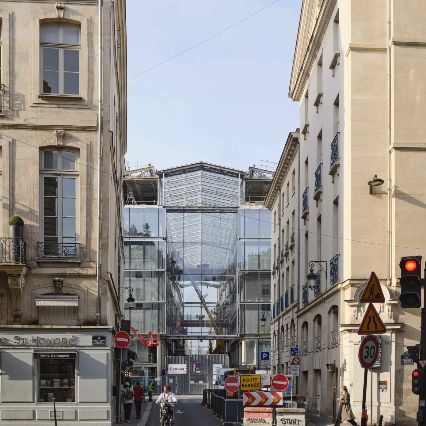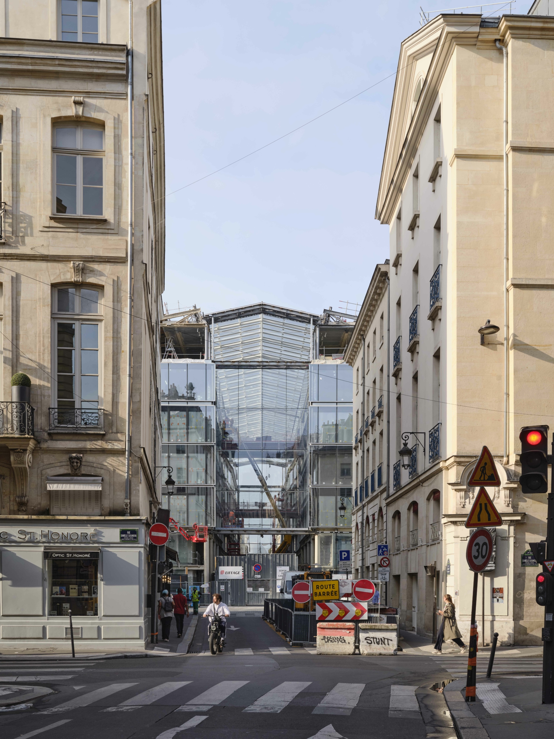 Exceptionnellement situé au cœur du premier arrondissement de Paris, le Marché Saint-Honoré, sur la place du même nom, constitue l’un des monuments de l’architecture contemporaine de la capitale, réalisé par Ricardo Bofill en 1997. Il prend place sur le site d’un ancien couvent de dominicains dit « jacobins », qui accueillera durant la Révolution le club du même nom – autour notamment de Robespierre –, avant d’être transformé en marché au début du XIXe siècle, puis en parking couvert à la fin des années 1950. L’ensemble actuel compte deux ailes symétriques, Vendôme et Palais Royal, reliées par des passerelles et traversées par le passage couvert des Jacobins. Il accueille essentiellement des commerces en rez-de-chaussée et des bureaux dans les étages, ainsi qu’un parking en sous-sol, une antenne de commissariat et quelques services de la ville et de la protection civile.