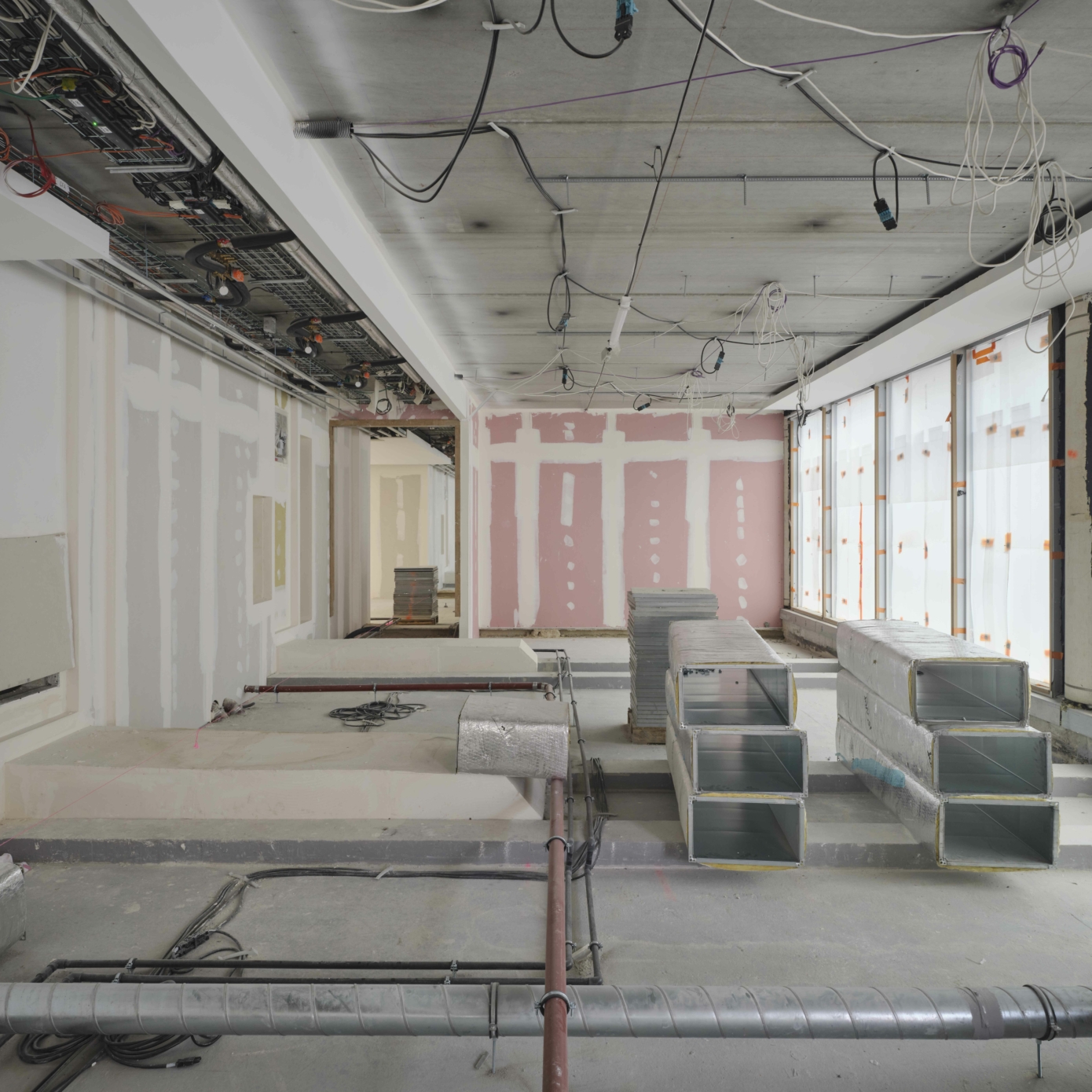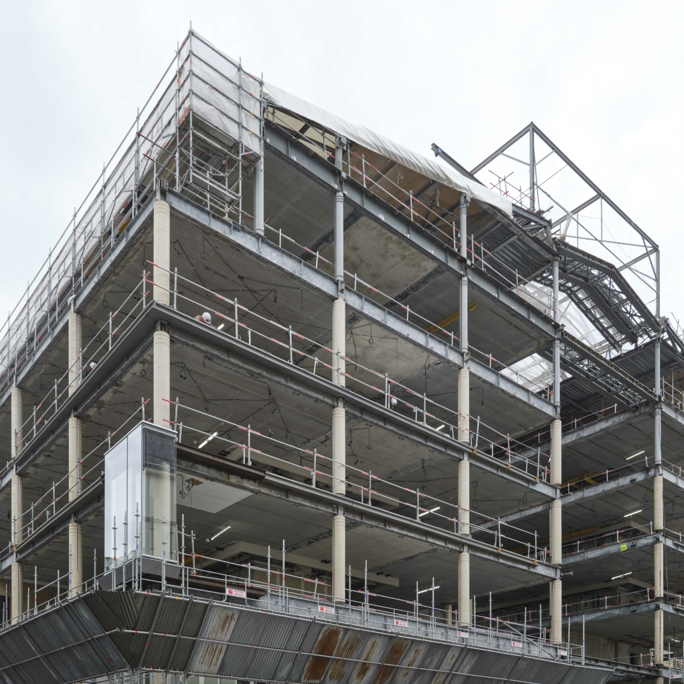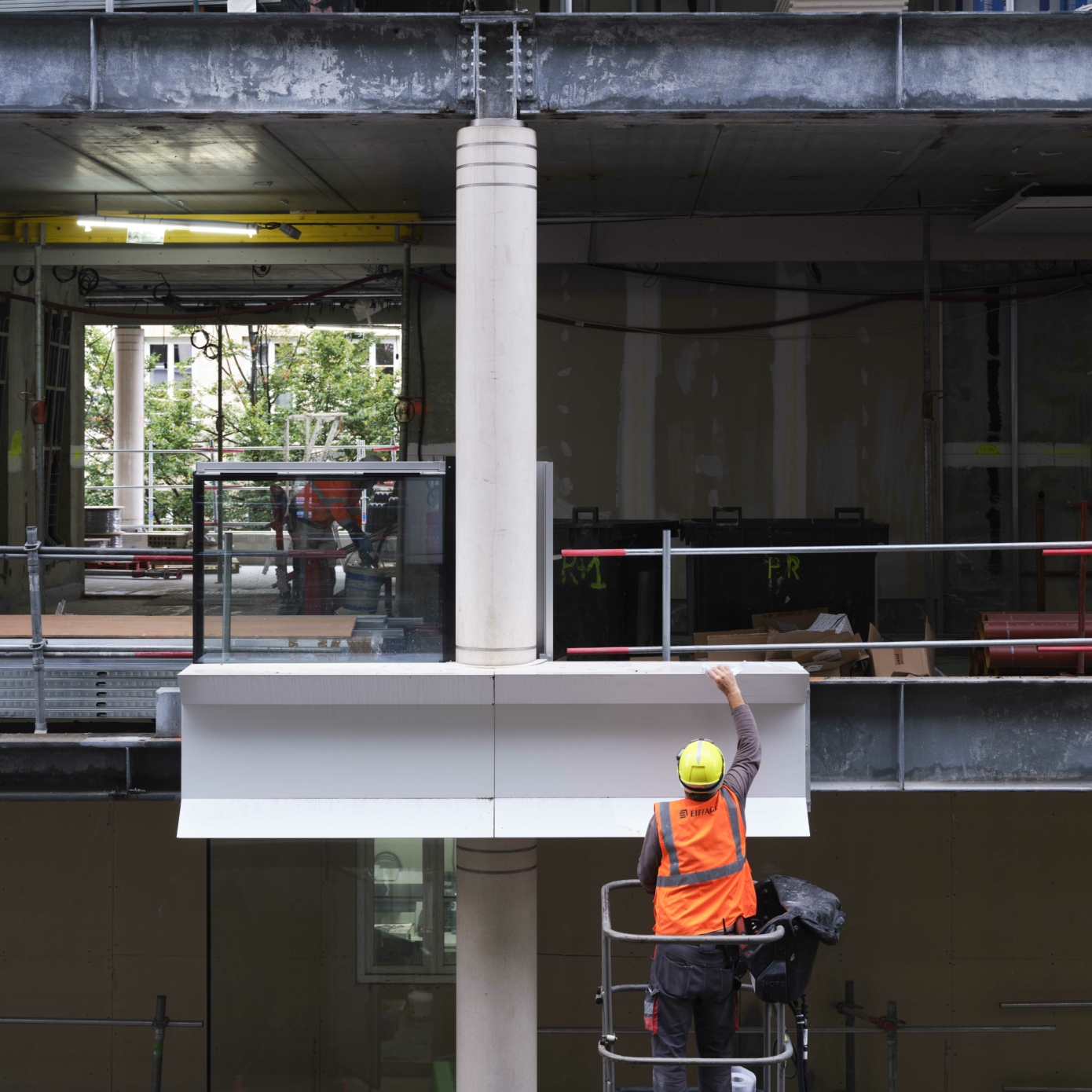 Dans les espaces de bureaux, l’optimisation des flux – avec l’aménagement de nouvelles circulations verticales et de passerelles à tous les étages –, permet de densifier et d’améliorer la flexibilité potentielle des plateaux, tant par ailes que par étage, pour répondre à des scénarios mono ou multipreneur. Les évolutions des usages au travail, avec une place croissante accordée à la collaboration et au bien-être des collaborateurs, se traduisent par l’ajout d’espaces de convivialité, de services premium et d’espaces hybrides de collaboration. La création de balcons filants sur la partie centrale des façades latérales et de deux terrasses en rooftop offre des espaces extérieurs agréables et accessibles pour un moment de détente ou de travail informel.