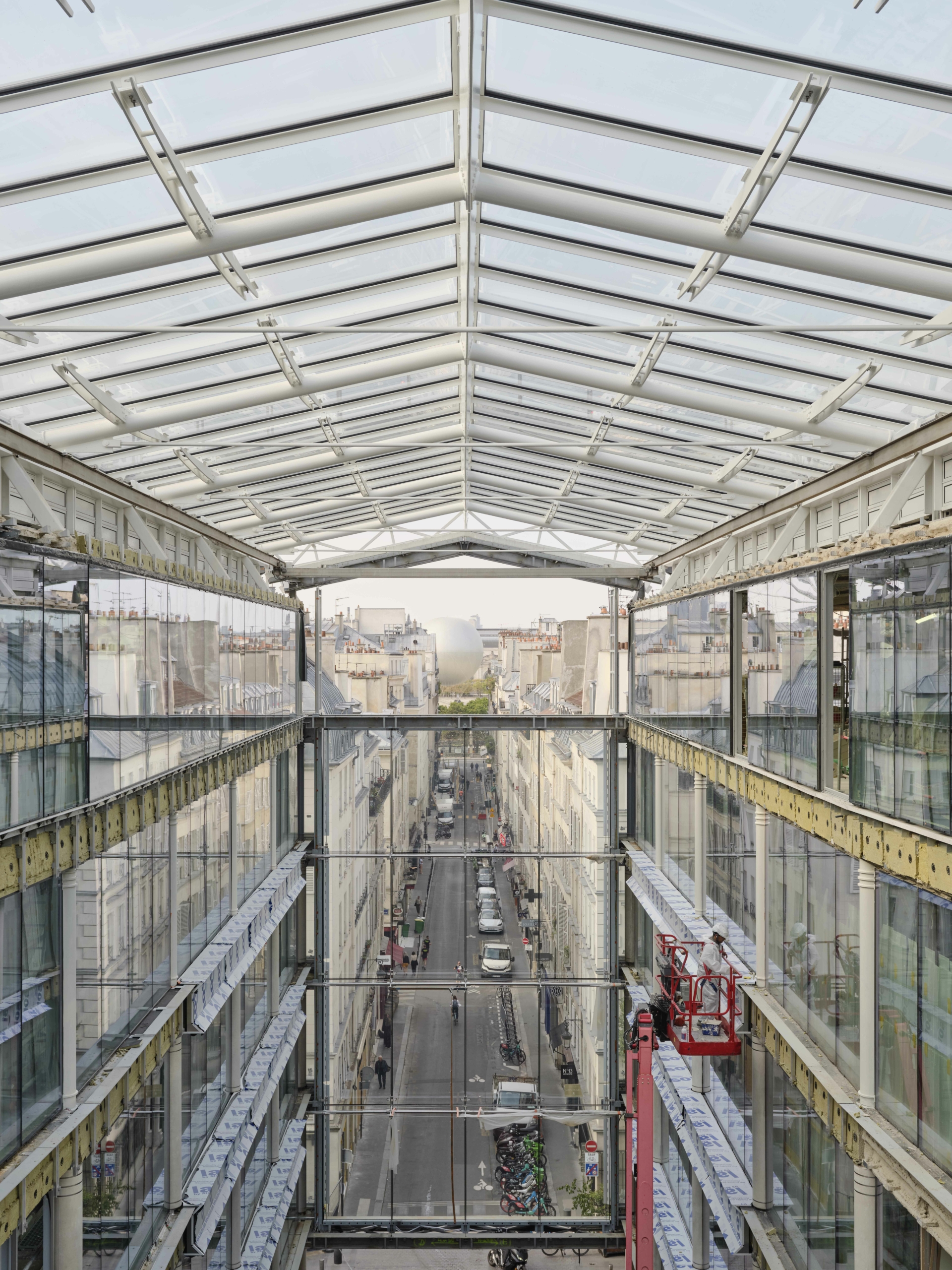 Ce « temple de verre » renouant avec la tradition des passages parisiens souffre cependant de fragilités en termes d’usages et de performances, les commerces étant majoritairement vacants, la partie bureaux présentant elle une obsolescence incompatible avec les nouvelles attentes des utilisateurs, l’ensemble étant particulièrement peu performant d’un point de vue énergétique. PCA-STREAM – en étroite collaboration avec le Taller de Arquitectura de Bofill –, mène aujourd’hui sa réhabilitation pour repositionner le bâtiment au regard des grandes évolutions sociétales.