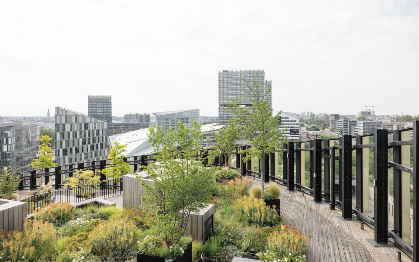 Construction d’un immeuble mixte comprenant bureaux, espaces de co-working, incubateur, business center, restaurants, commerces, crèche, salle de sport, appart hôtel, parvis urbain, place, terrasses et toiture agricole