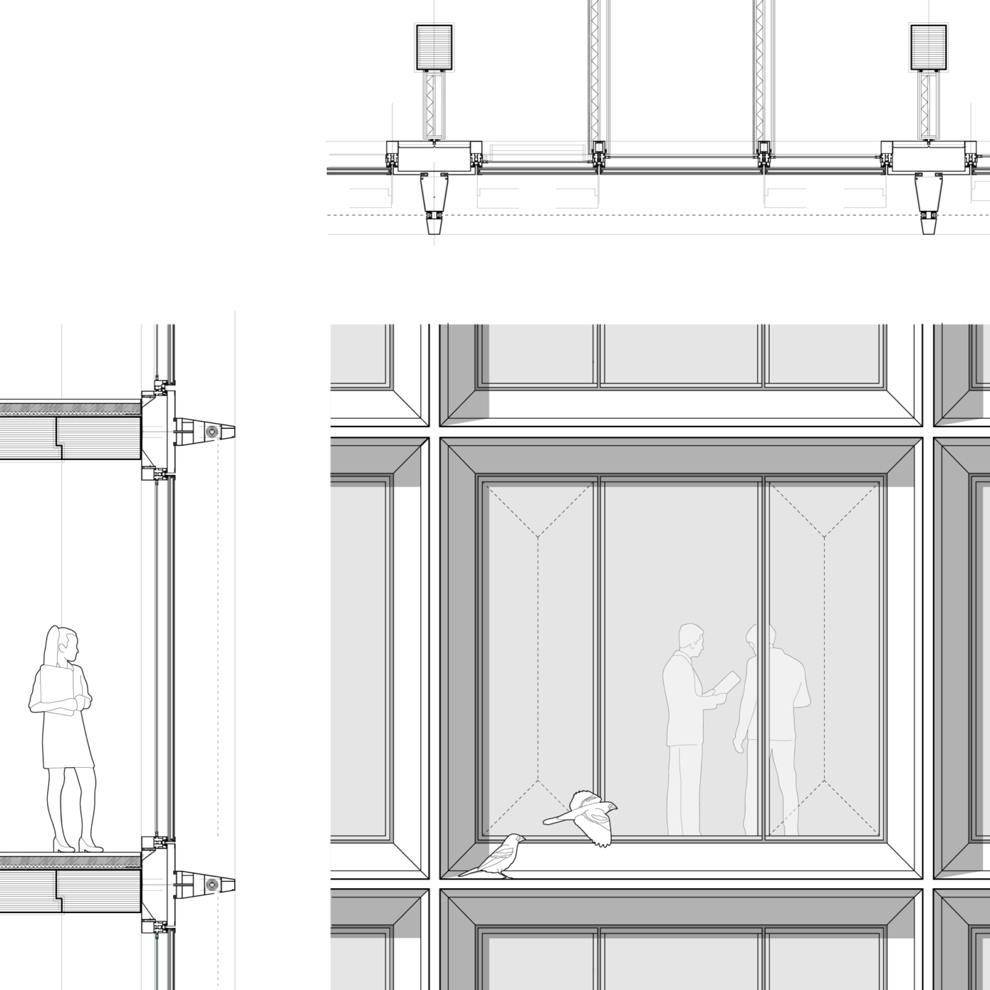 Gage d’une programmation évolutive, cette trame uniforme favorise les changements d’usage du bâtiment sans intervention structurelle majeure, ce qui en fait un prototype d’architecture résiliente. À ce titre, mais aussi via l’approche bioclimatique de son enveloppe – blanche au sud, noire au nord, protection végétale passive à l’est –, le Stream Building préfigure le futur PLU bioclimatique de la Ville de Paris.