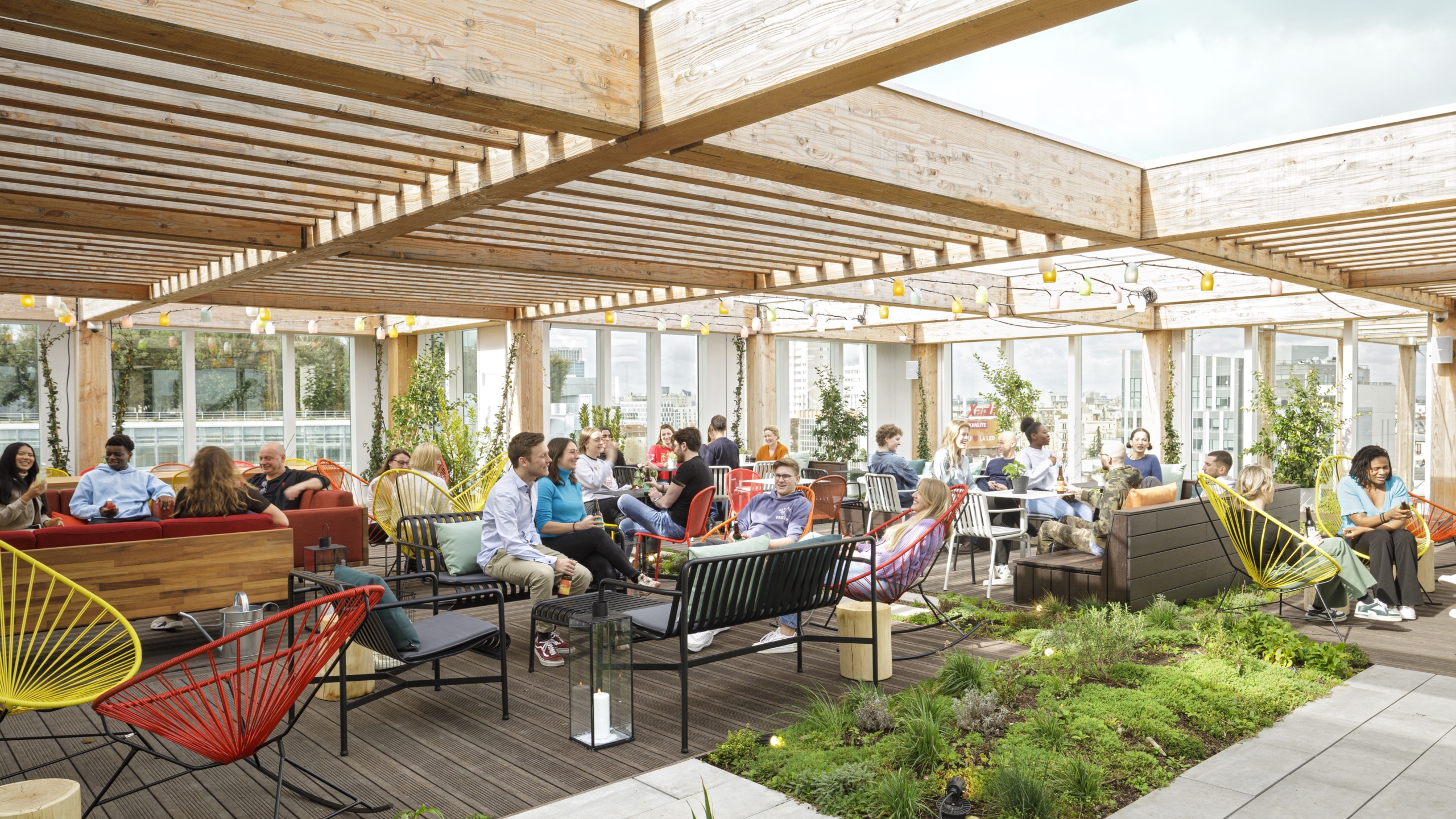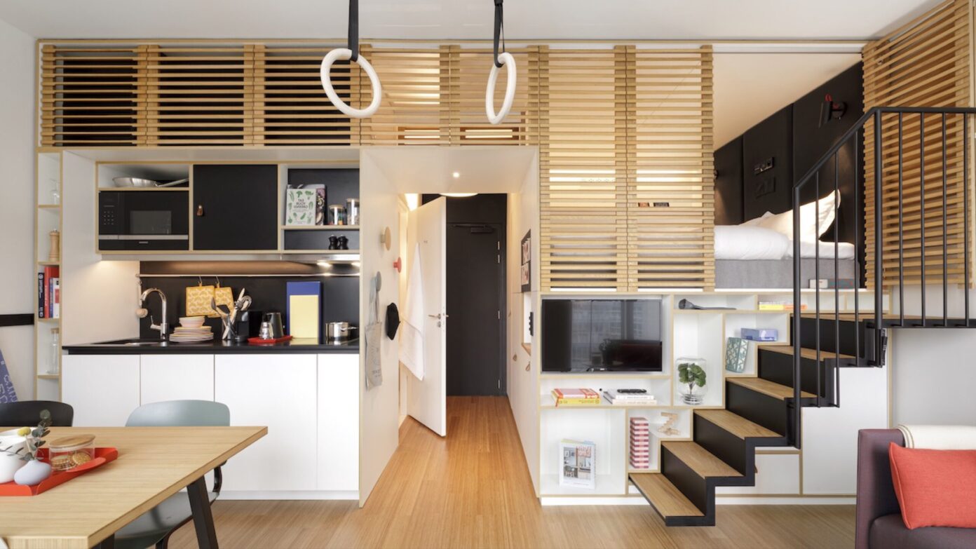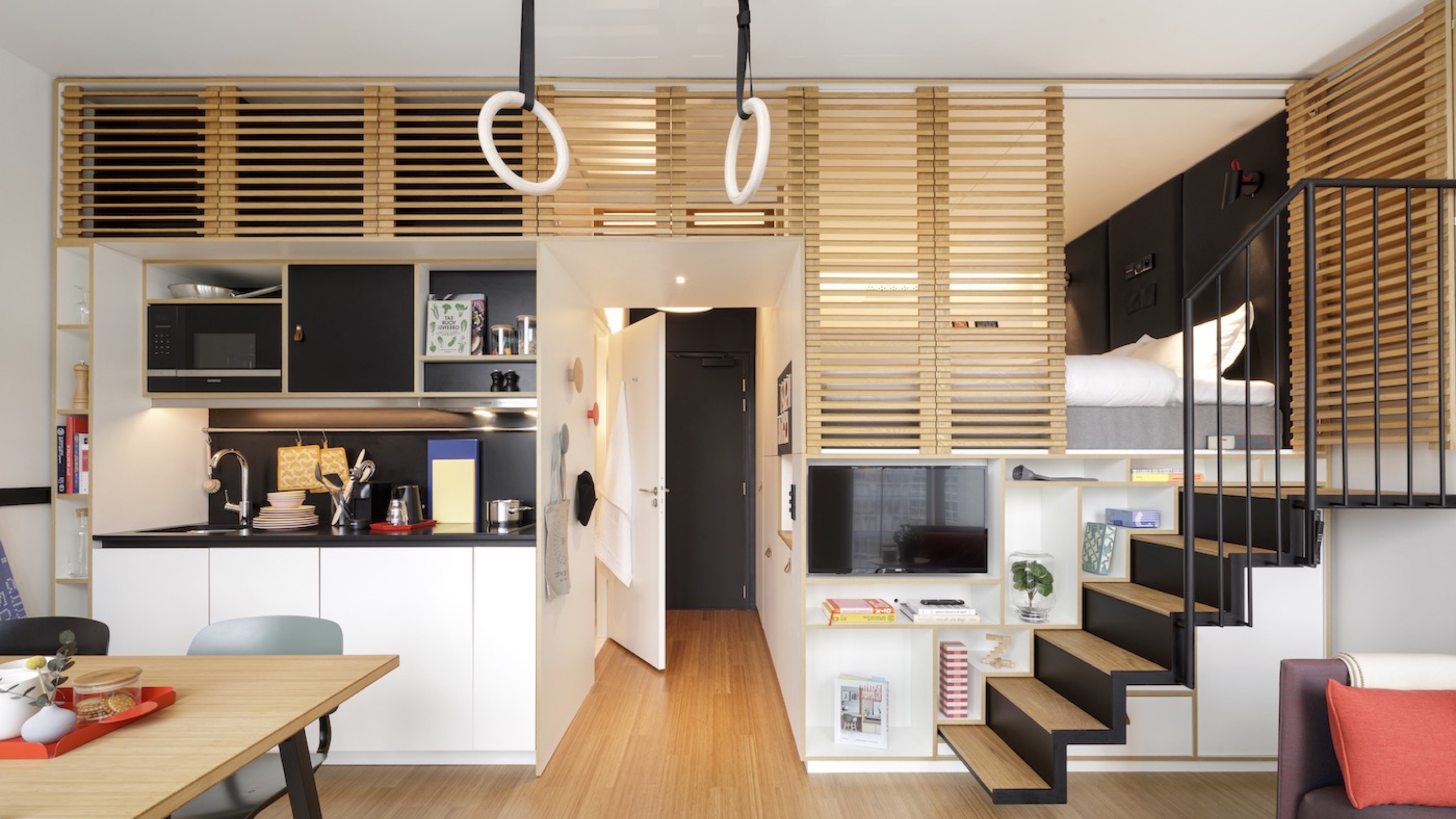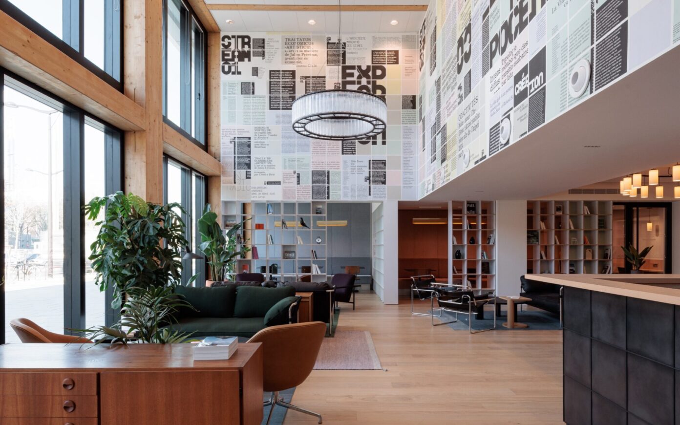 Les derniers niveaux sont occupés dans la configuration actuelle par une résidence hôtelière de nouvelle génération, opérée par l’enseigne néerlandaise Zoku, qui ouvre ici son premier établissement en France. Ses micro-appartements – pensés pour des séjours de moyennes durées –, sont à la fois des lieux de vie et de travail, complétés de nombreux services et espaces partagés, salle de sport, game room, cuisine ouverte… adaptés à la porosité des temps de vie d’une nouvelle génération de travailleurs nomades. Depuis l’accueil de Zoku, un bar-restaurant accessible à tous ouvre sur une terrasse offrant des vues spectaculaires sur le paysage urbain et le Tribunal Judiciaire de Paris.