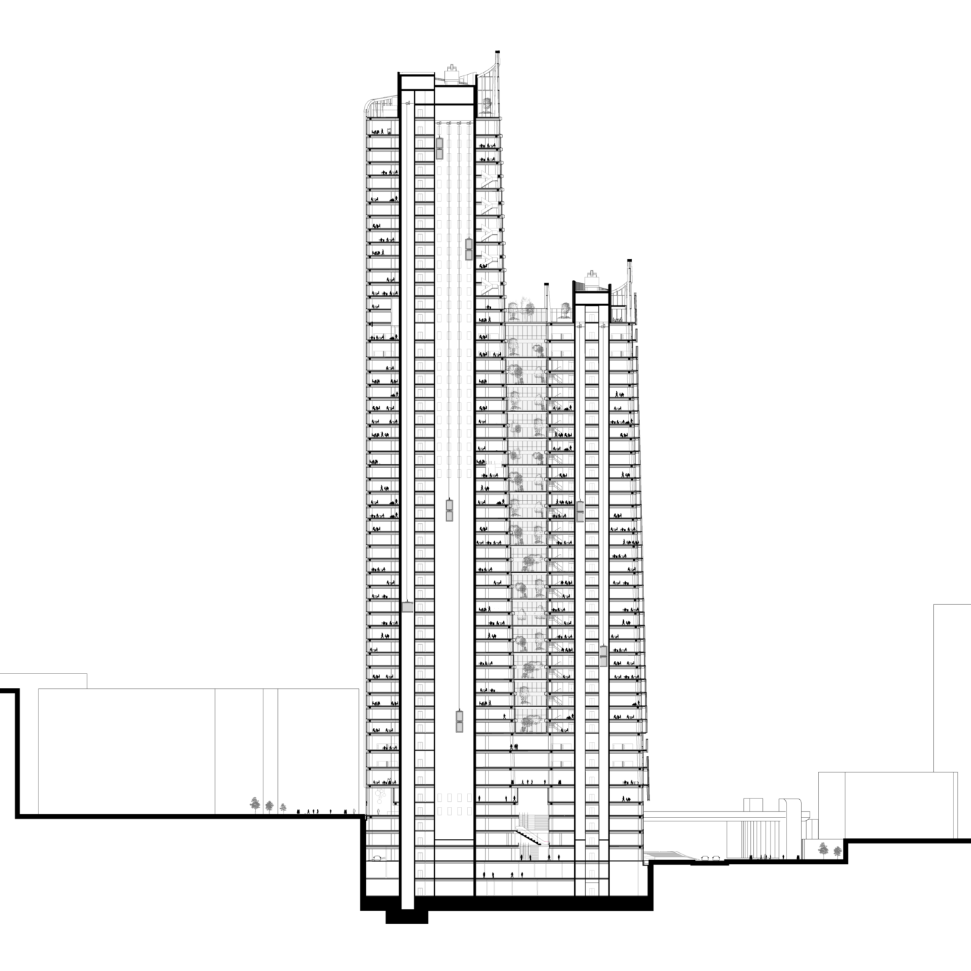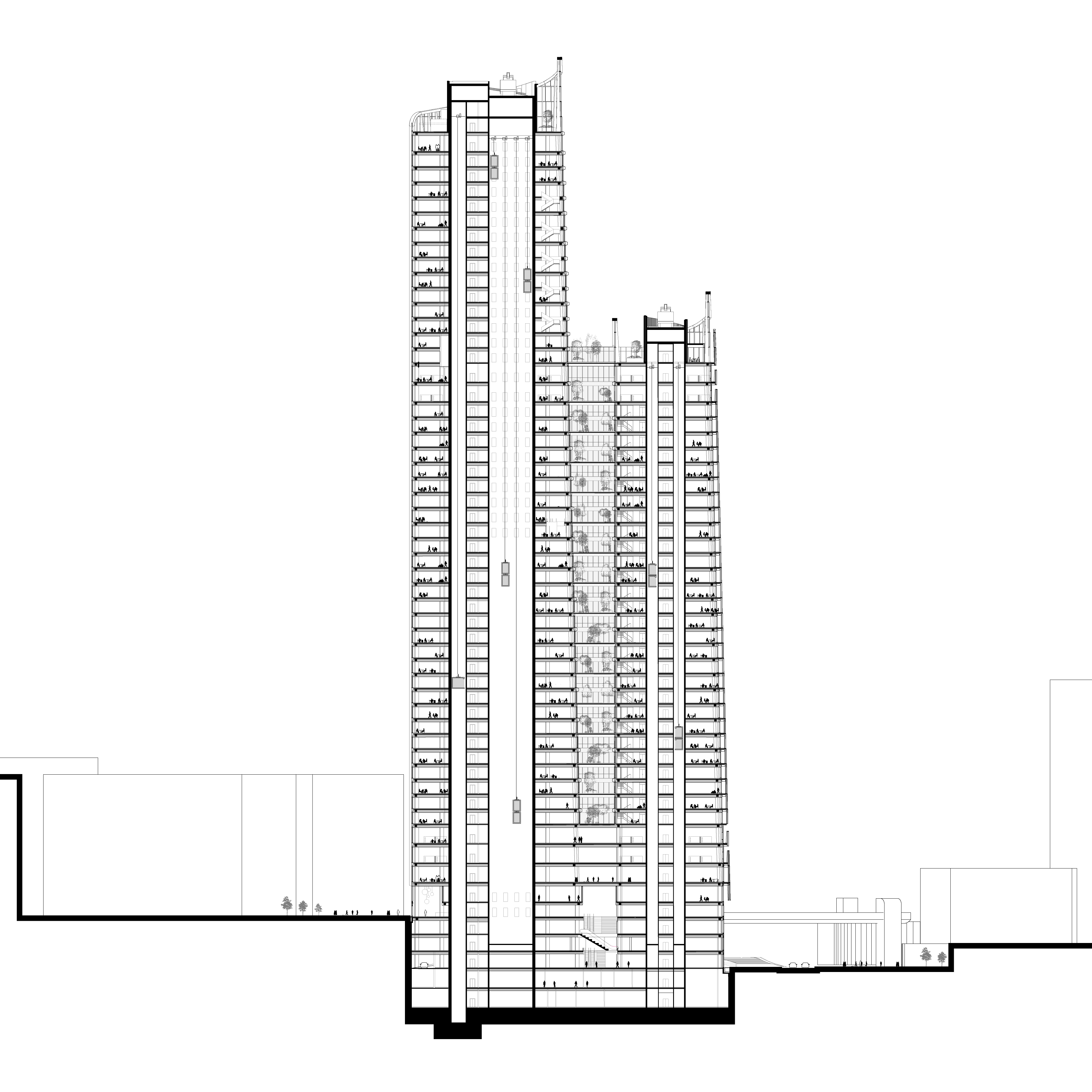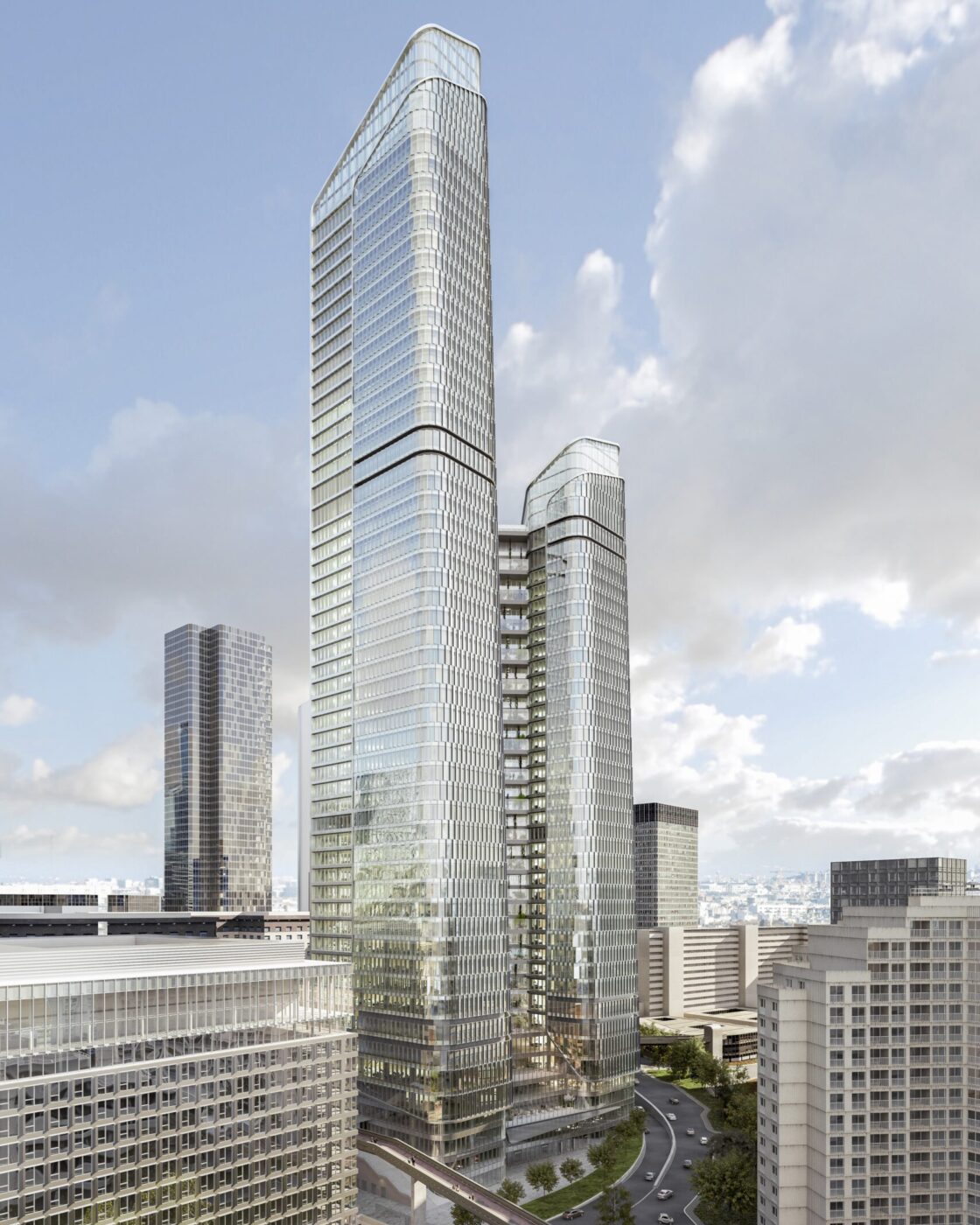 Tour de bureaux dédoublée en 2 ailes comprenant : 30 plateformes de vie (« links »), un rooftop à ciel ouvert, 10 cafés et restaurants, 3 auditoriums, un Business Center, un centre sportif, un centre médical