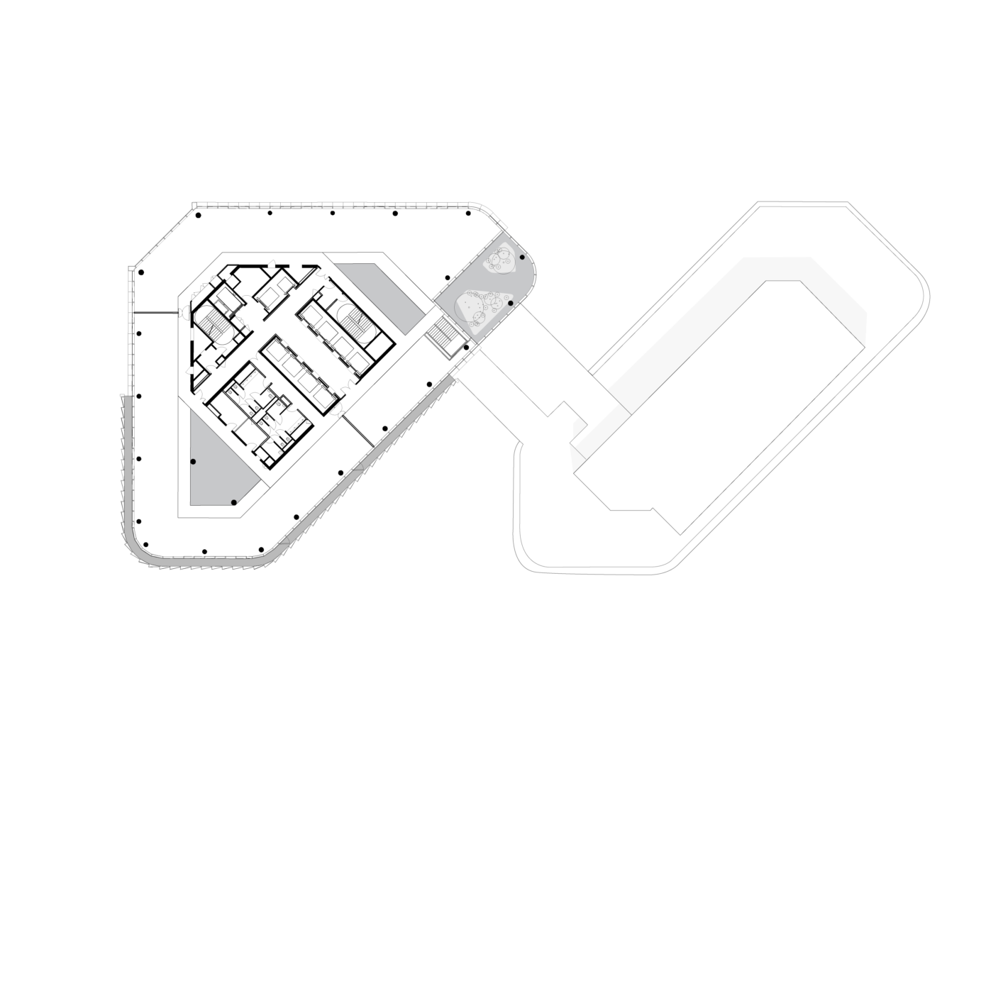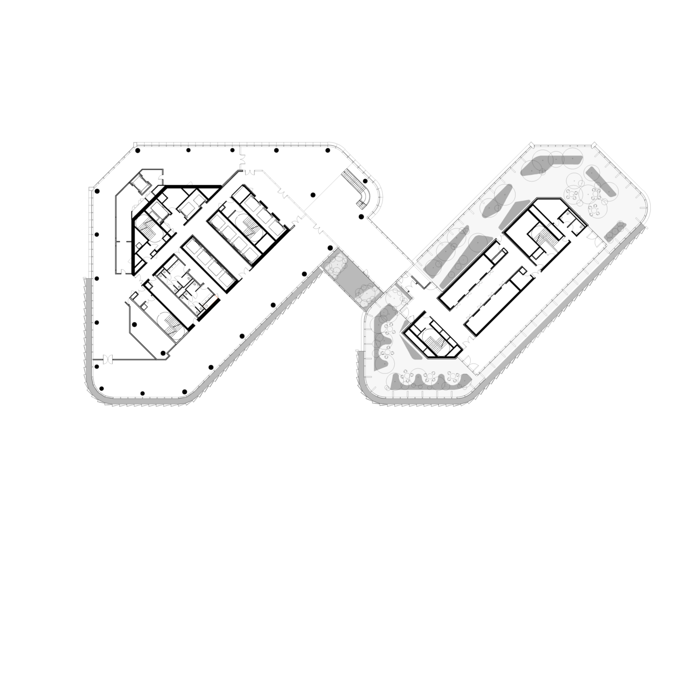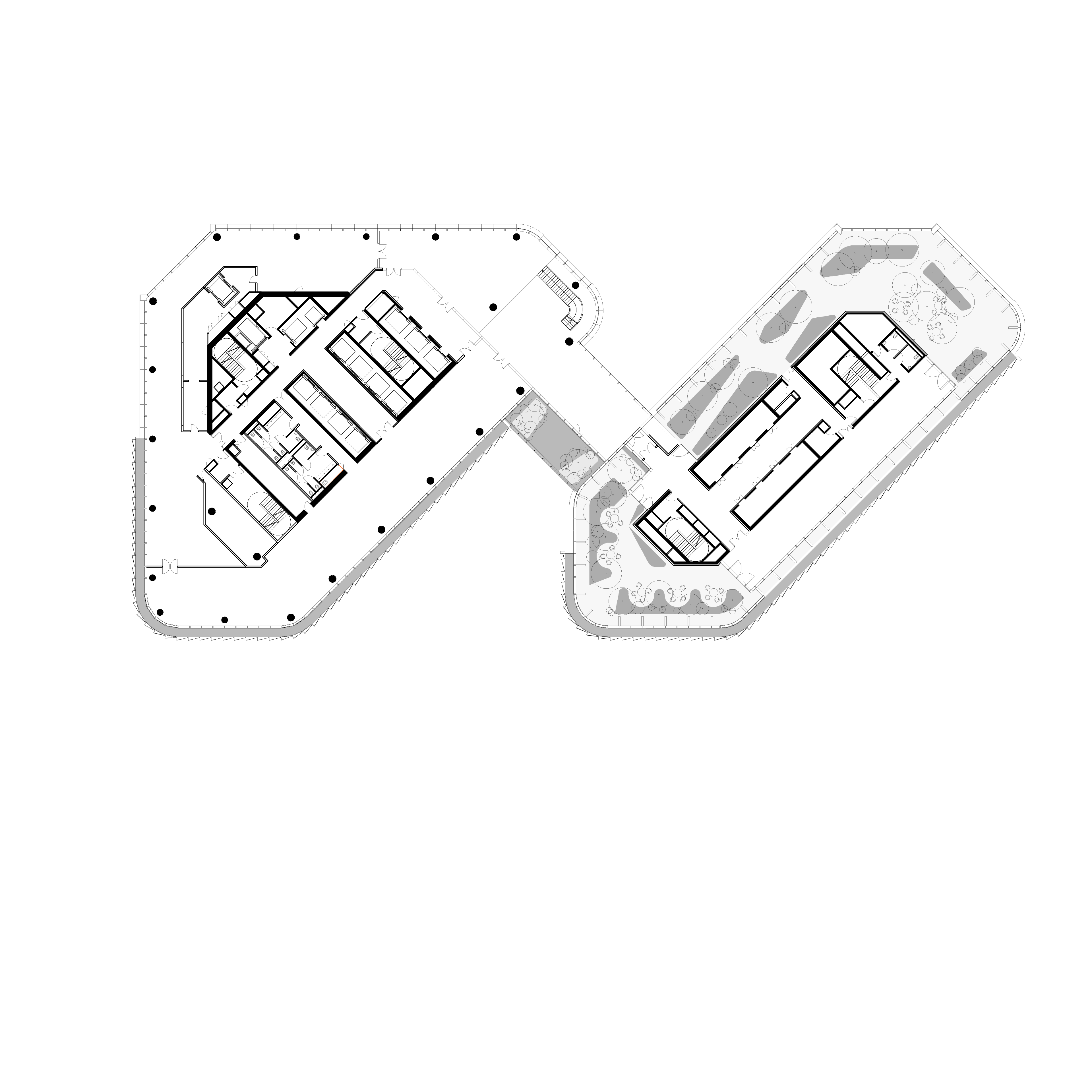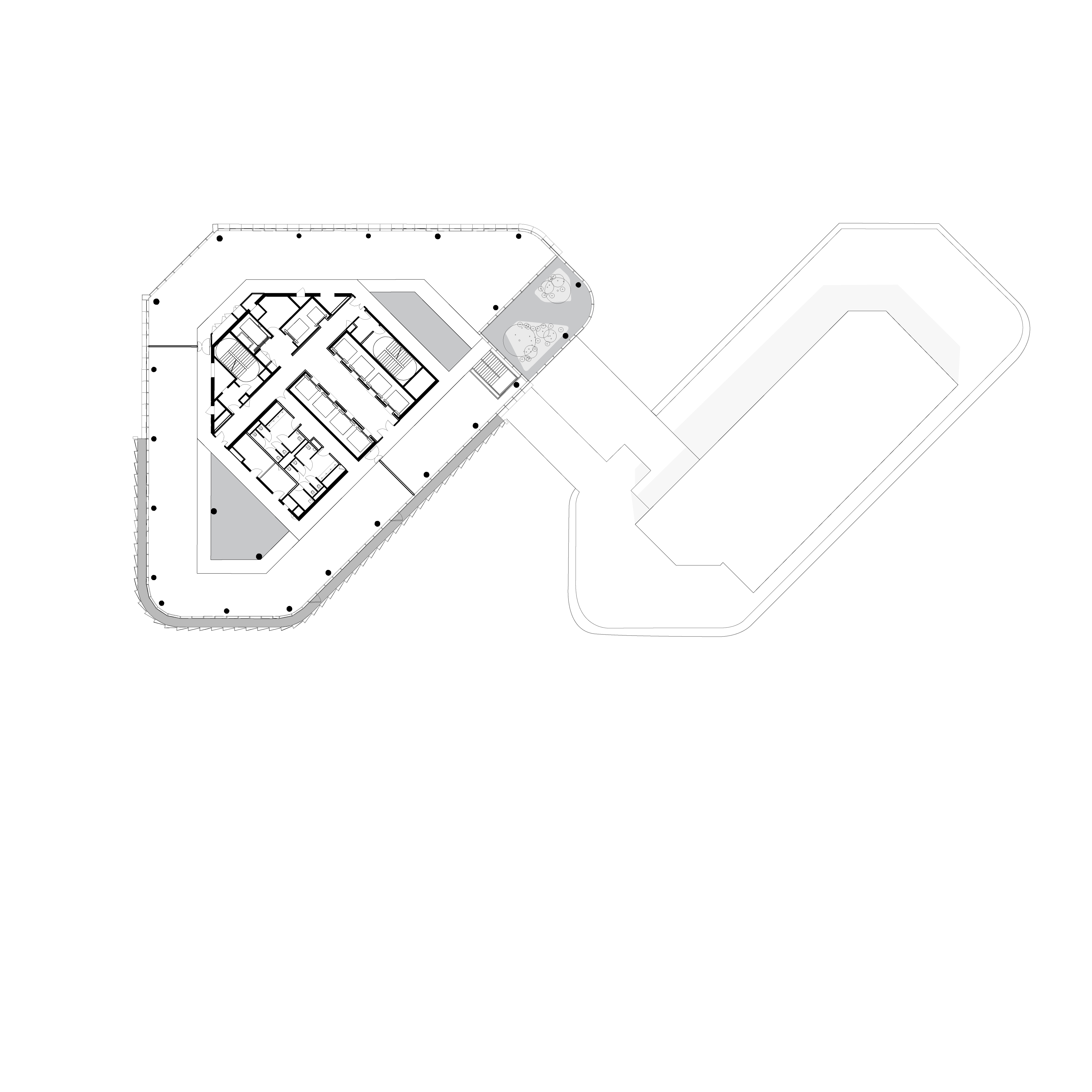 Les tours classiques sont condamnées par des limites intrinsèques, désormais rédhibitoires : verticalité, cloisonnement, minéralité, absence d’accès extérieur. PCA-STEAM a pris le parti de repenser les fondamentaux de la tour traditionnelle en inventant une nouvelle horizontalité répondant à un changement de paradigme dans l’organisation du travail. L’agence a imaginé une morphologie de tour innovante qui tire parti de la taille de la parcelle : la tour est dédoublée en deux ailes, reliées par trente liaisons, les « links ». Larges de plus de 8 m et dotés de jardins offrant des vues spectaculaires, ils sont pensés comme des points de rencontre qui deviendront autant de « places du village ». En reliant les deux bâtiments, ces links créeront des plateaux de 3 000 m2, surface inédite pour une tour de La Défense.