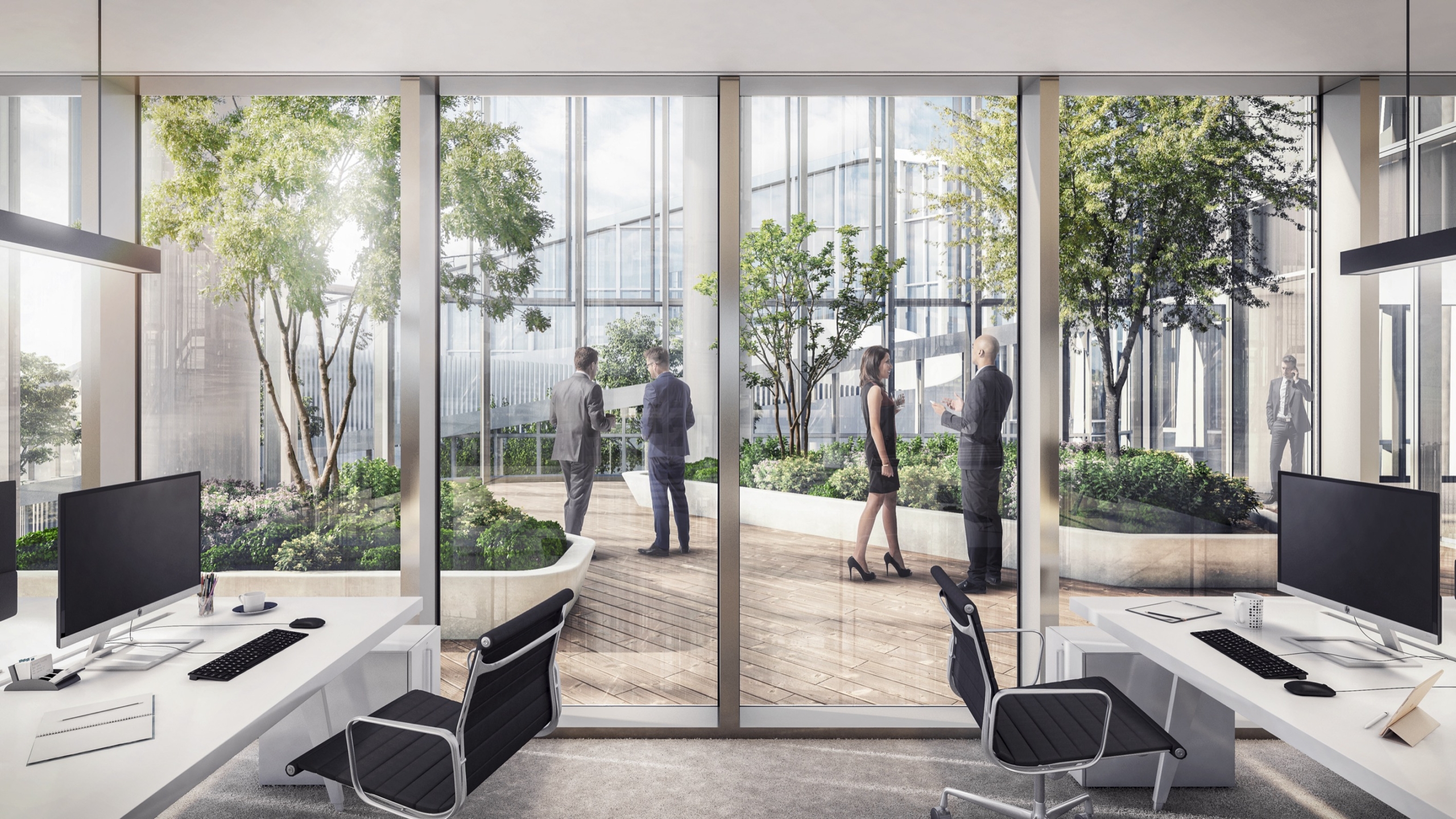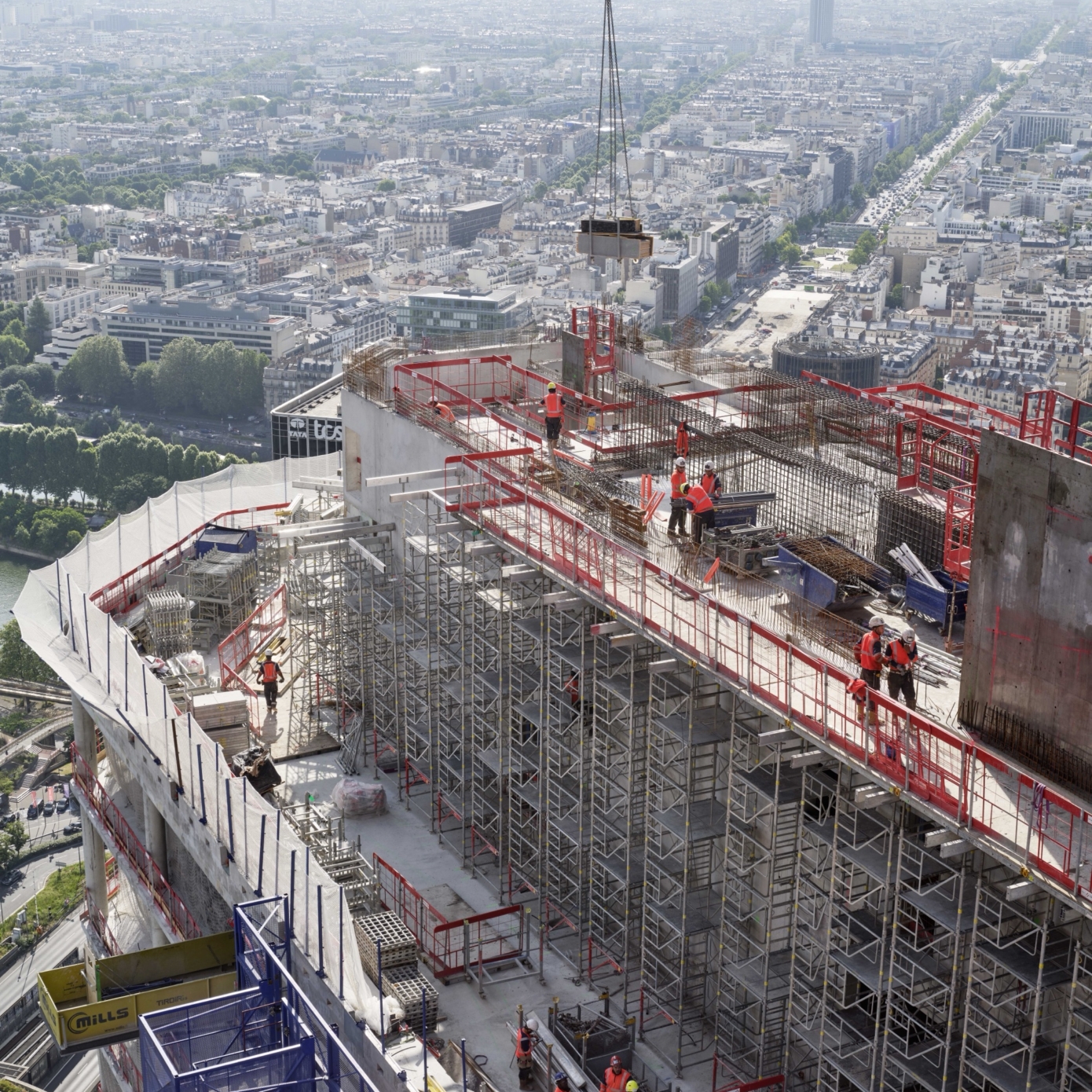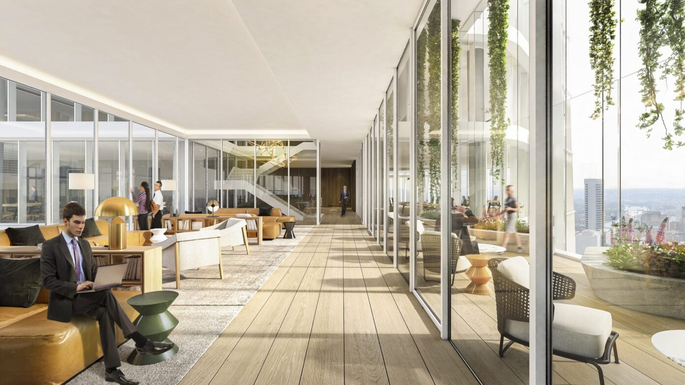 Tous les étages fonctionneront en duplex via de grands escaliers ouverts créant des unités de 6 000 m2 qui pourront accueillir 500 personnes, soit quatre fois plus qu’un étage de tour classique. Les déplacements au sein de chaque duplex se feront à pied, sans prendre l’ascenseur, de façon à multiplier les interactions et générer de la sérendipité. Les façades vitrées toute hauteur offrent une luminosité exceptionnelle sur tous les plateaux. Par ses caractéristiques de modularité et de flexibilité, The Link est capable de s’adapter aux différentes configurations souhaitées avec une simplicité inédite pour un projet de cette envergure : bureaux cloisonné, open space, espaces mixtes, flex office, salles de travail connectées, box, espaces d’isolement… The Link étant doté de 2 800 m2 d’espaces extérieurs, aucun salarié ne sera à plus de trente secondes d’un accès à l’air libre. Le jardin paysager en rooftop, à 154 m du sol, créera lui un nouveau belvédère spectaculaire sur Paris et l’axe historique.